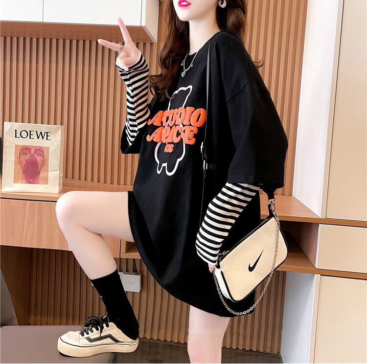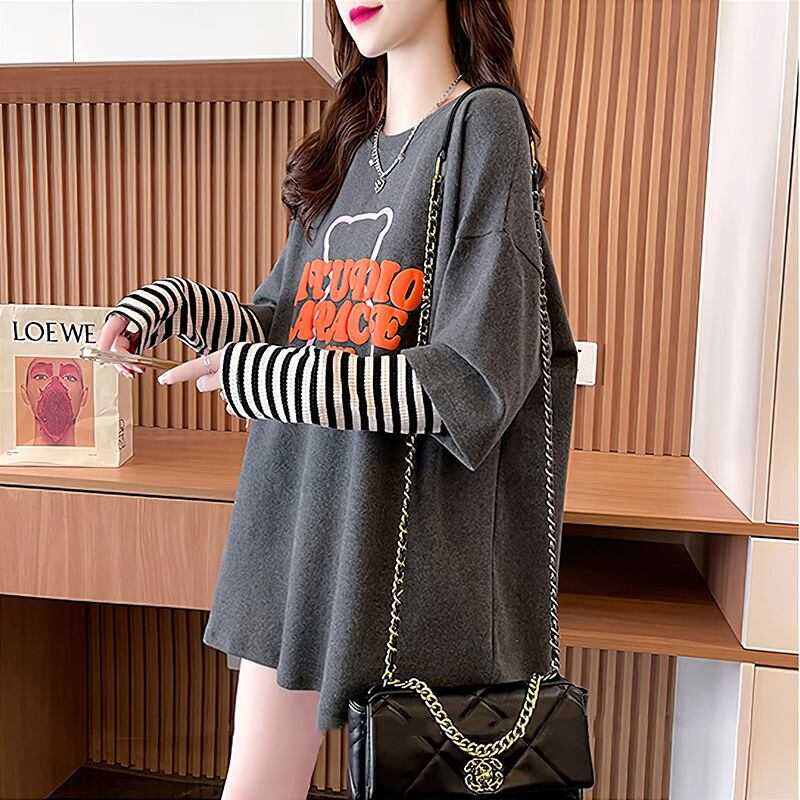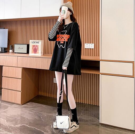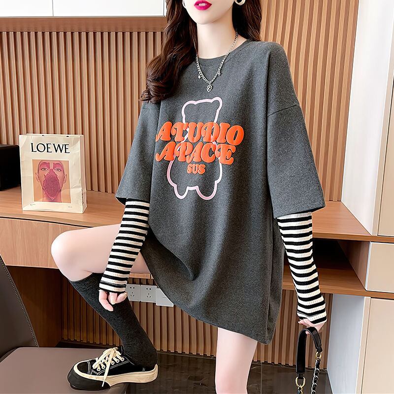 絶対流行 カジュアル アバンギャルド レイヤード風 プリント全3色 TシャツE-9587