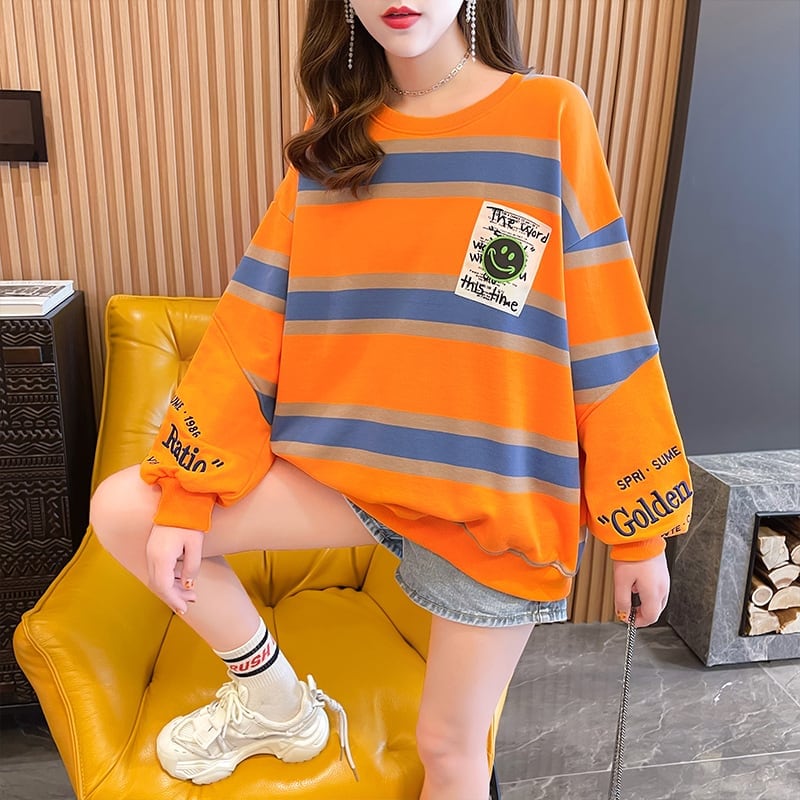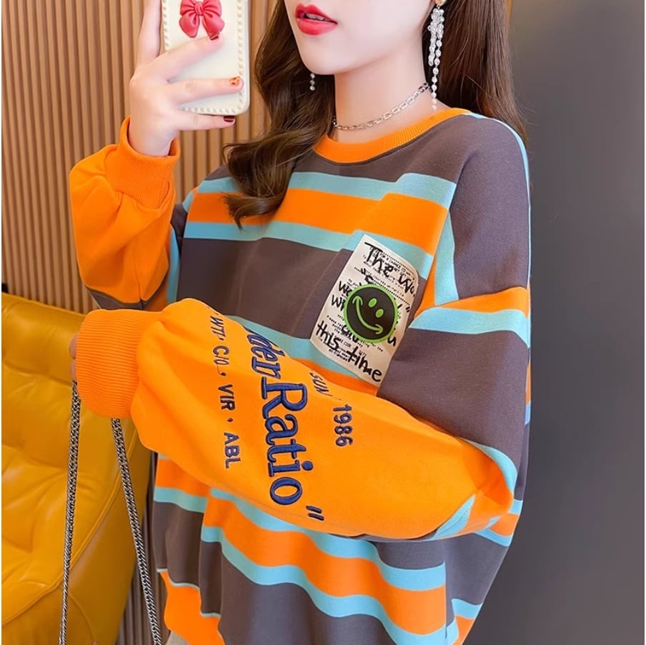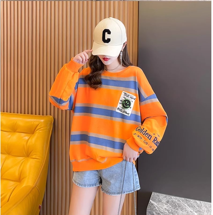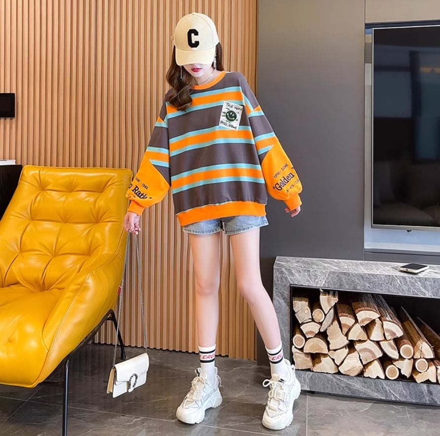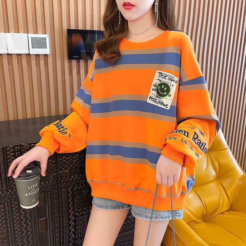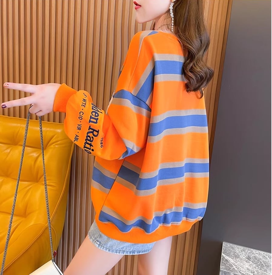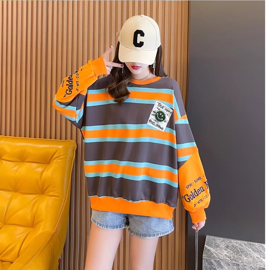 絶対流行 カジュアル ストライプ柄 ルーズ スウェット<ins-8092>