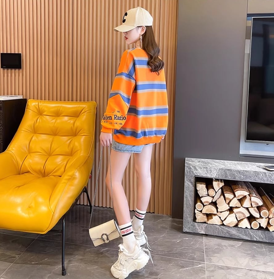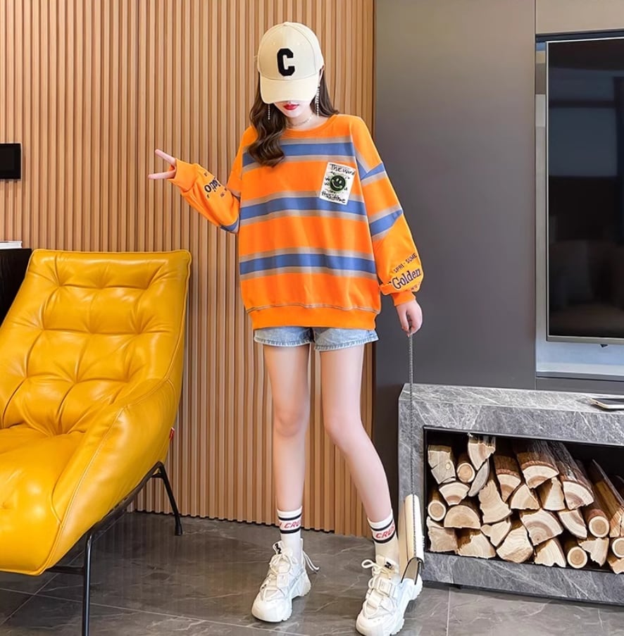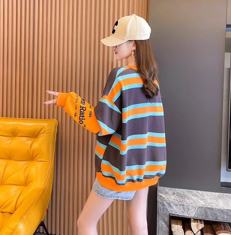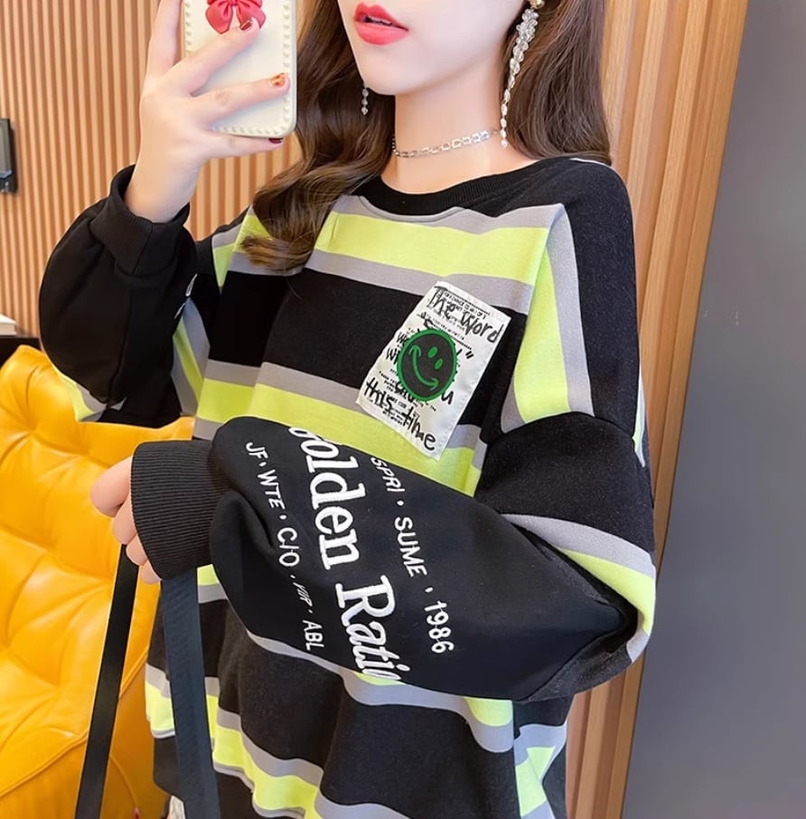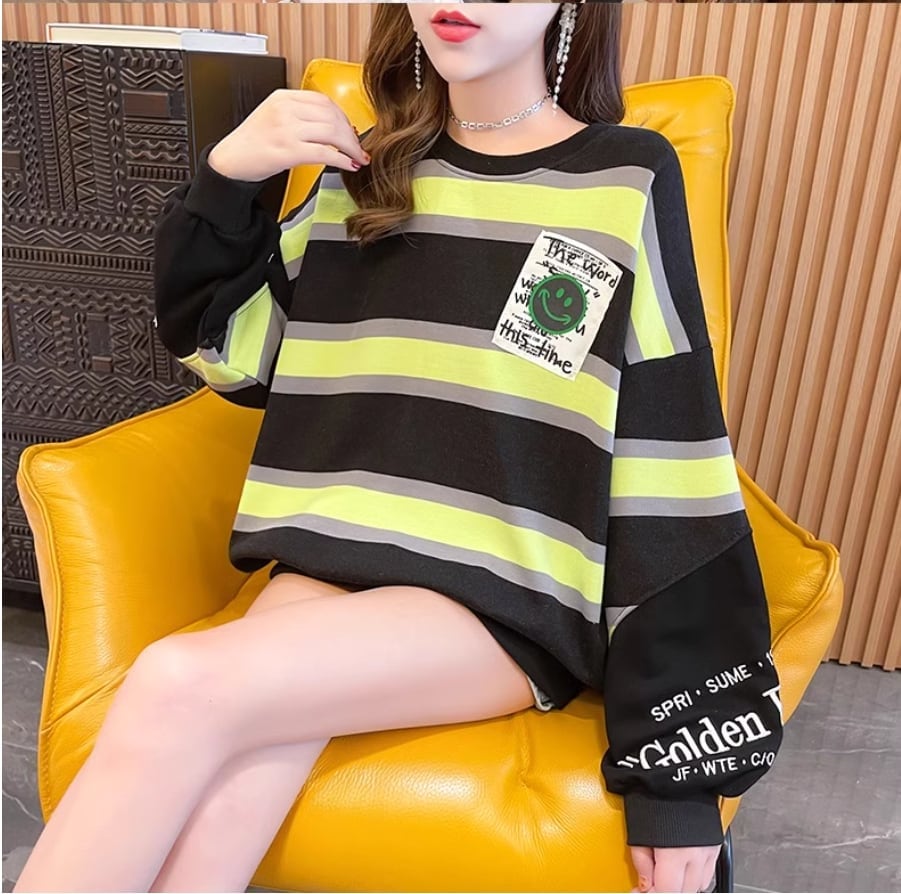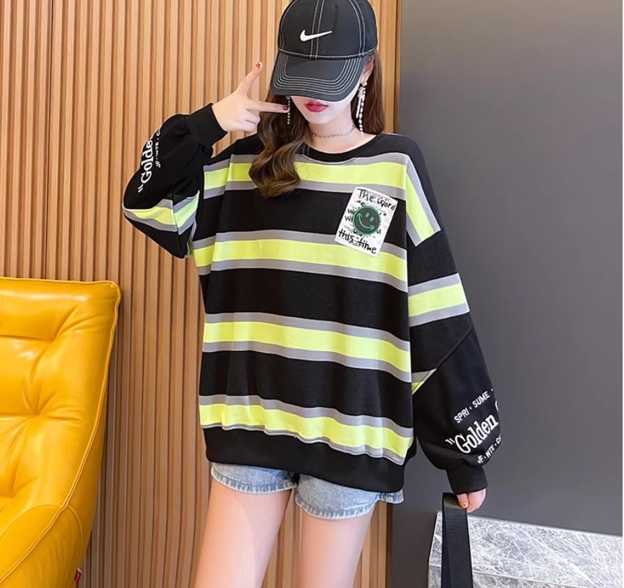絶対流行 カジュアル ストライプ柄 ルーズ スウェット<ins-8092>