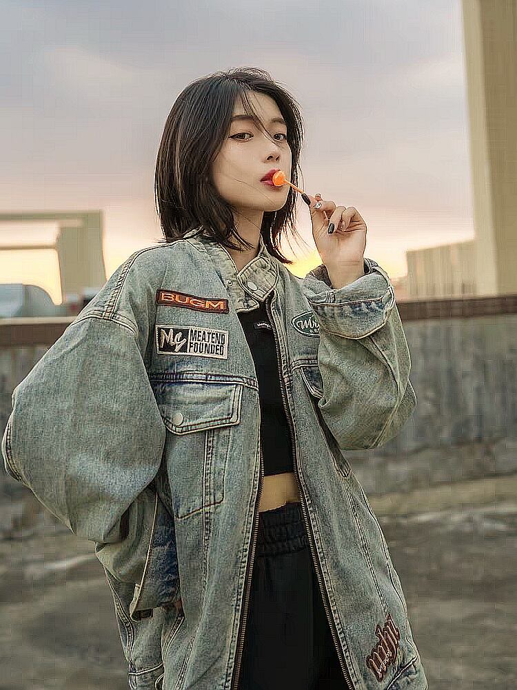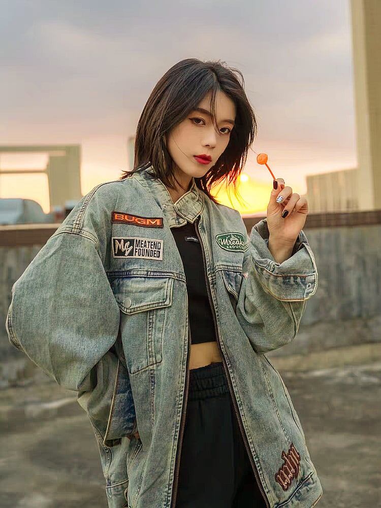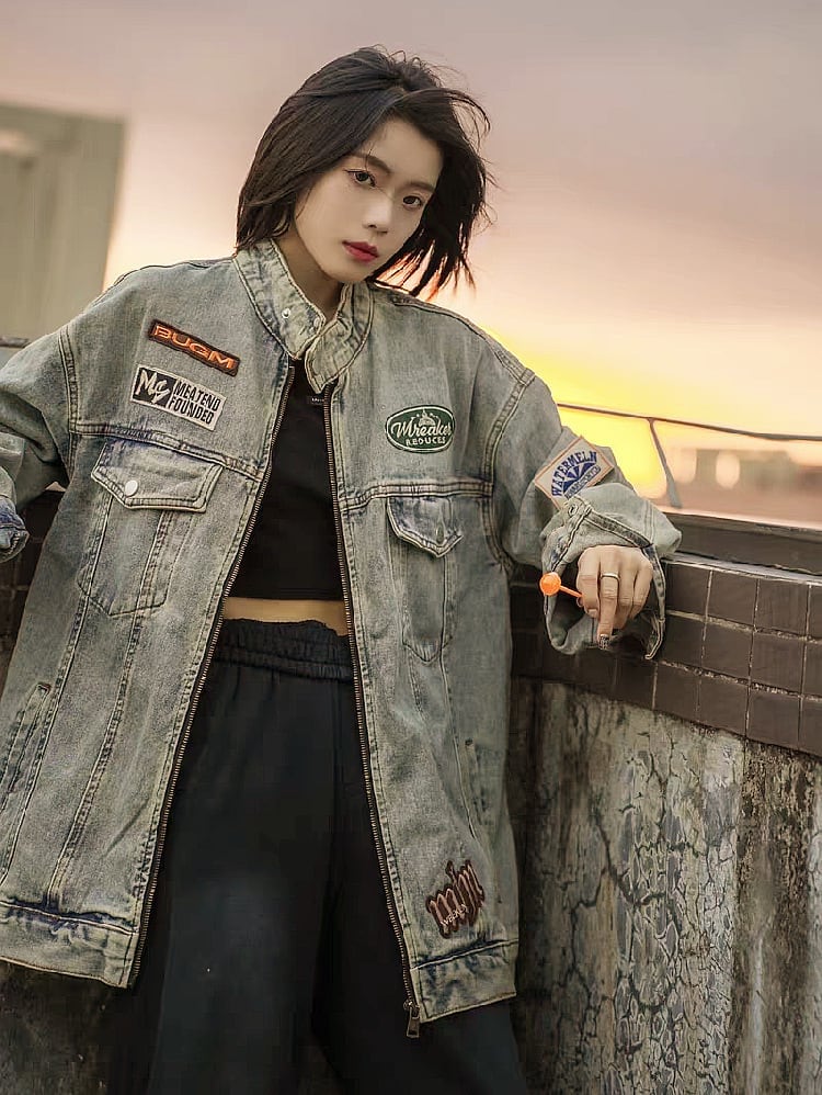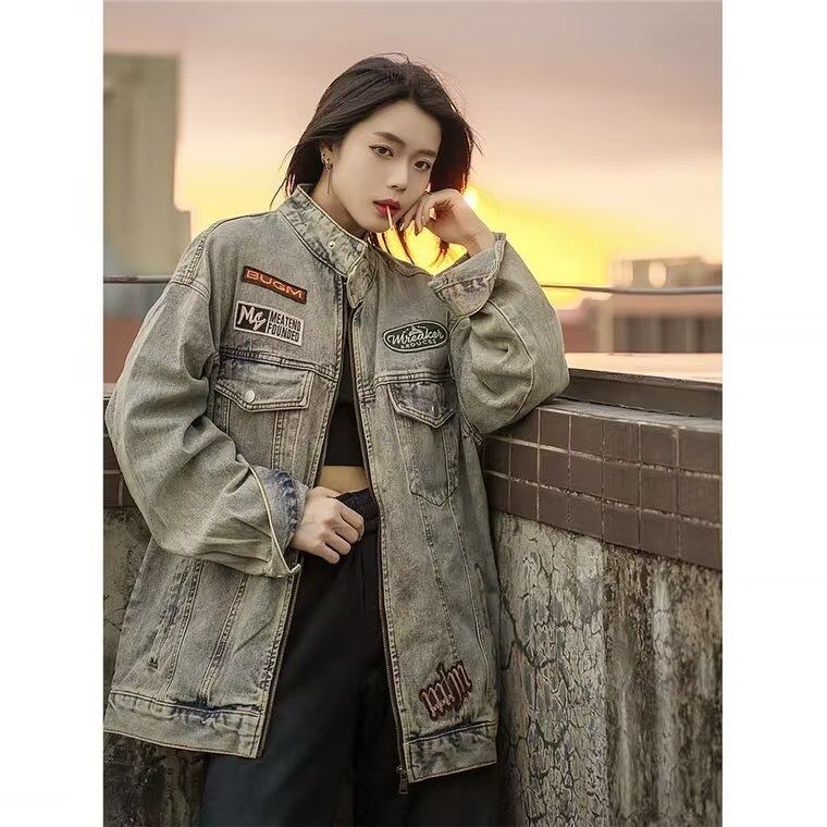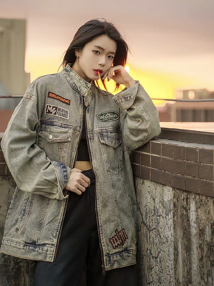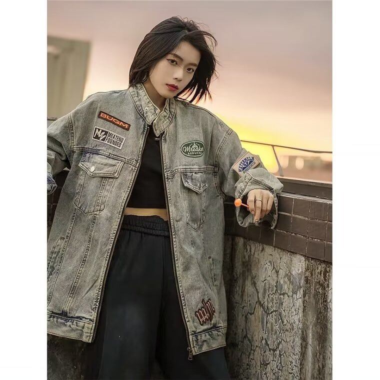 絶対流行 スタンドネック 高見えデザイン 男女兼用 デニム ジャケット ゆったり コートE-9312