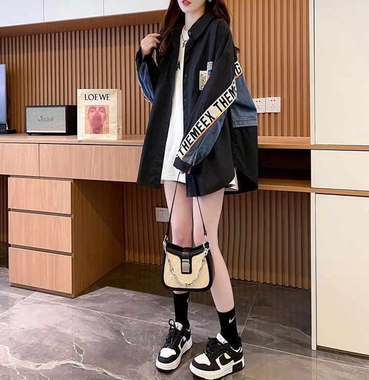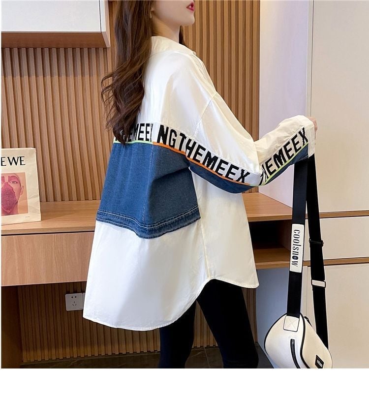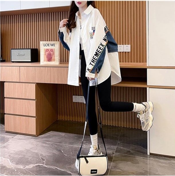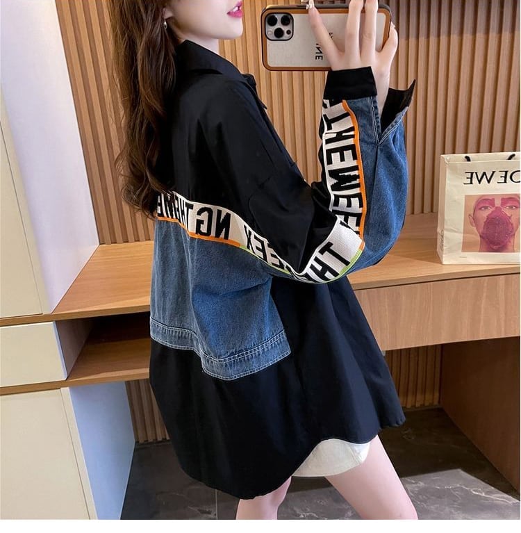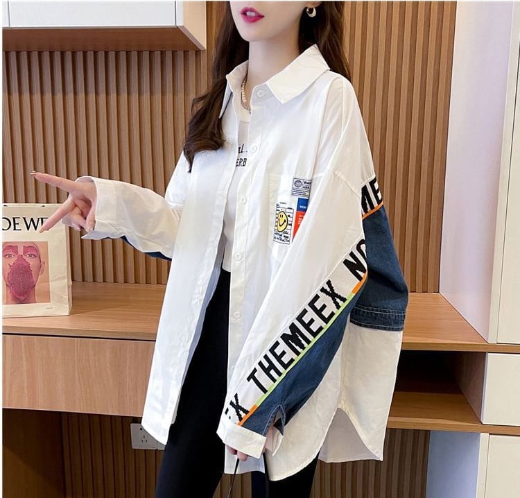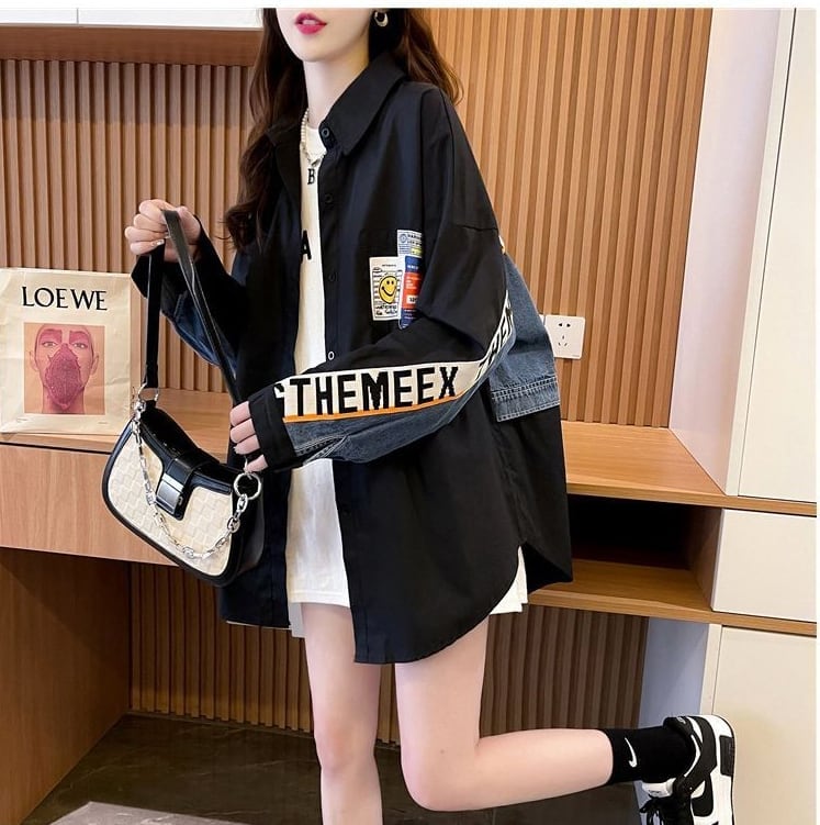 絶対流行 ファッション オシャレ度満点 切り替え シャツ <ins-8075>