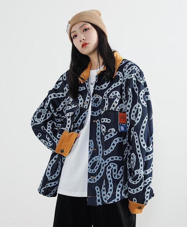 絶対流行 絶対欲しい デザイン性抜群 切り替え デニム ジャケットゆったりコートE-9945