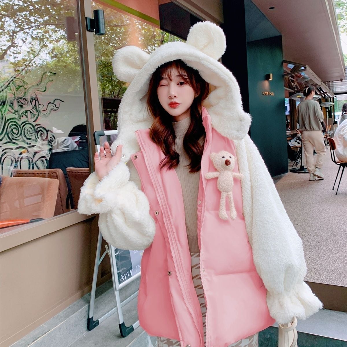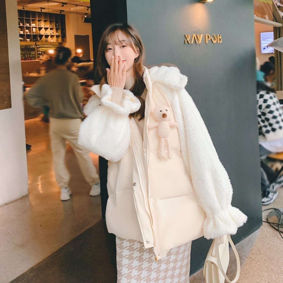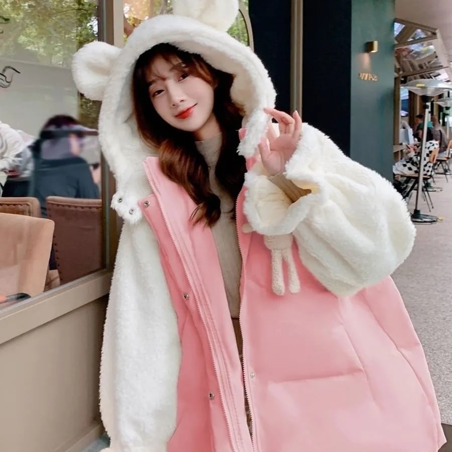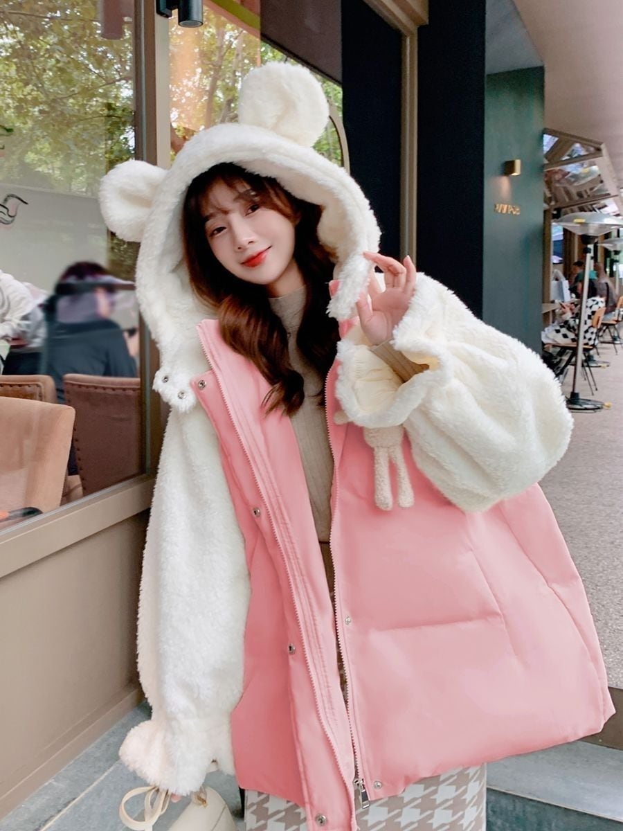 美人度アップもこもこボア厚手 3色 アニマルパーカー もこもこパーカーコートE-12384