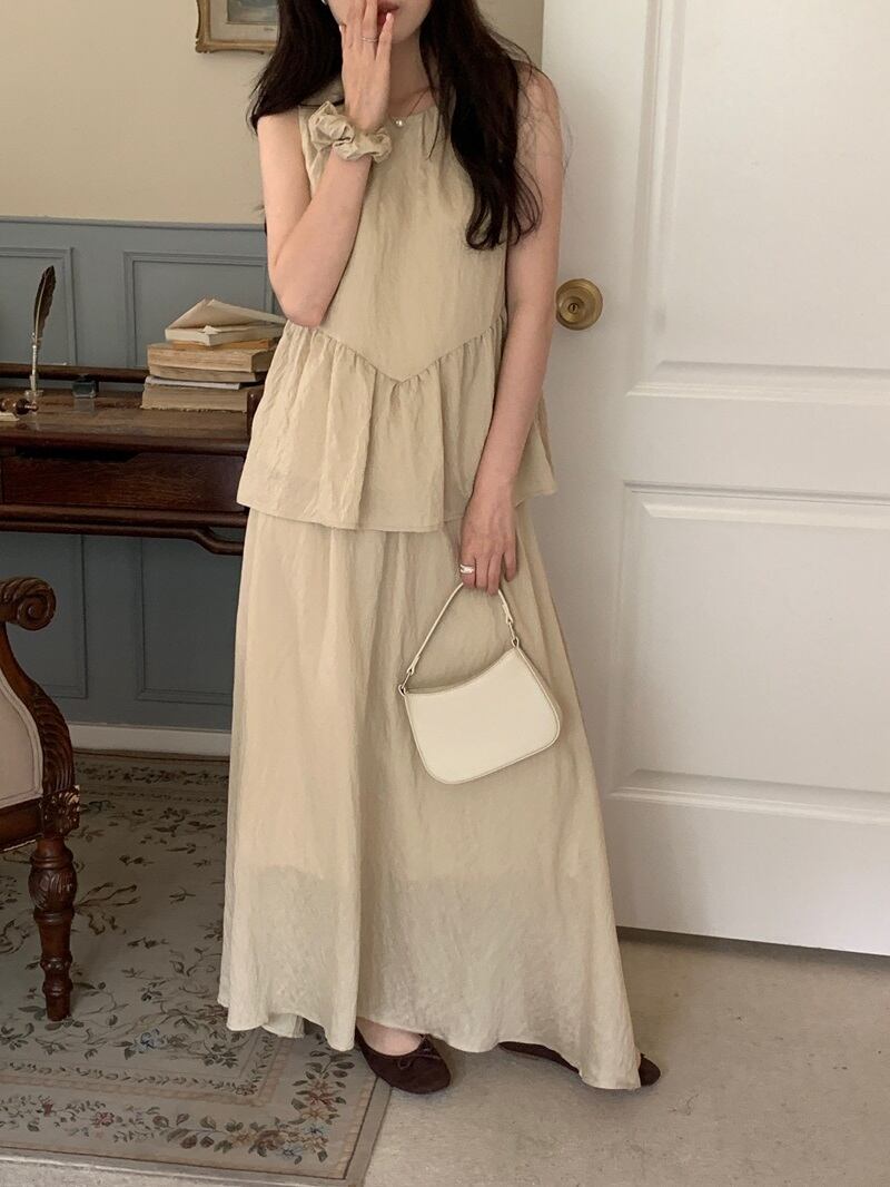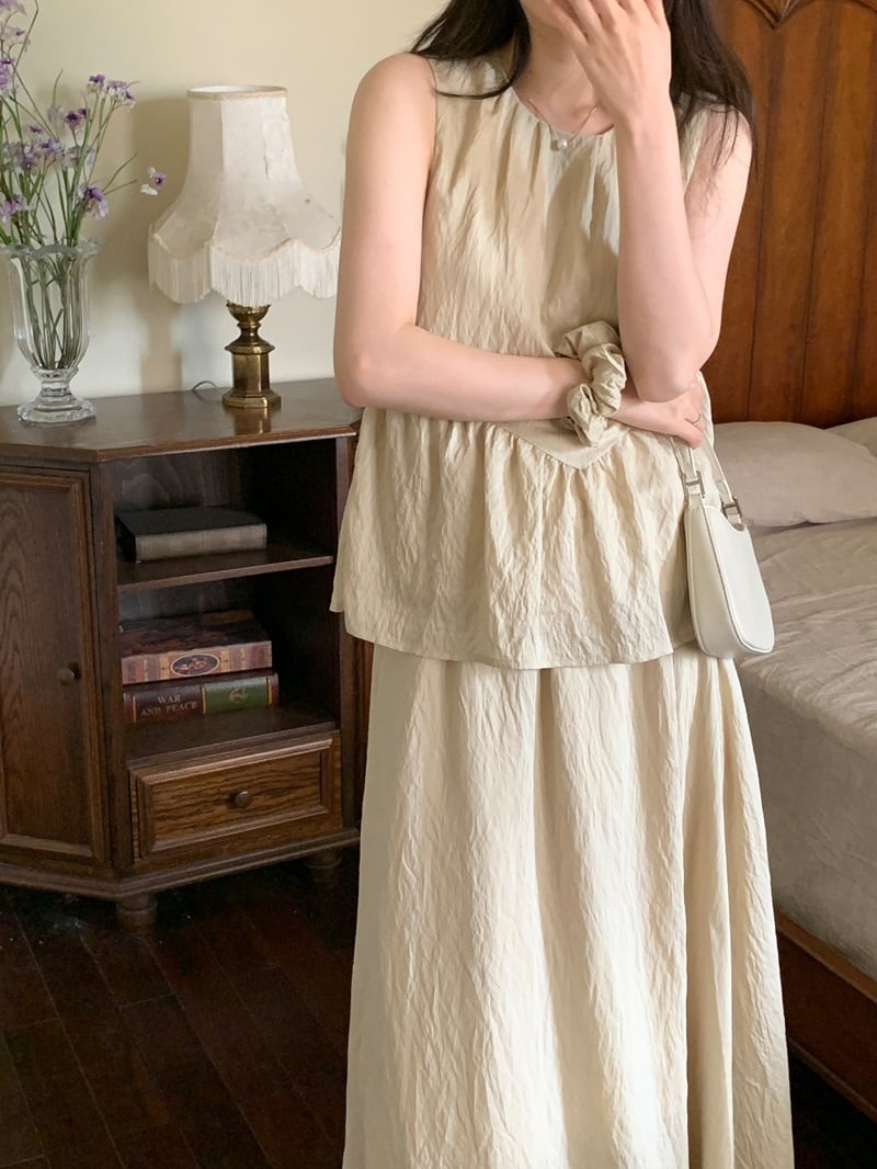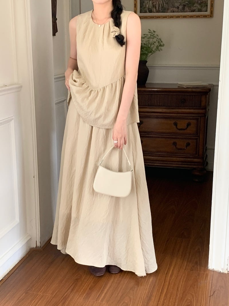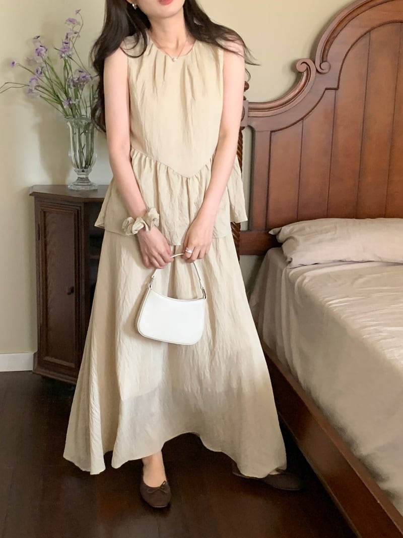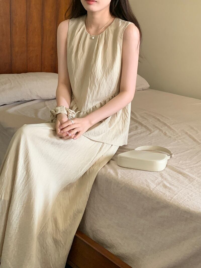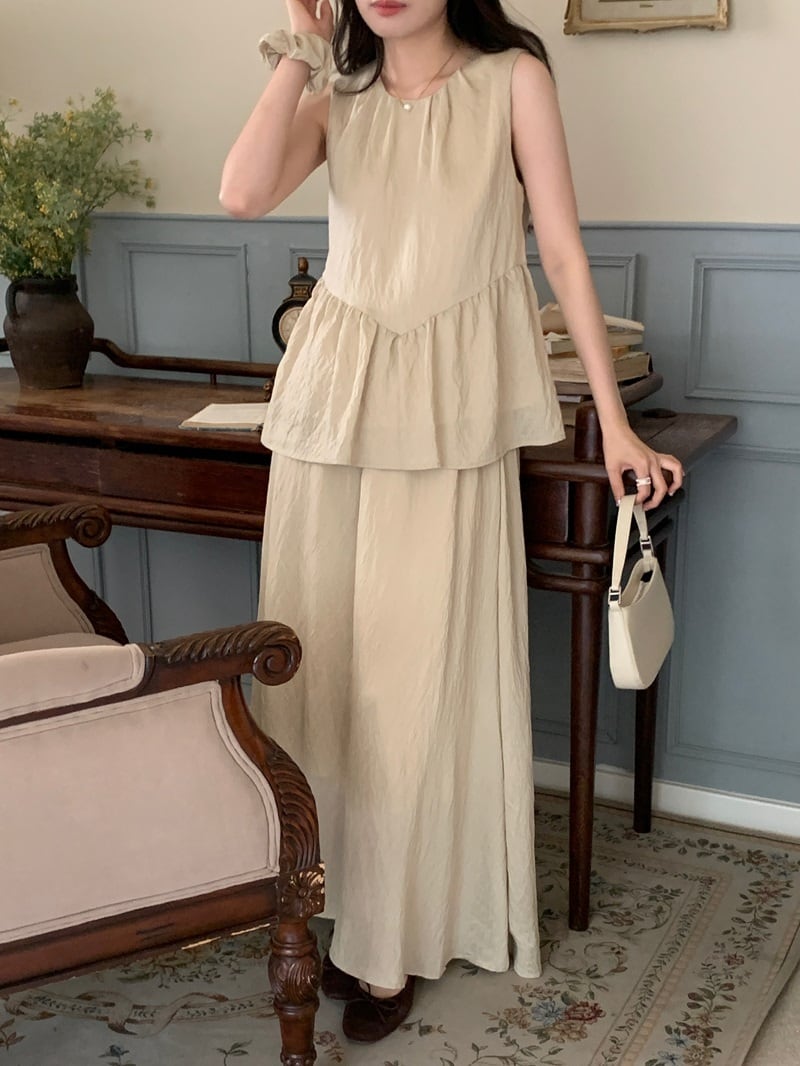 美人度アップ シンプル 知的 ノースリーブトップスⅹロングスカートセット<ins-8227>