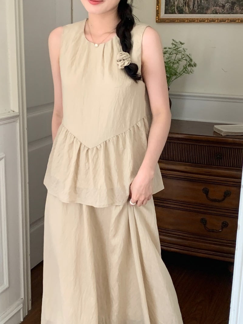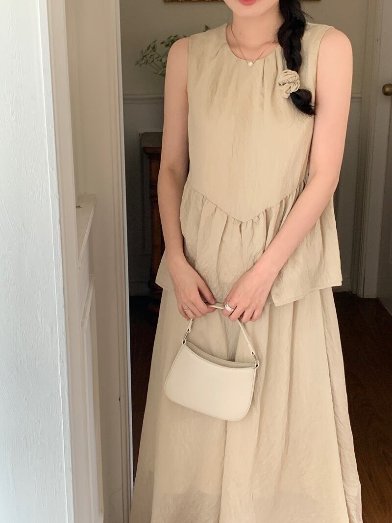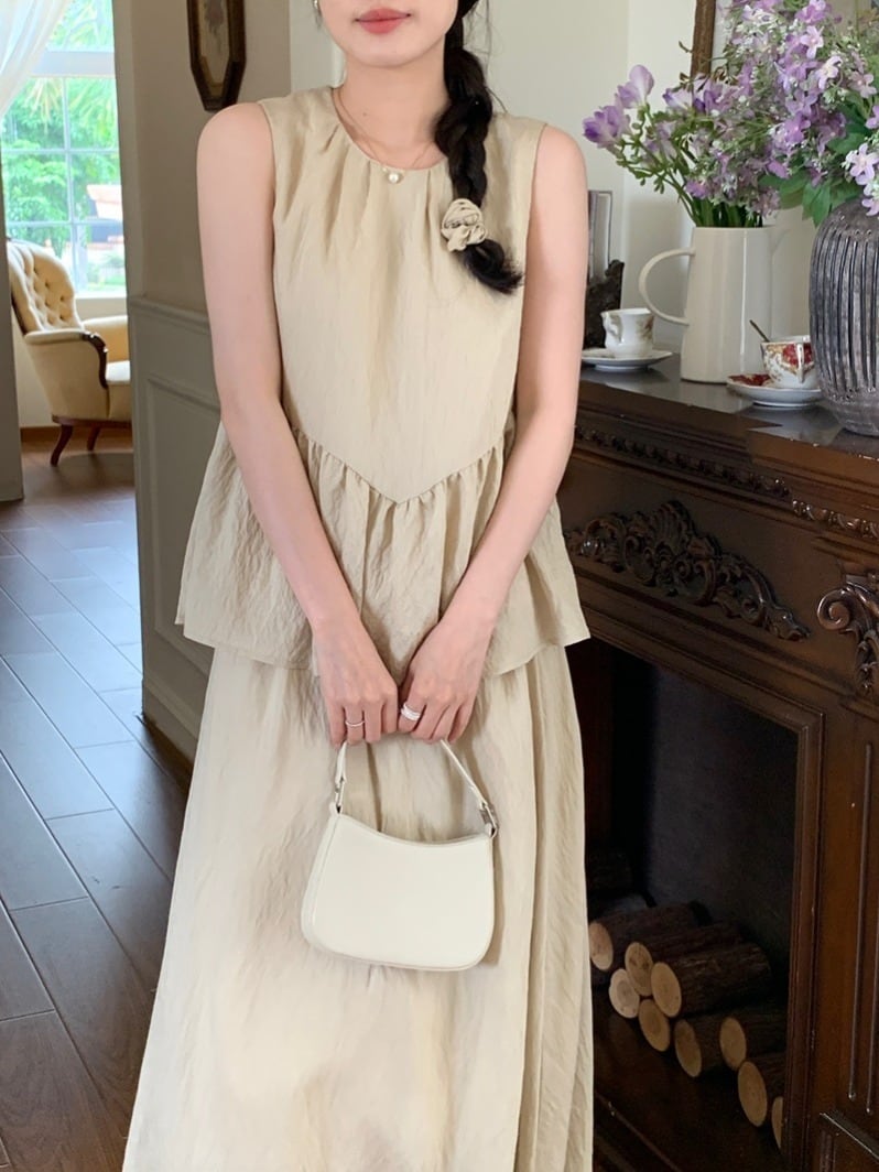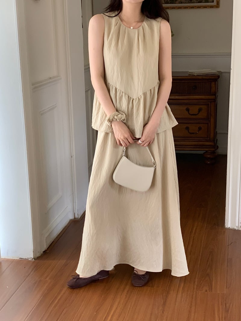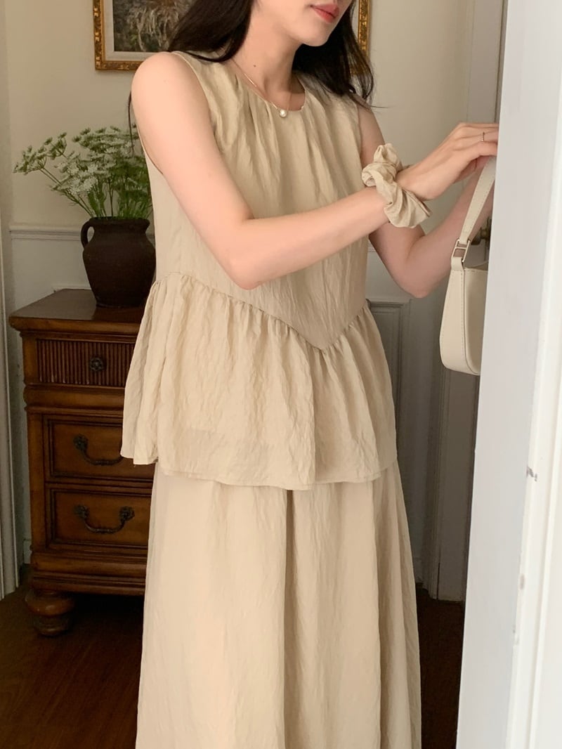 美人度アップ シンプル 知的 ノースリーブトップスⅹロングスカートセット<ins-8227>