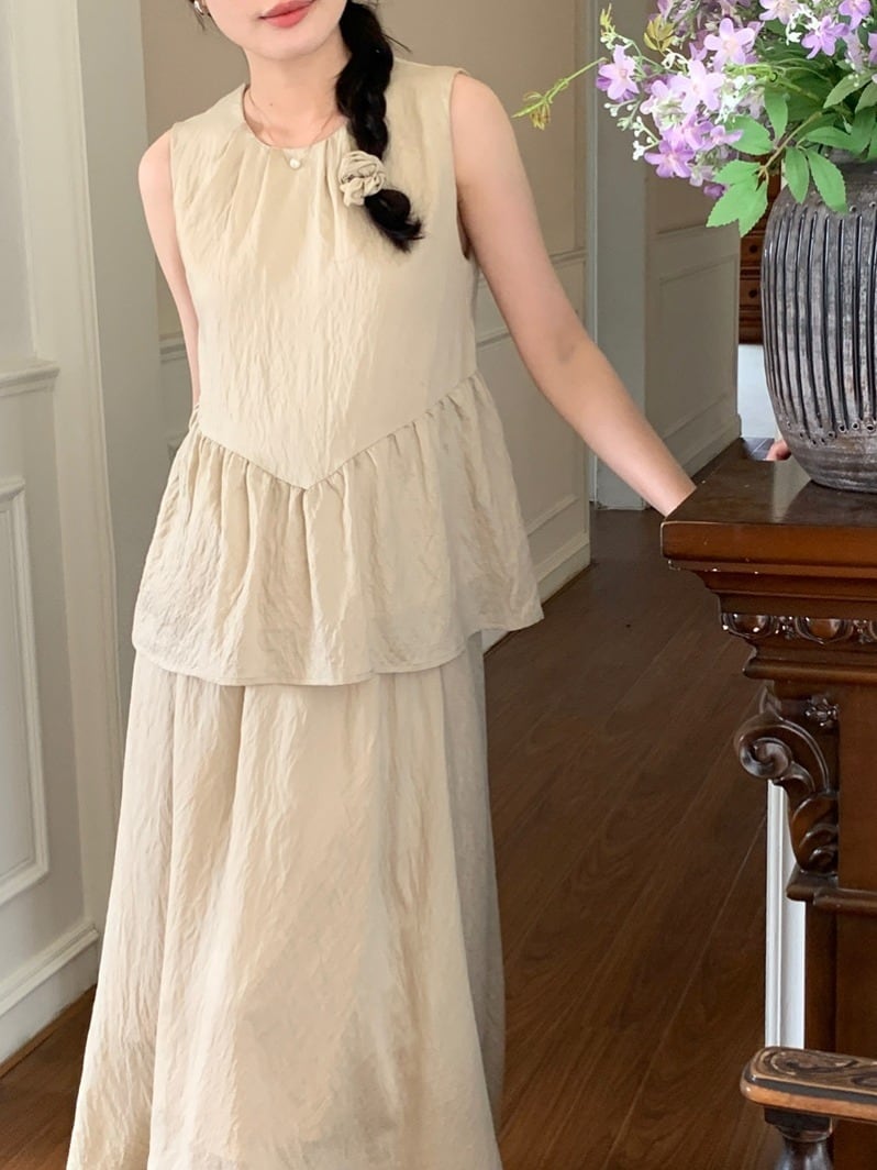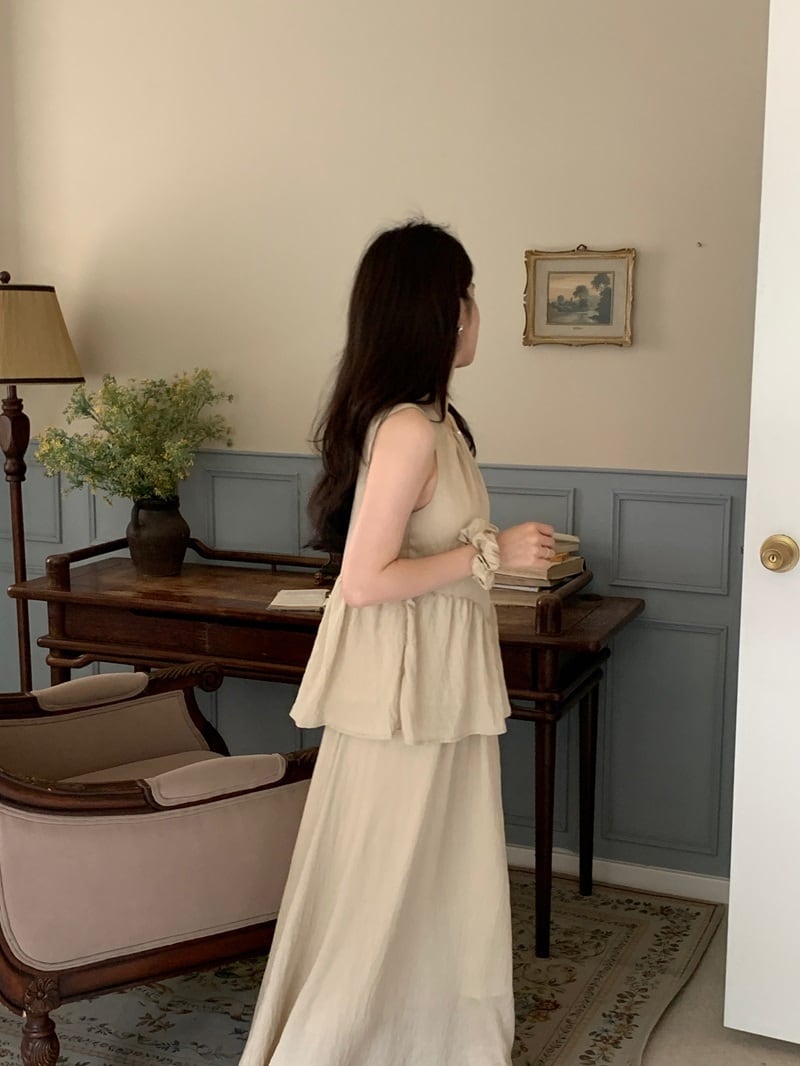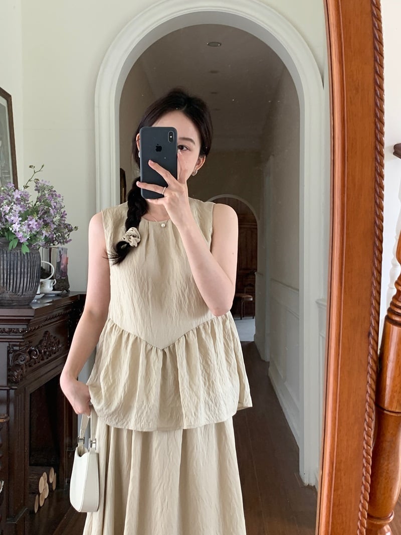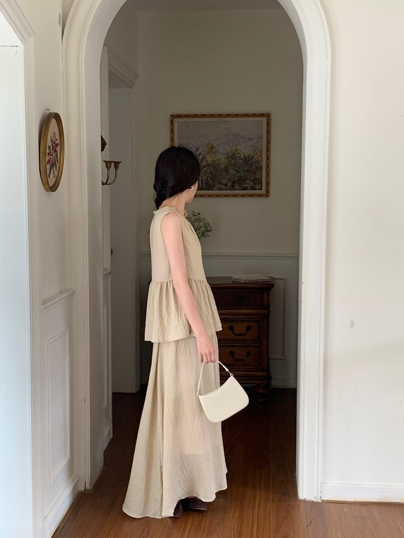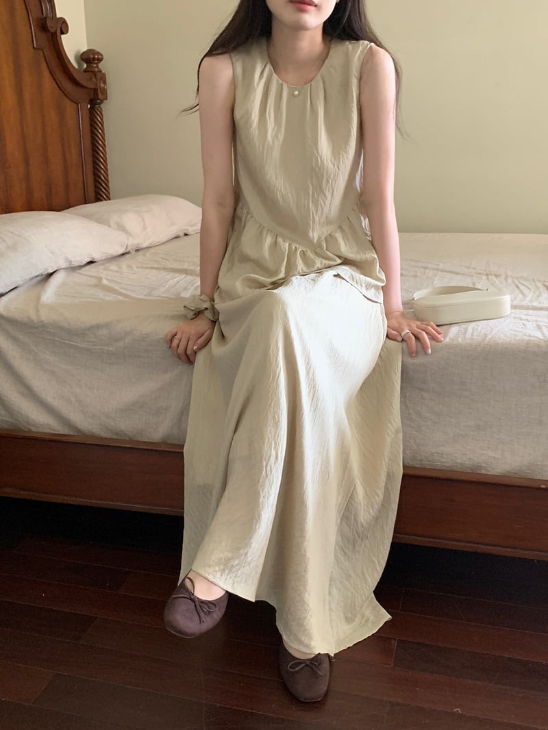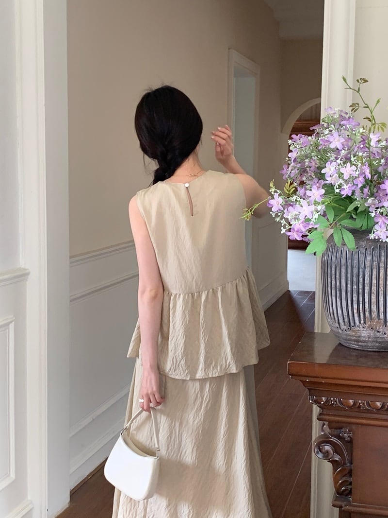 美人度アップ シンプル 知的 ノースリーブトップスⅹロングスカートセット<ins-8227>