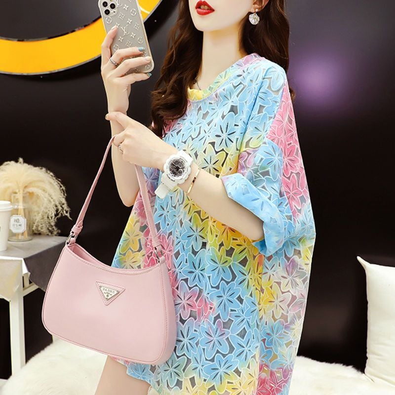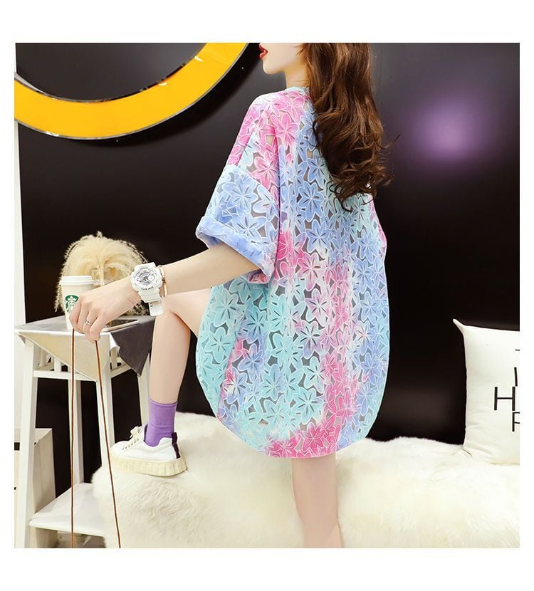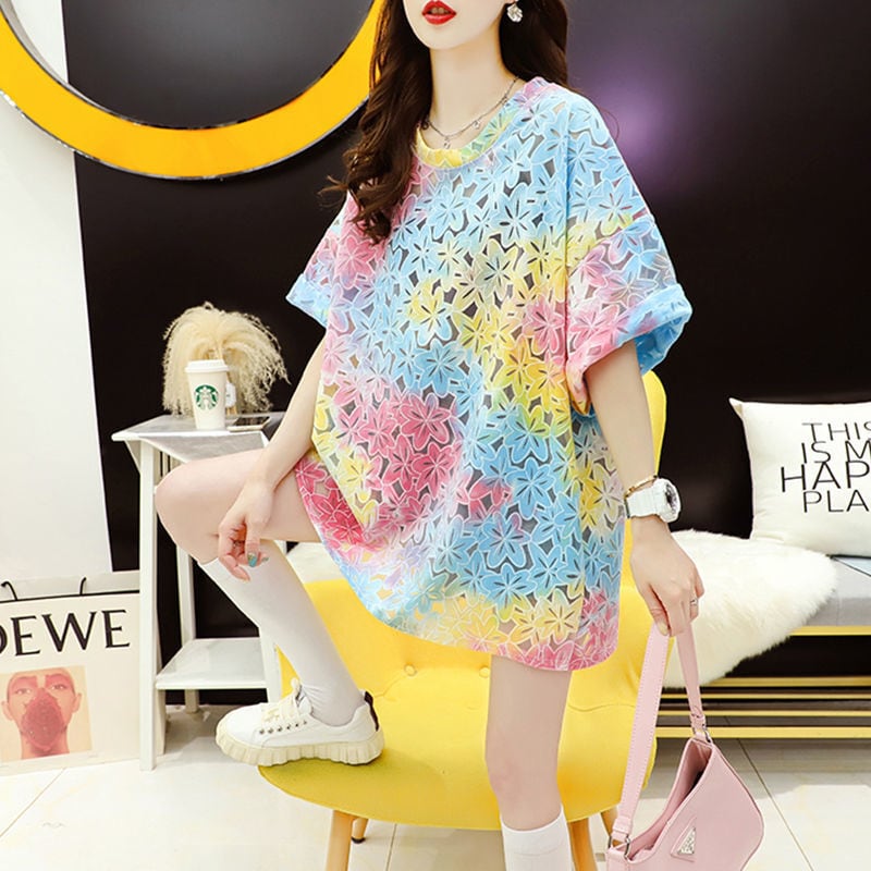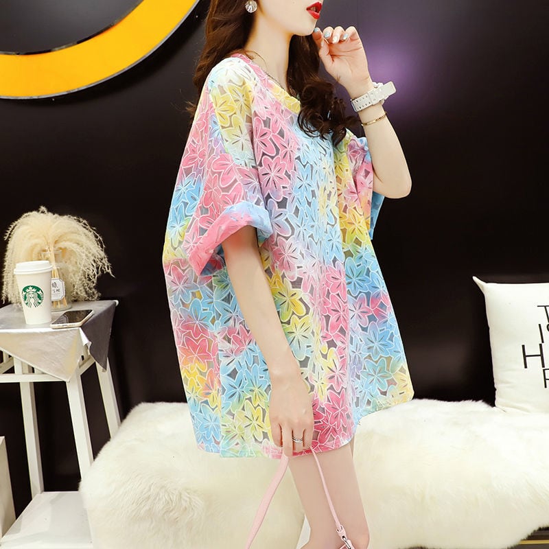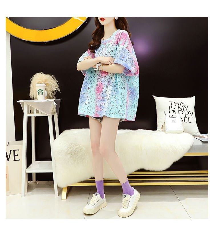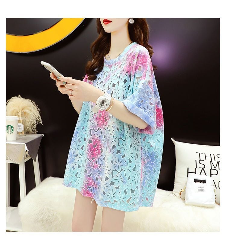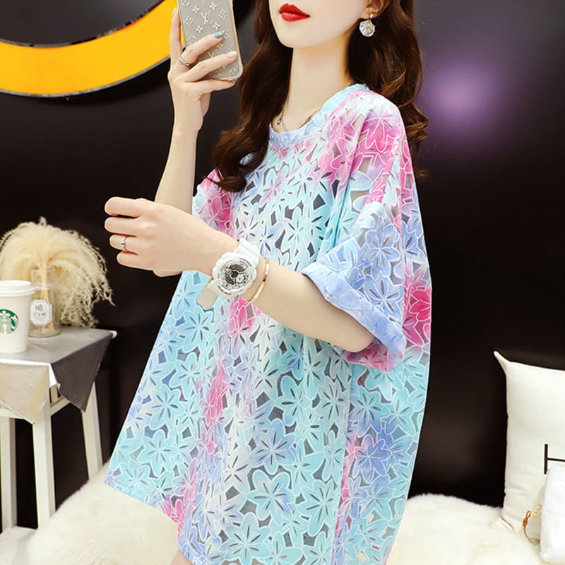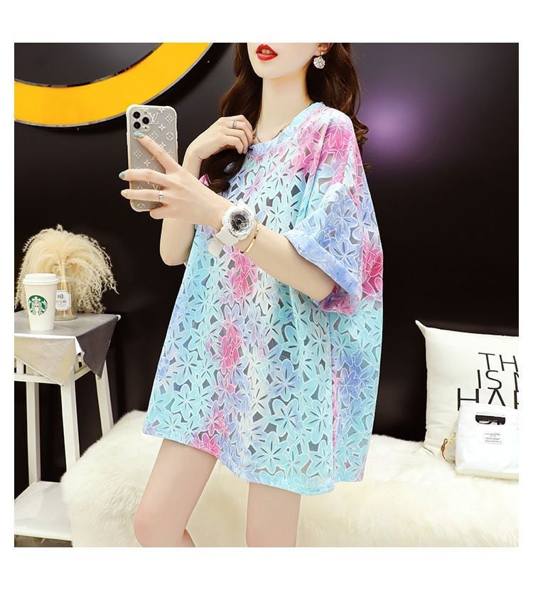 美人度アップ スウィート ゆったり 透かし彫り 半袖Tシャツ<ins-8140>