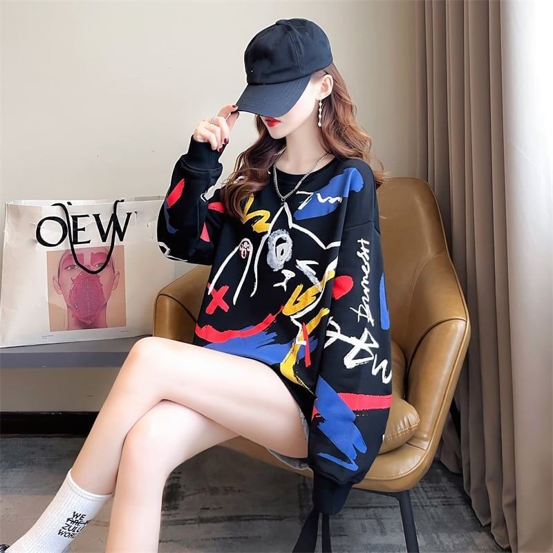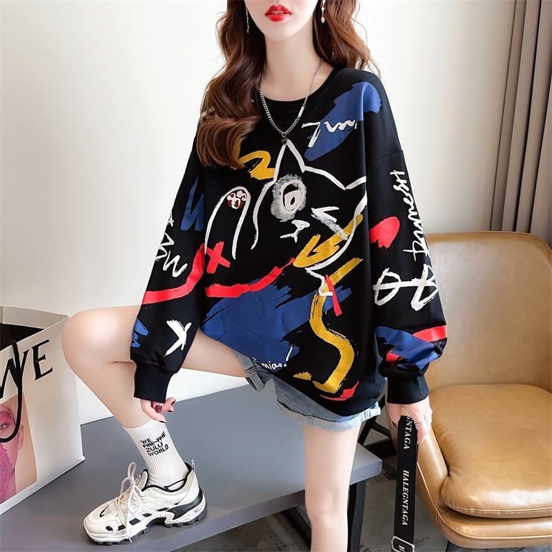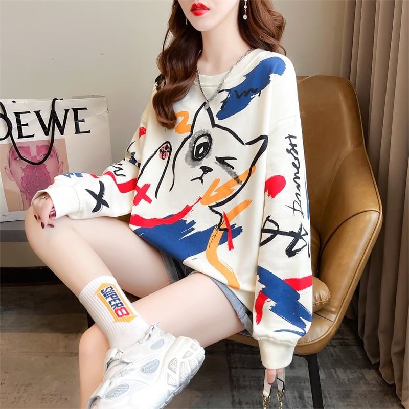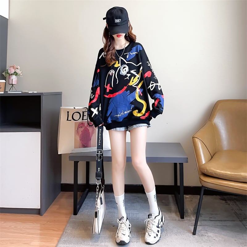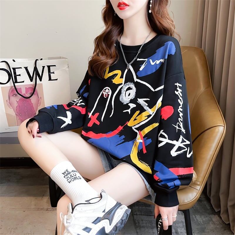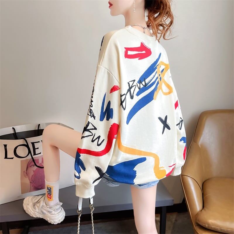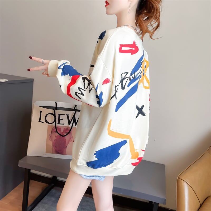 美人度アップ プリント ファッション スウェット パーカーE-3694