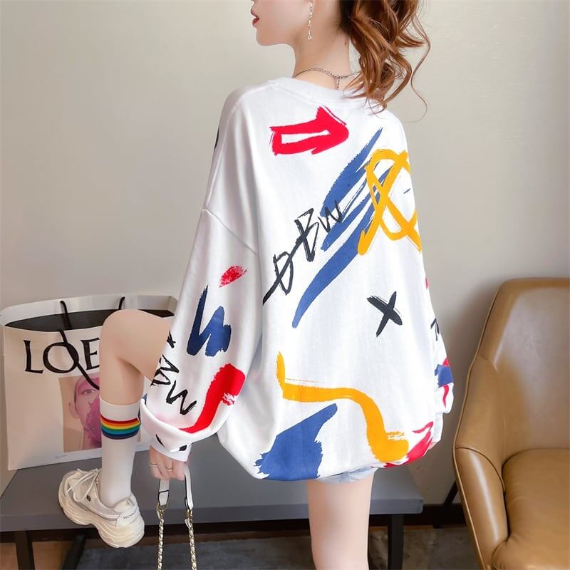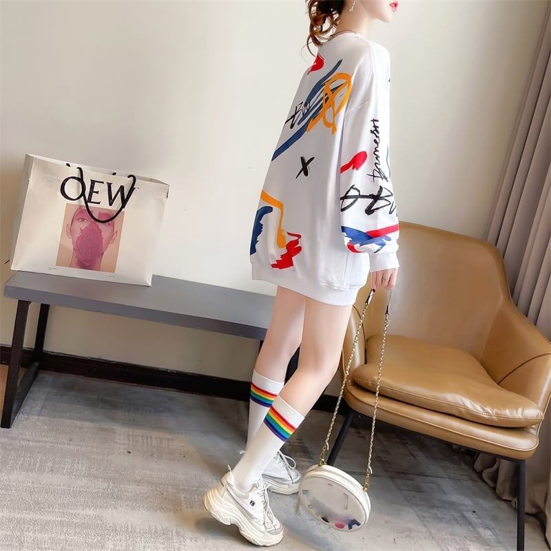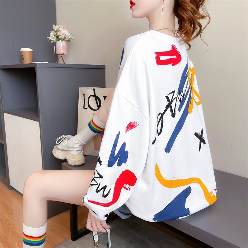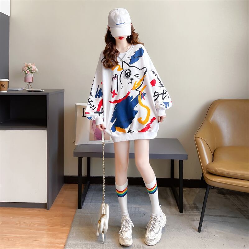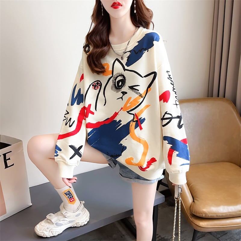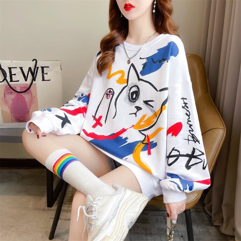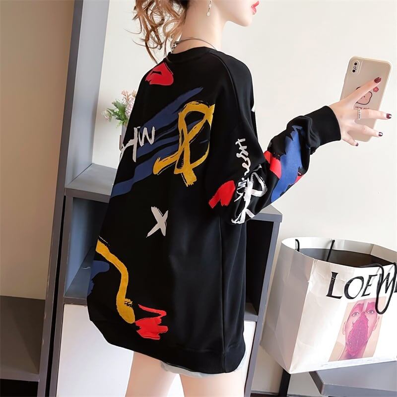 美人度アップ プリント ファッション スウェット パーカーE-3694