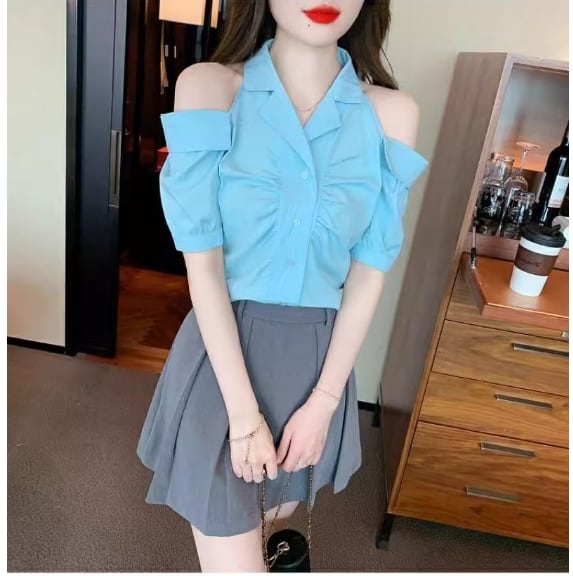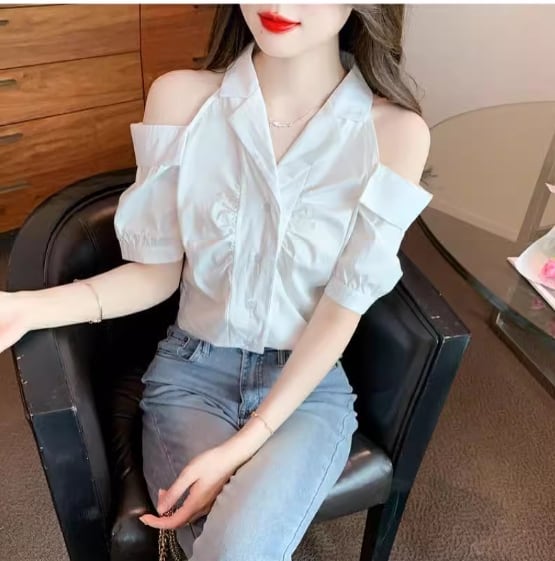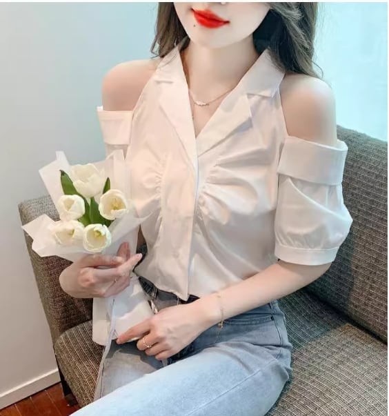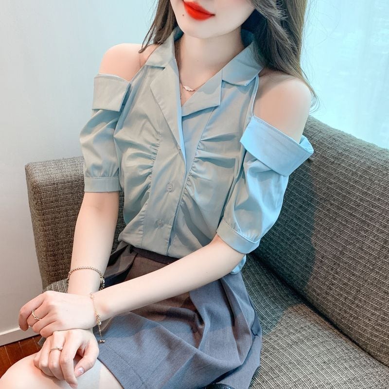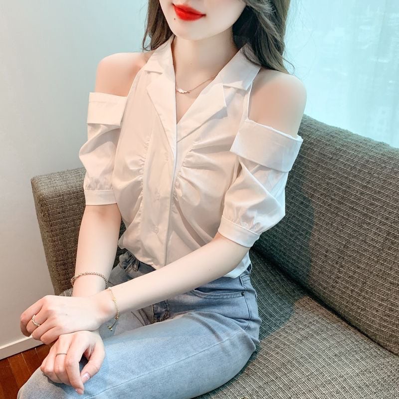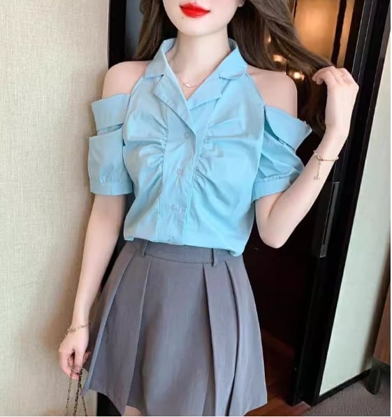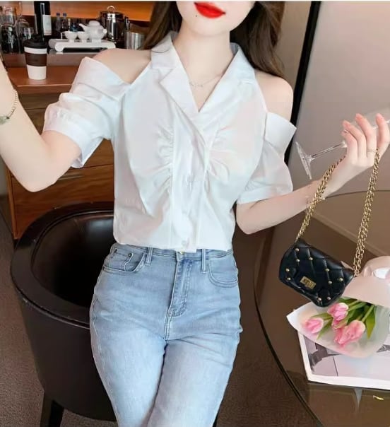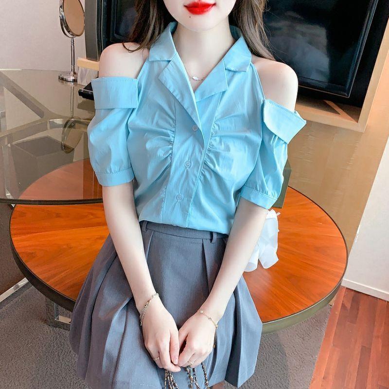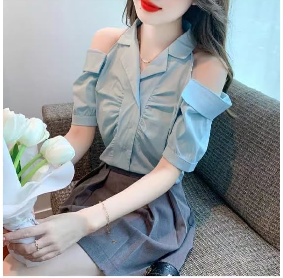 美人度アップ 上質エレガント 肩開き 半袖シャツ 半袖シャツ<ins-8213>