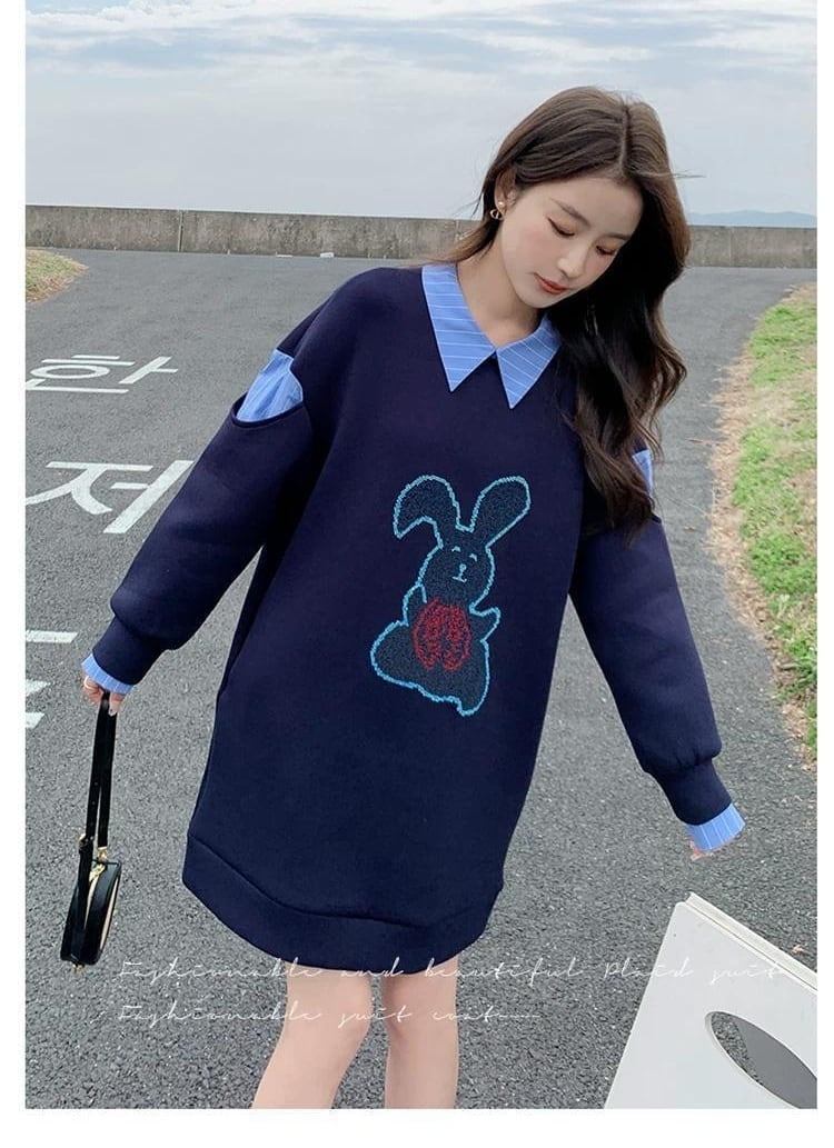 美人度アップ 長袖 プラスベルベット ニット セーター E-10485