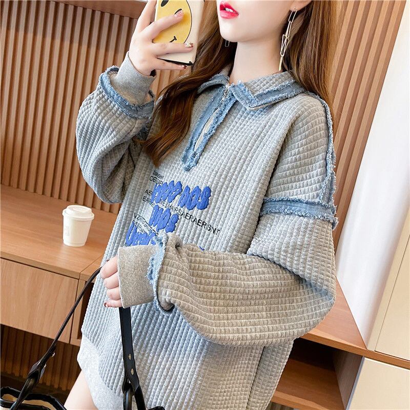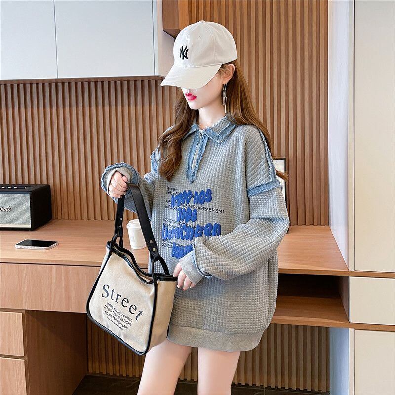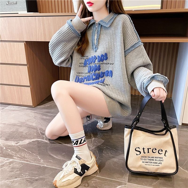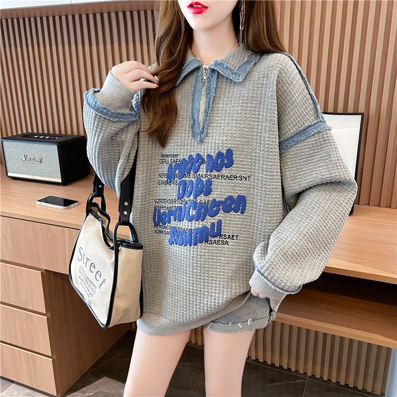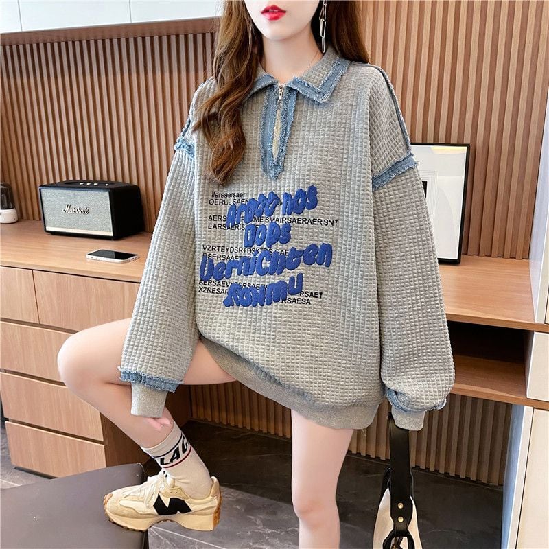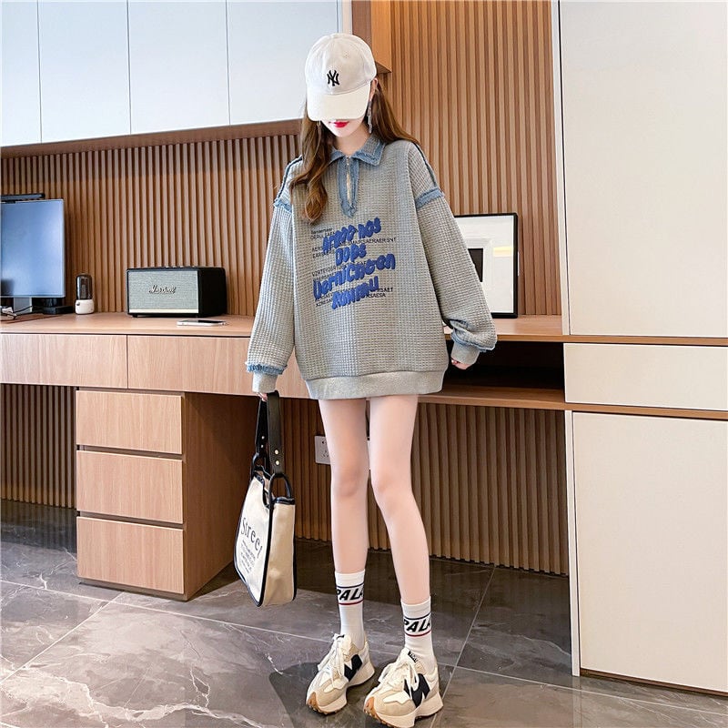 【裏起毛】お勧めポロネック英字ロゴ厚手スウェット グレートップスins-4748