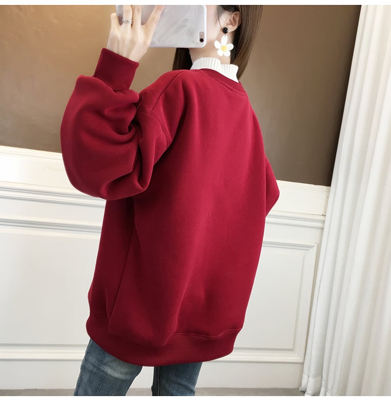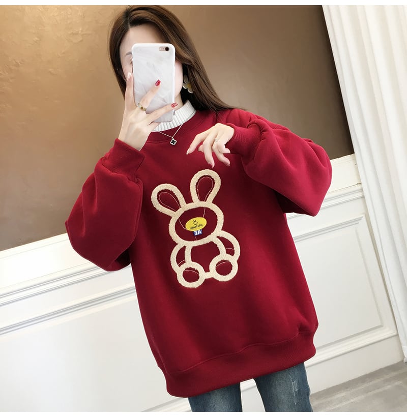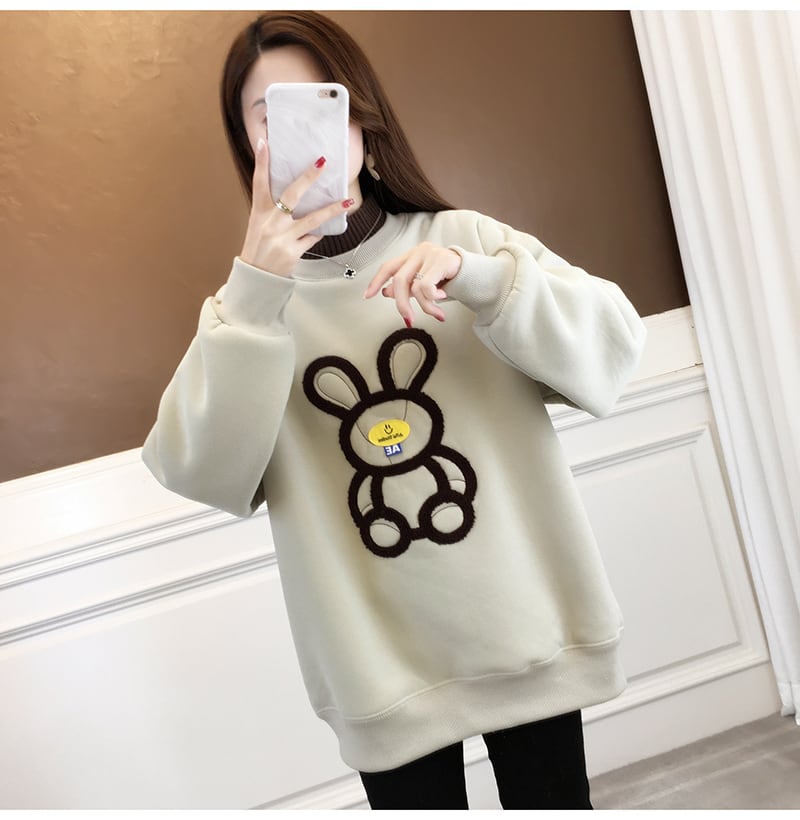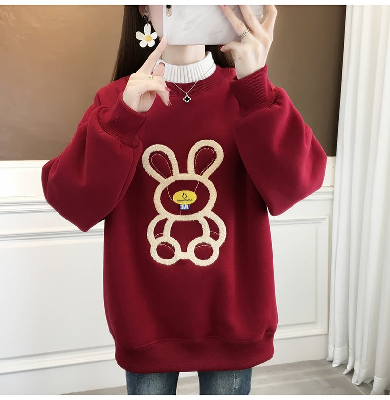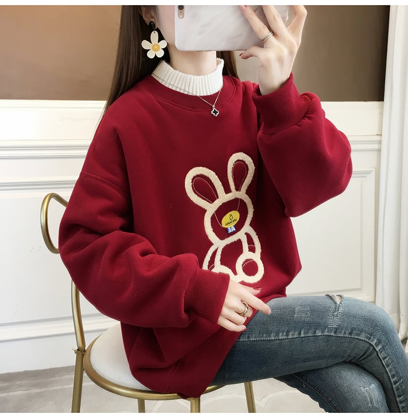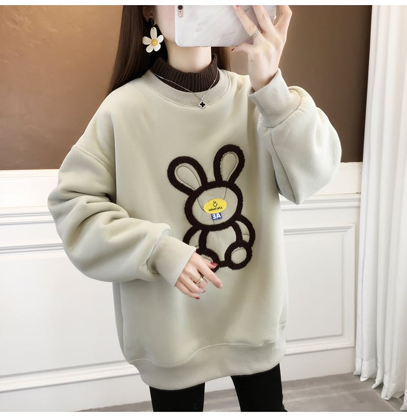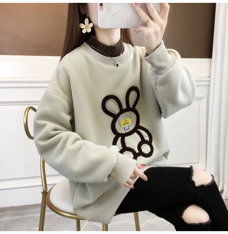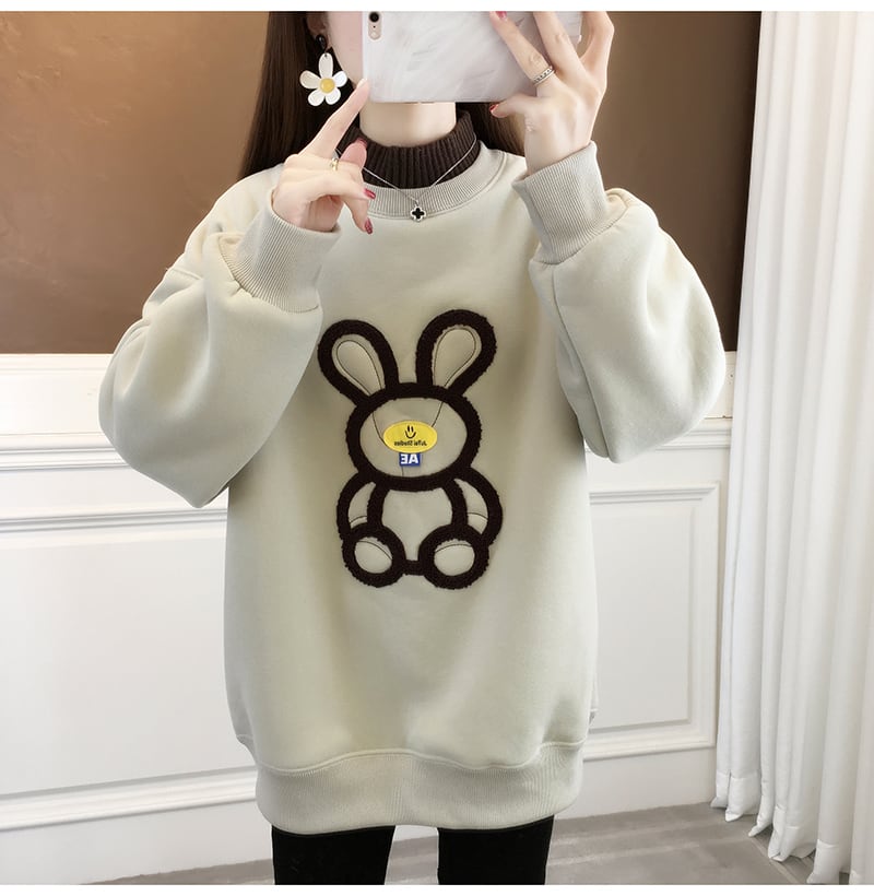 【裏起毛】レイヤード風ハイネックウサギちゃんロゴ厚手スウェット全2色ins-4746