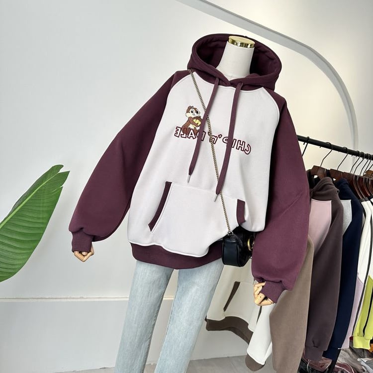 【裏起毛】韓国系 刺繡ロゴ厚手ゆったりフード付きパーカ全3色 ins-4740