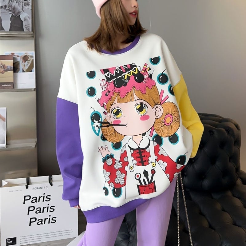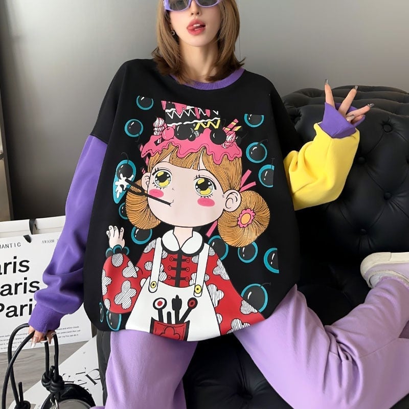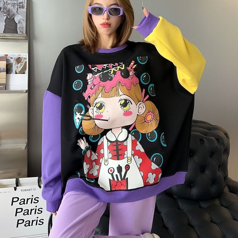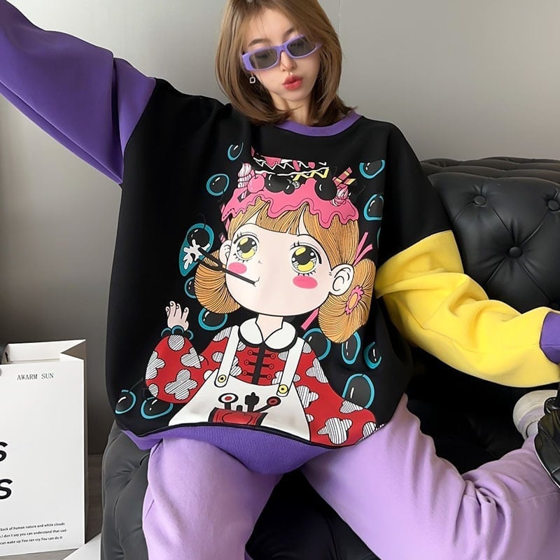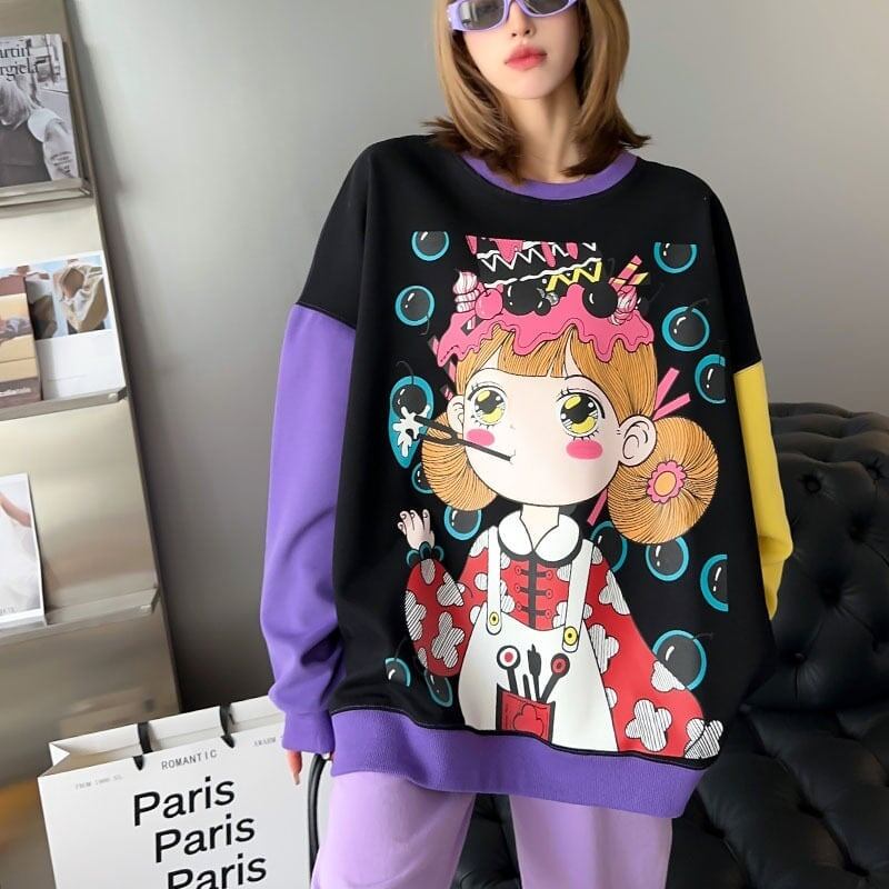 見逃し禁止 グラフィックプリントオーバーサイズスウェット二色ありトップス<ins-4156>