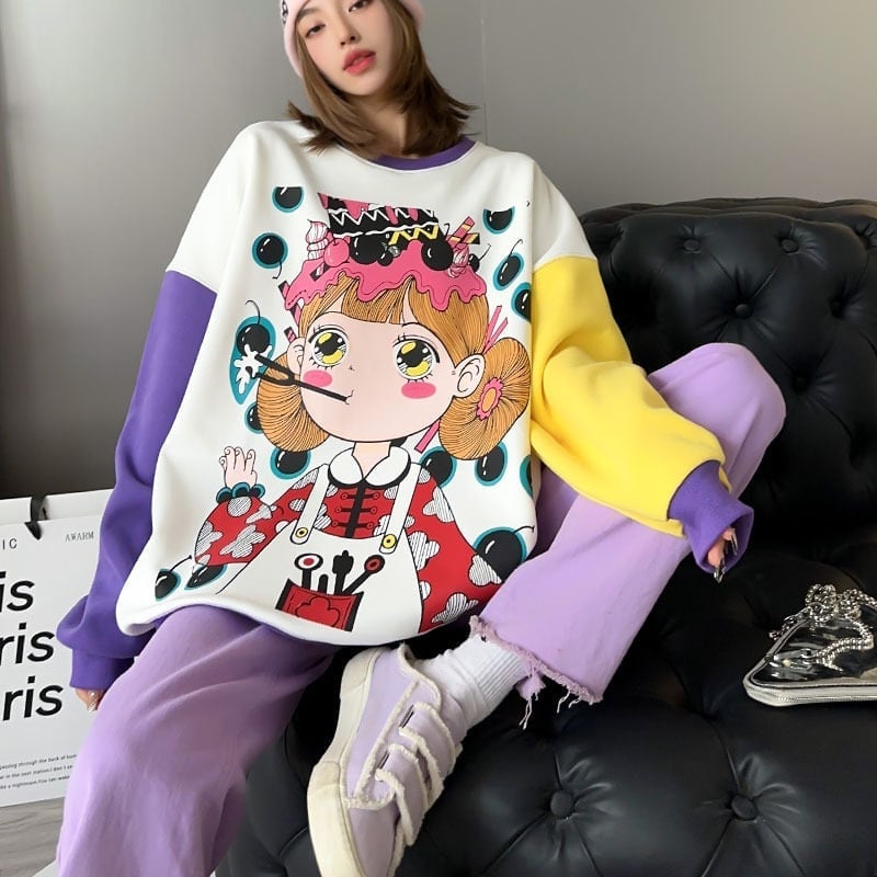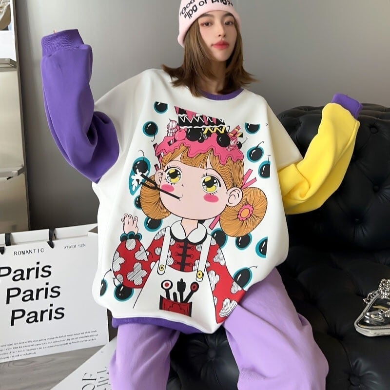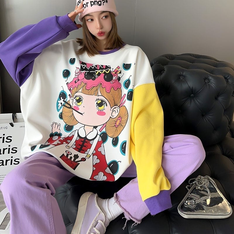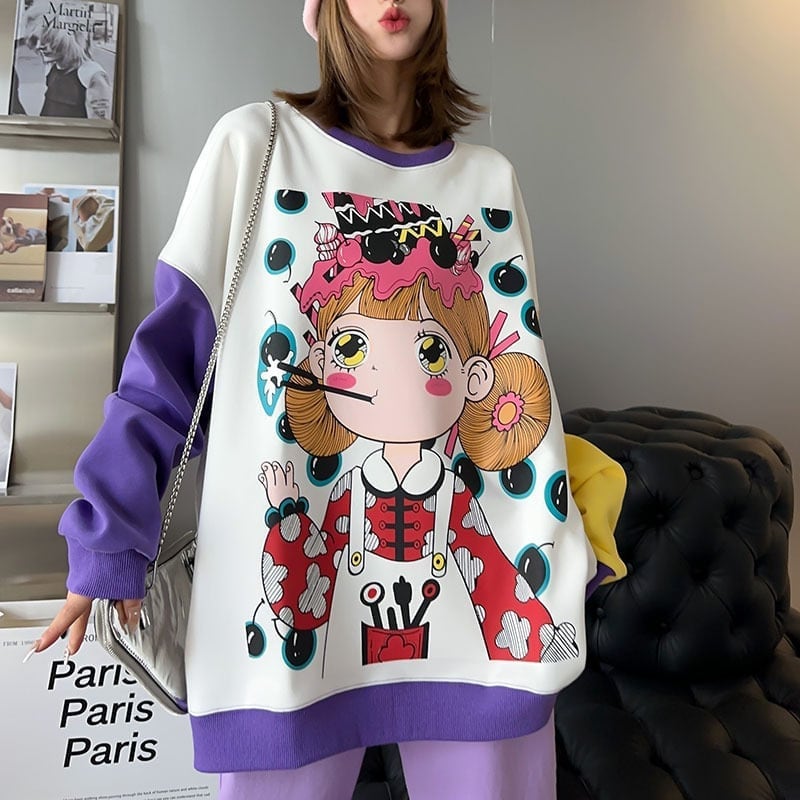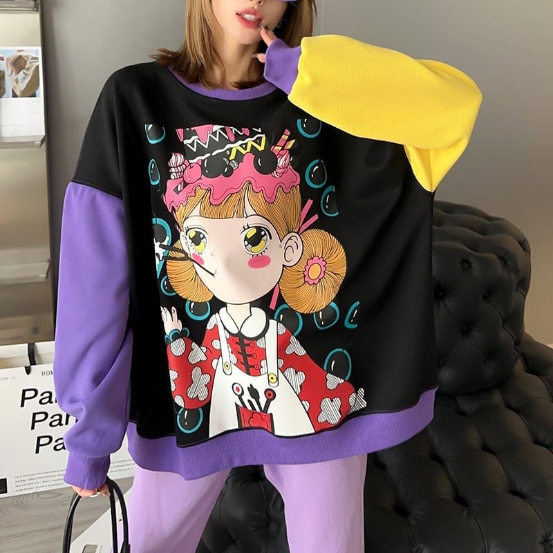 見逃し禁止 グラフィックプリントオーバーサイズスウェット二色ありトップス<ins-4156>