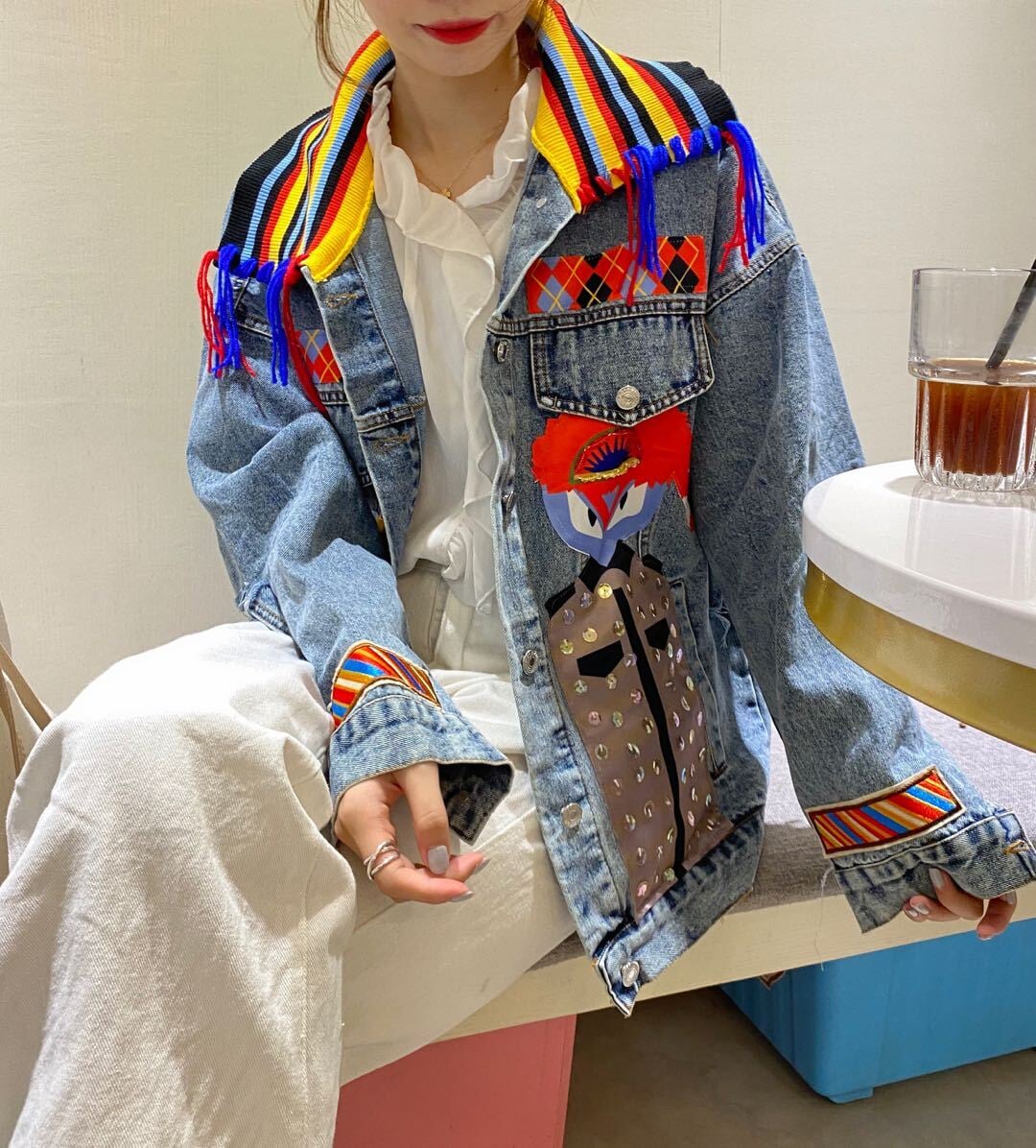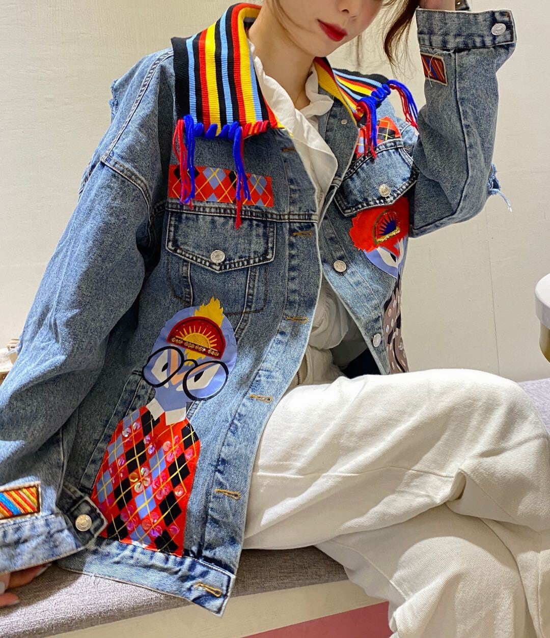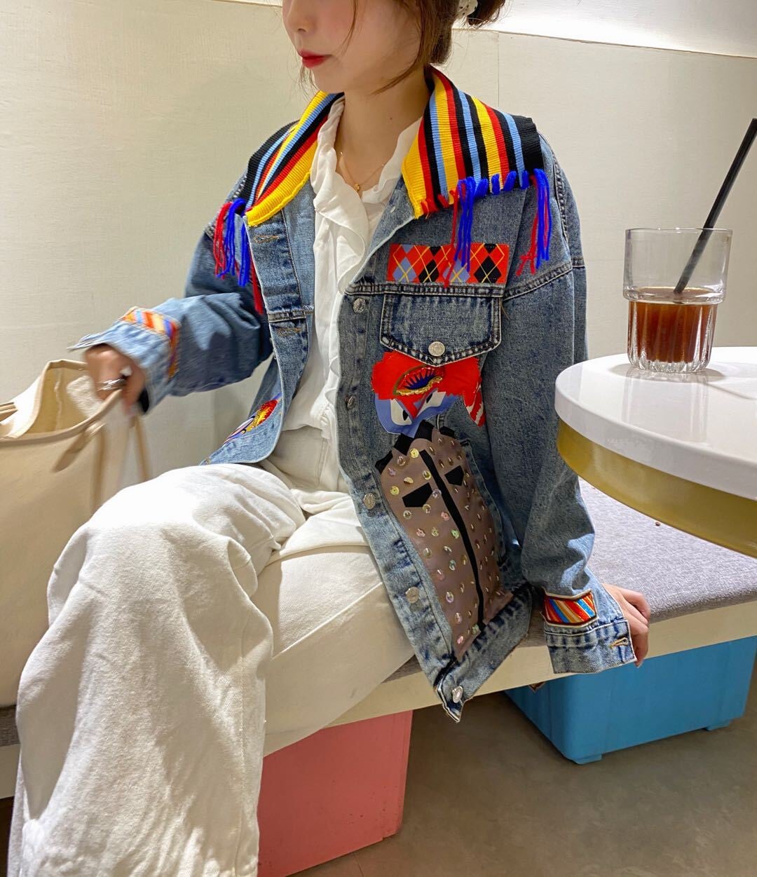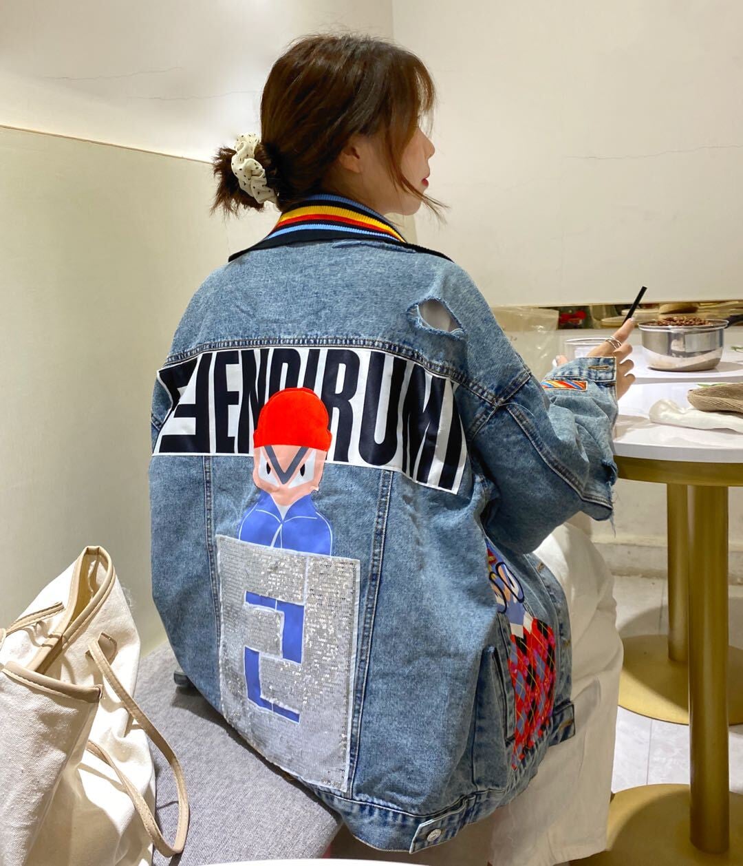 見逃し禁止 ダメージ加工 切り替え ビッグロゴ デニムジャケット コートins-4776