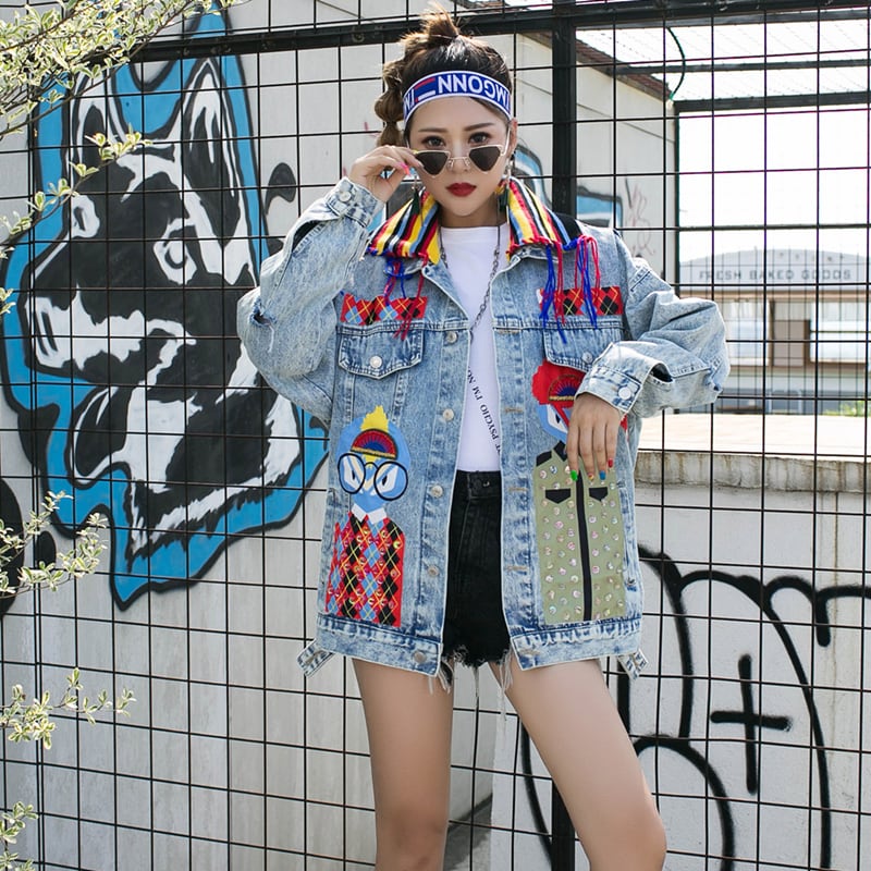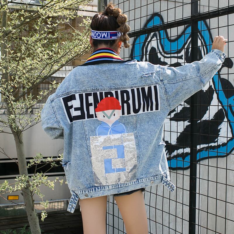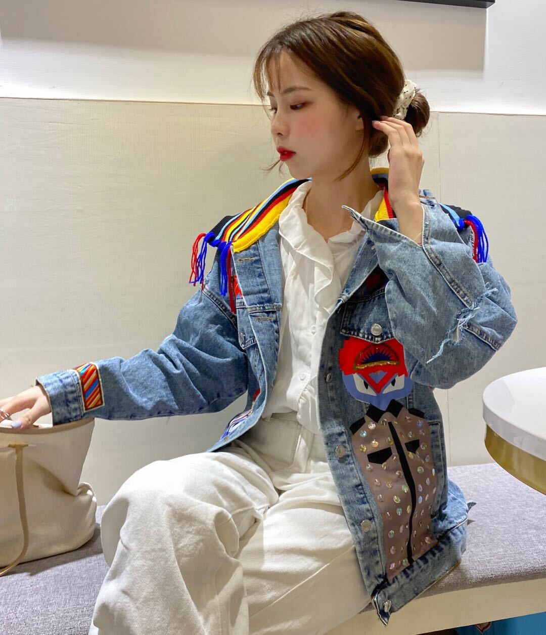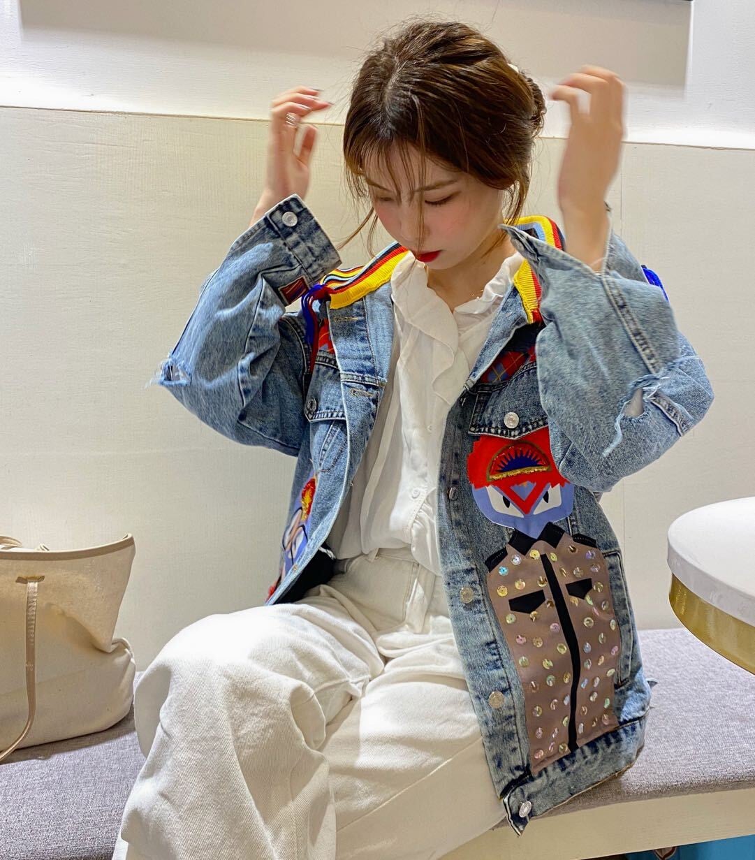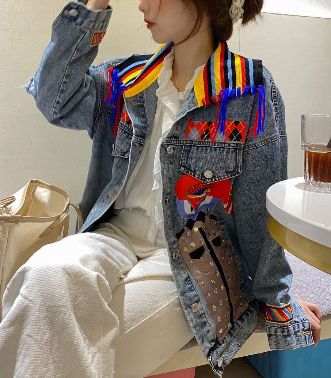 見逃し禁止 ダメージ加工 切り替え ビッグロゴ デニムジャケット コートins-4776