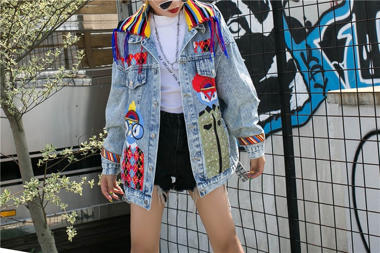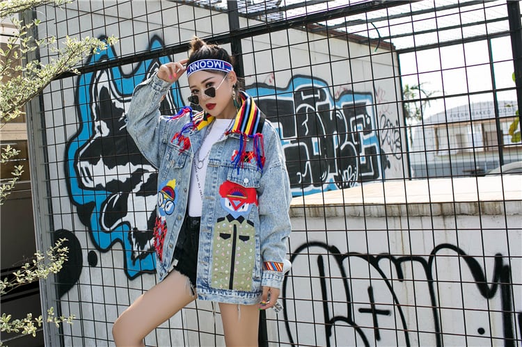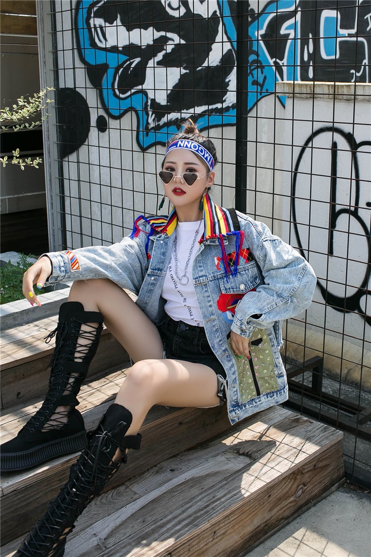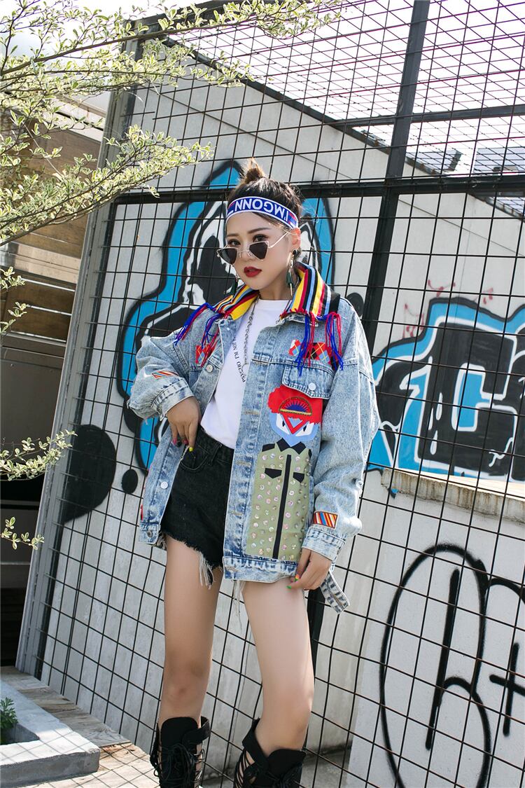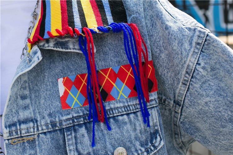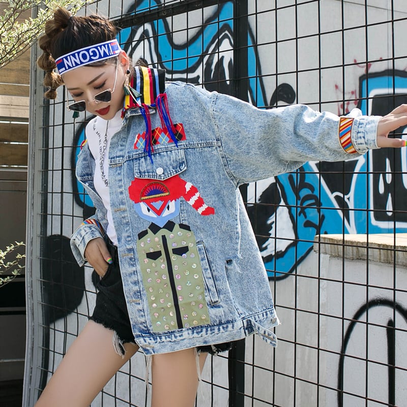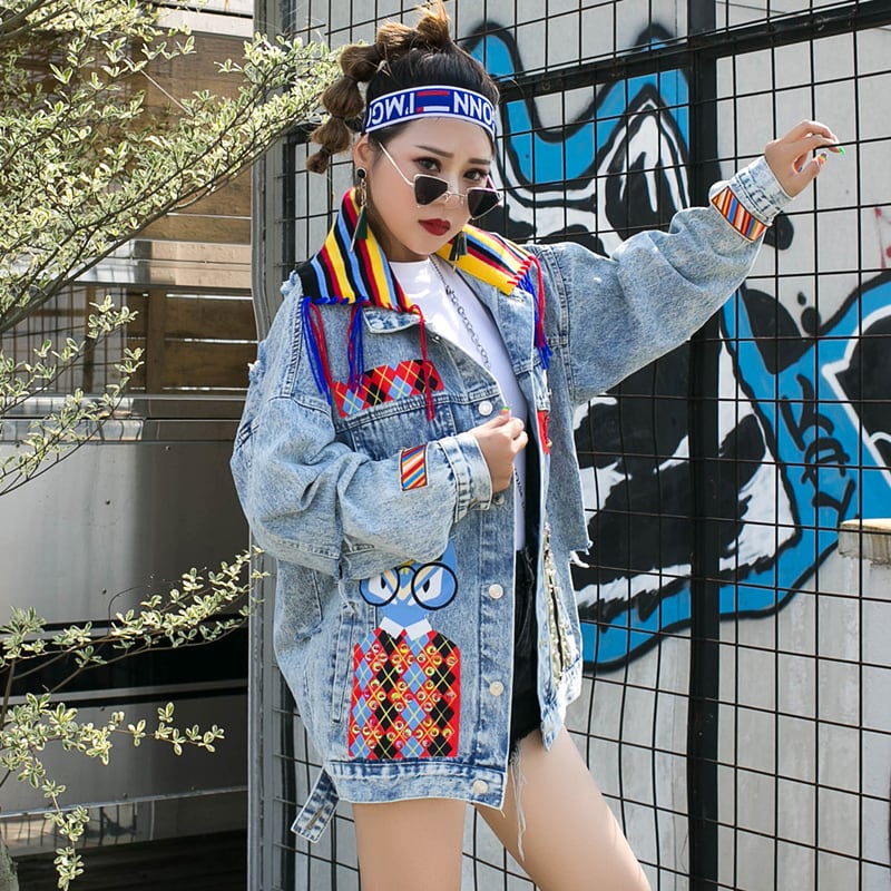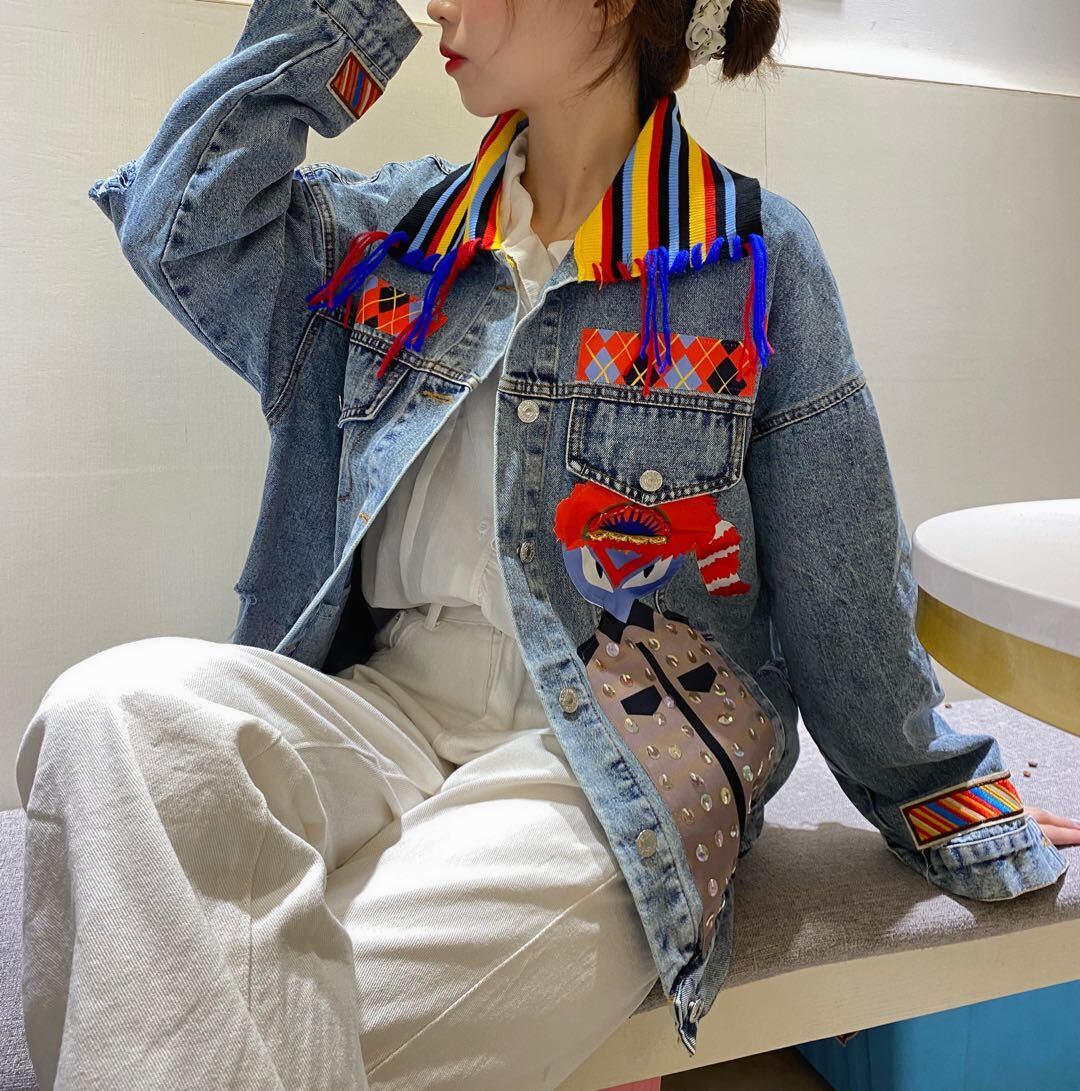 見逃し禁止 ダメージ加工 切り替え ビッグロゴ デニムジャケット コートins-4776