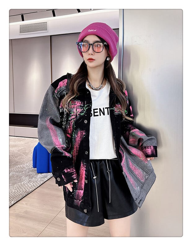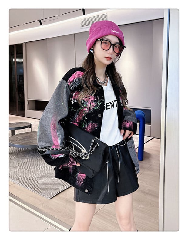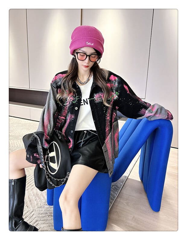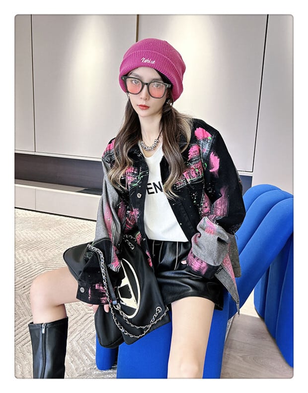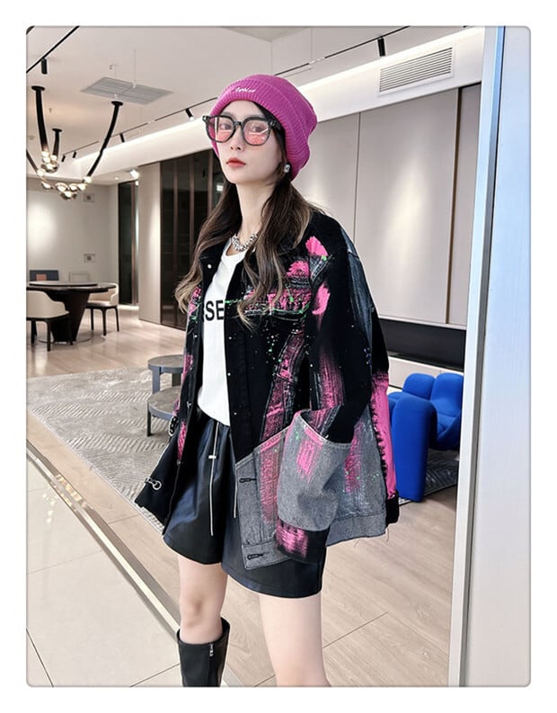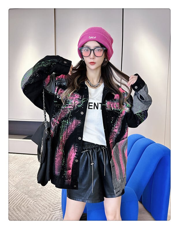 見逃し禁止 ヴィンテージ加工デニムジャケット ブラック ゆったりコートins-4766