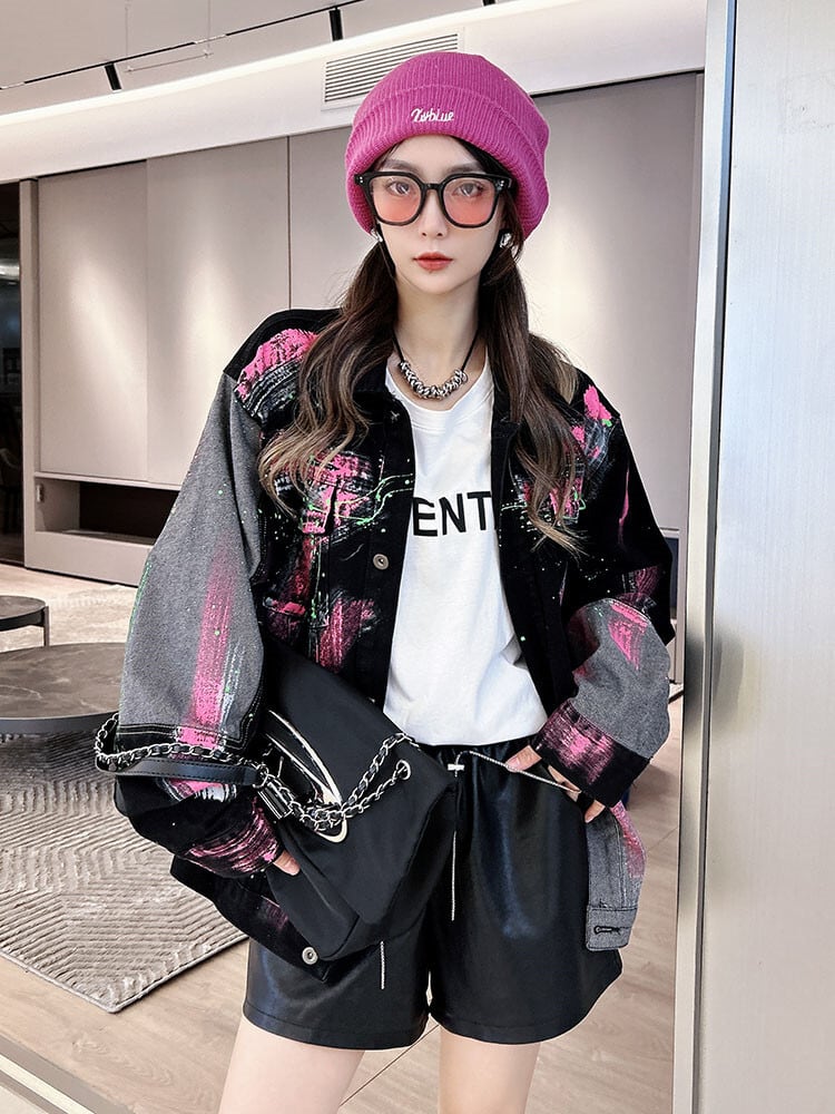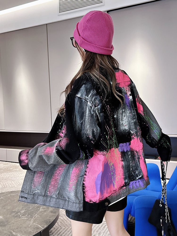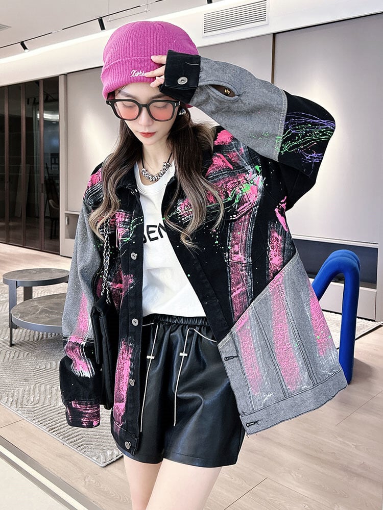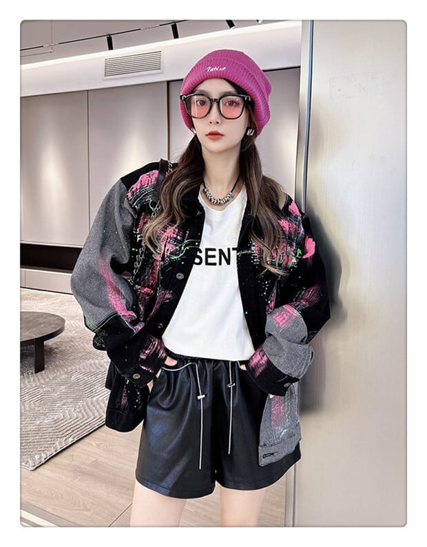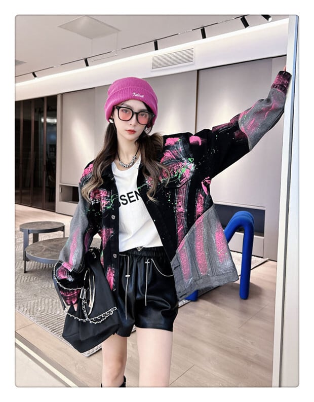 見逃し禁止 ヴィンテージ加工デニムジャケット ブラック ゆったりコートins-4766