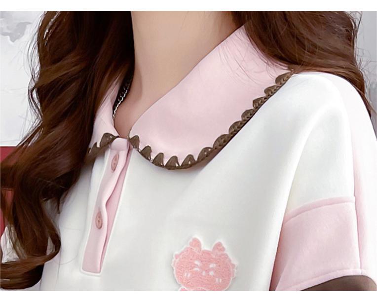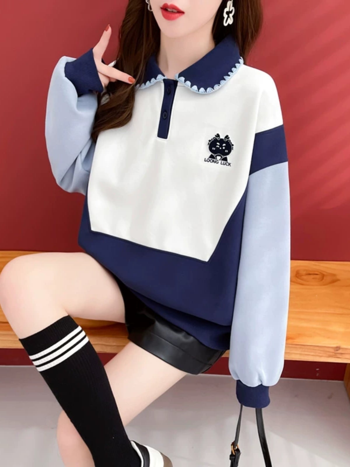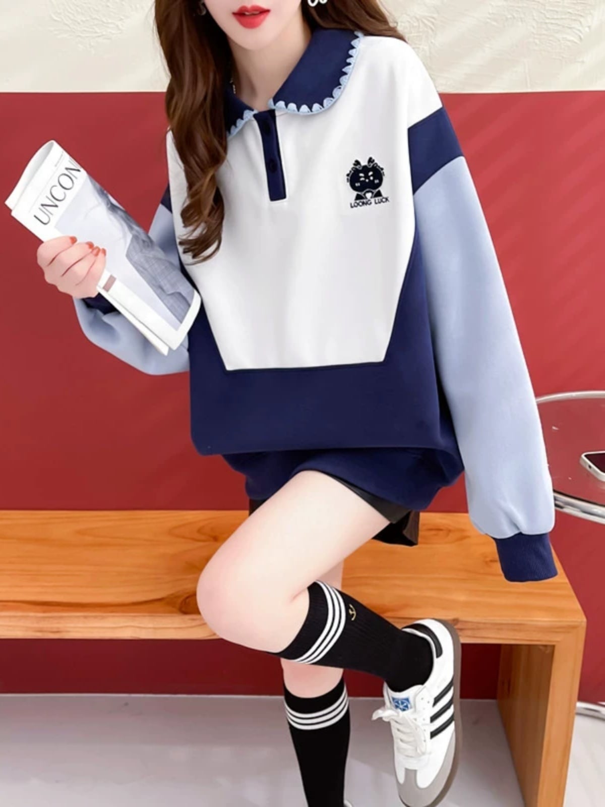 話題沸騰中カラーマッチング 切り替え 折り襟 ゆったりスウェット全2色トップスins-4783
