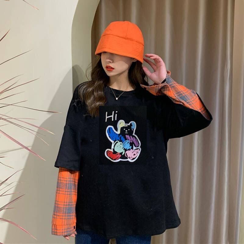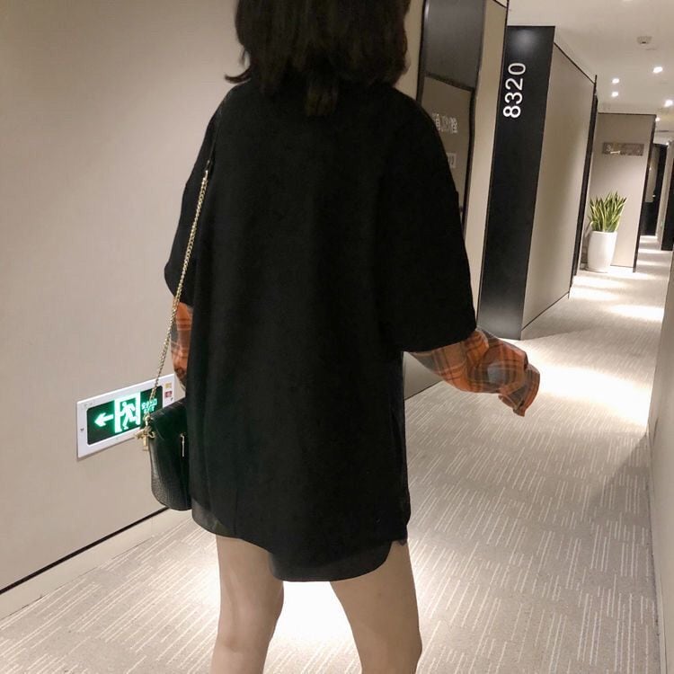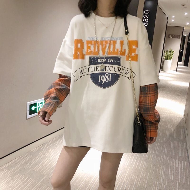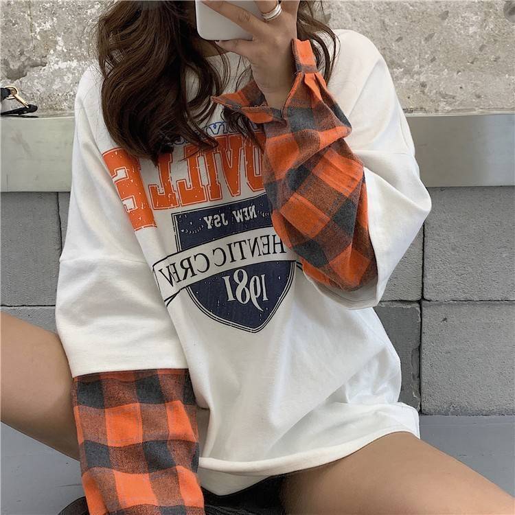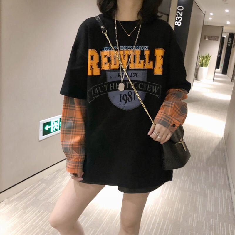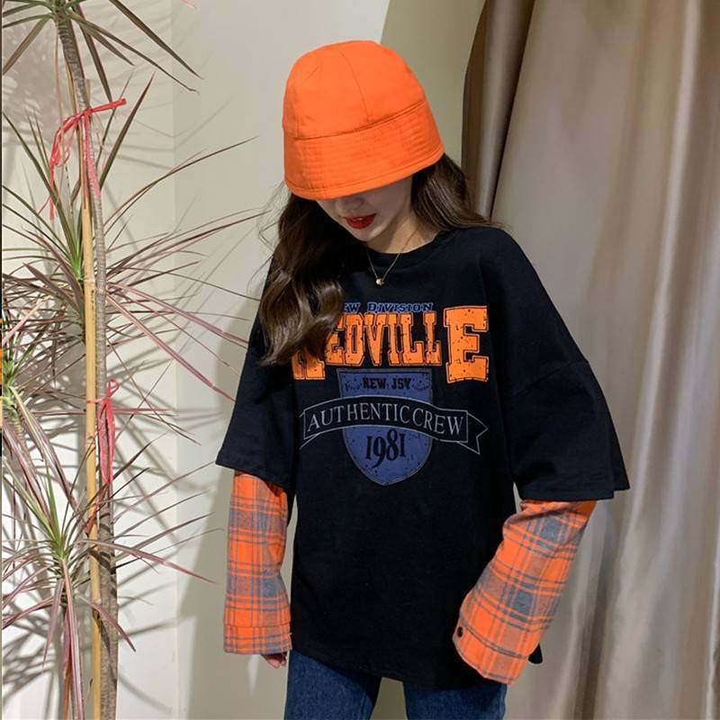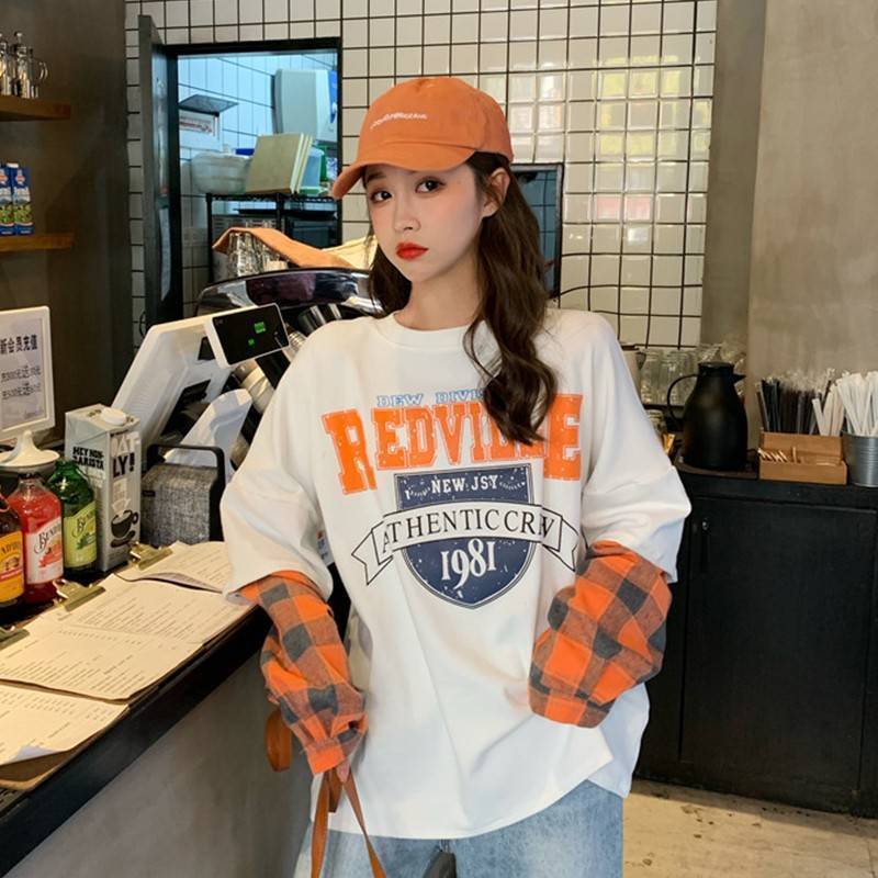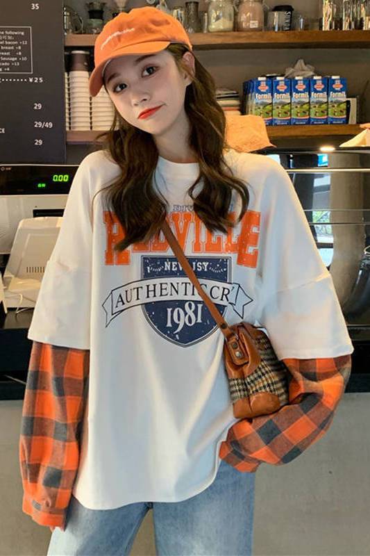 話題沸騰中レイヤード風 切り替え英字ロゴ ゆったりスウェット 全2色トップスins-4822