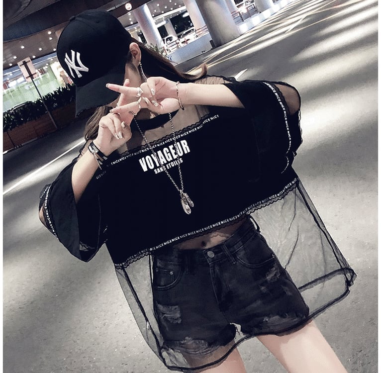 話題沸騰中 アバンギャルド レイヤード風 プリントTシャツ ゆったり半袖<ins-8102>