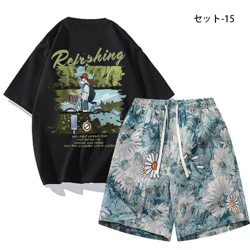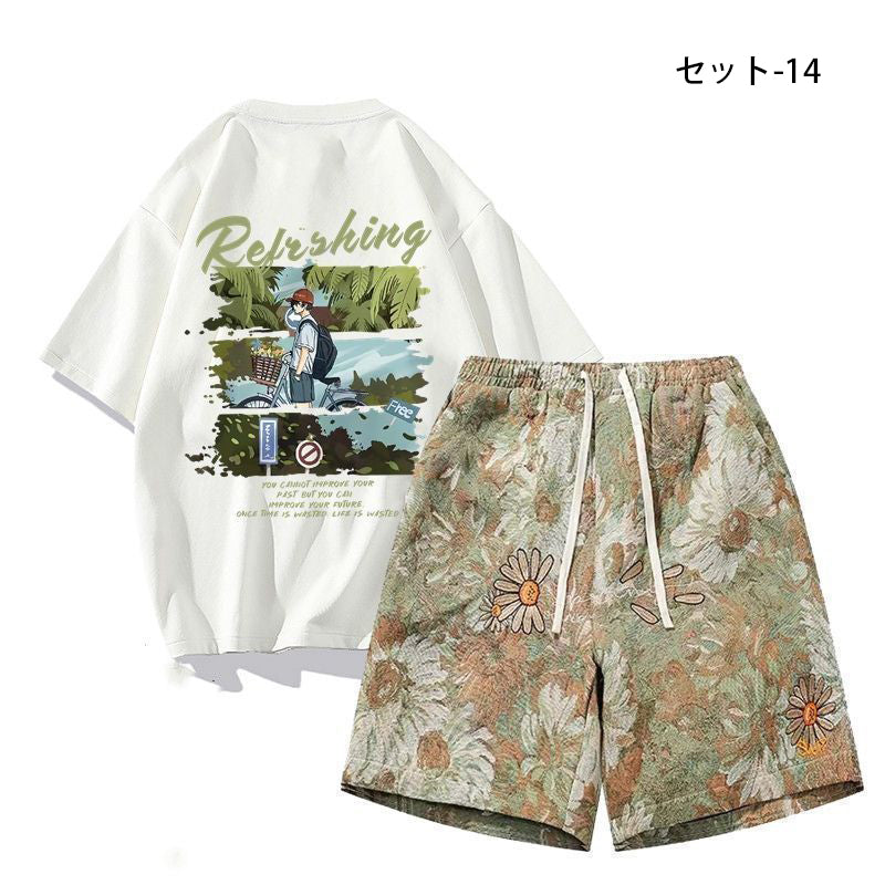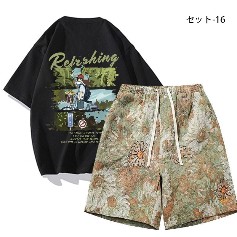 話題沸騰中 カジュアル 16種類選択可 半袖Tシャツⅹパンツセット-A829