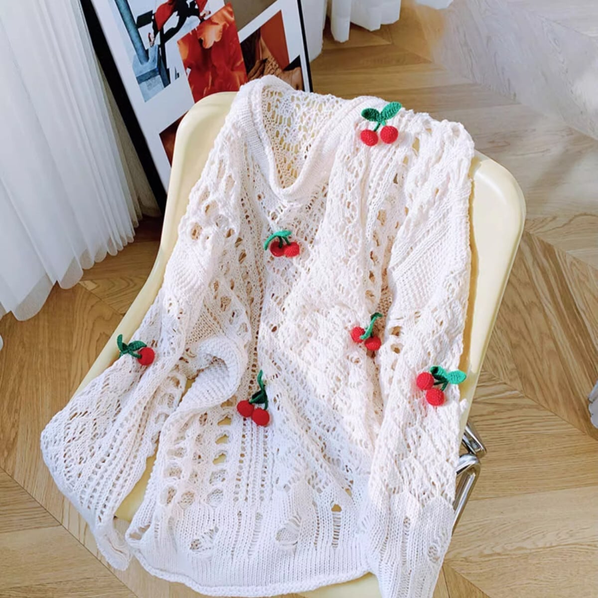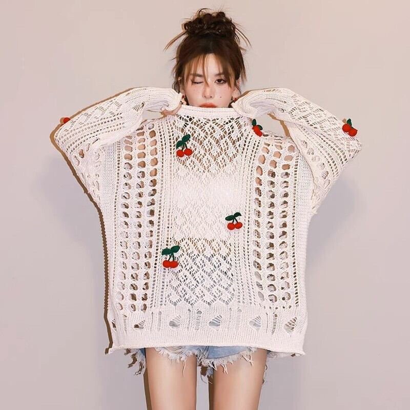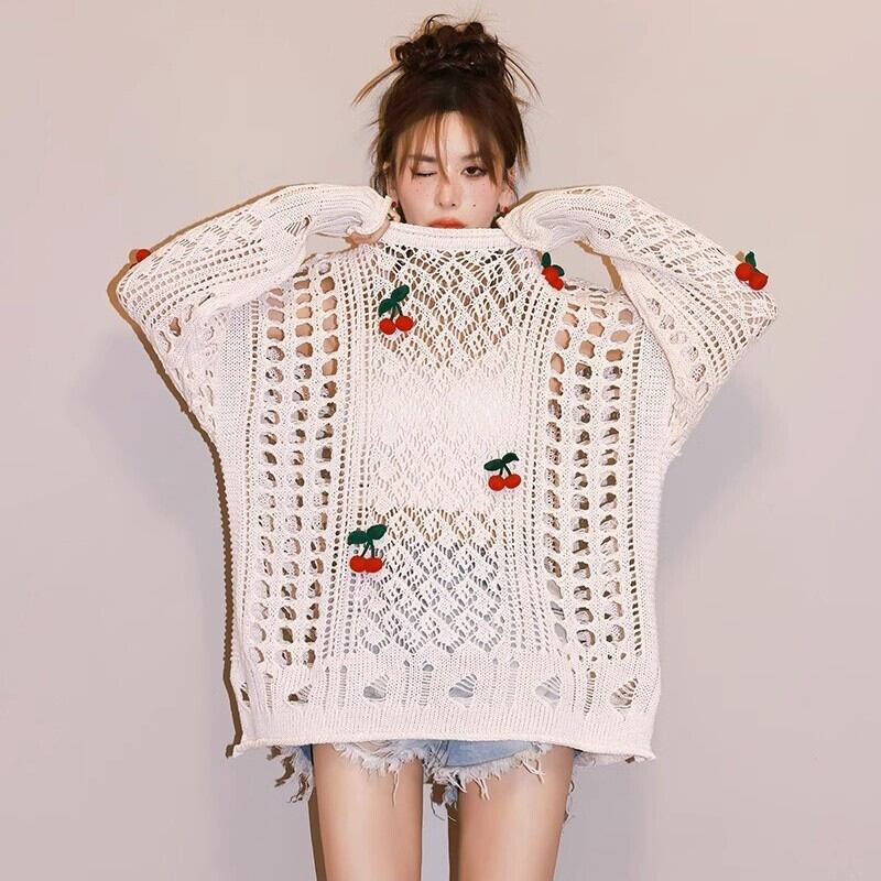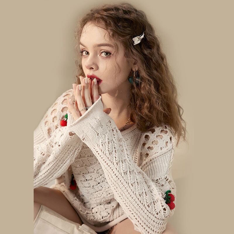 話題沸騰中 キュート 美人度アップ おしゃれ度高め 透かし彫り ニットトップスE-9154