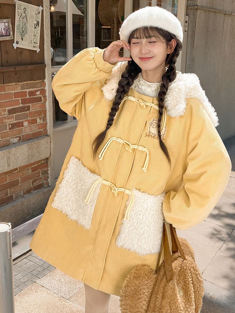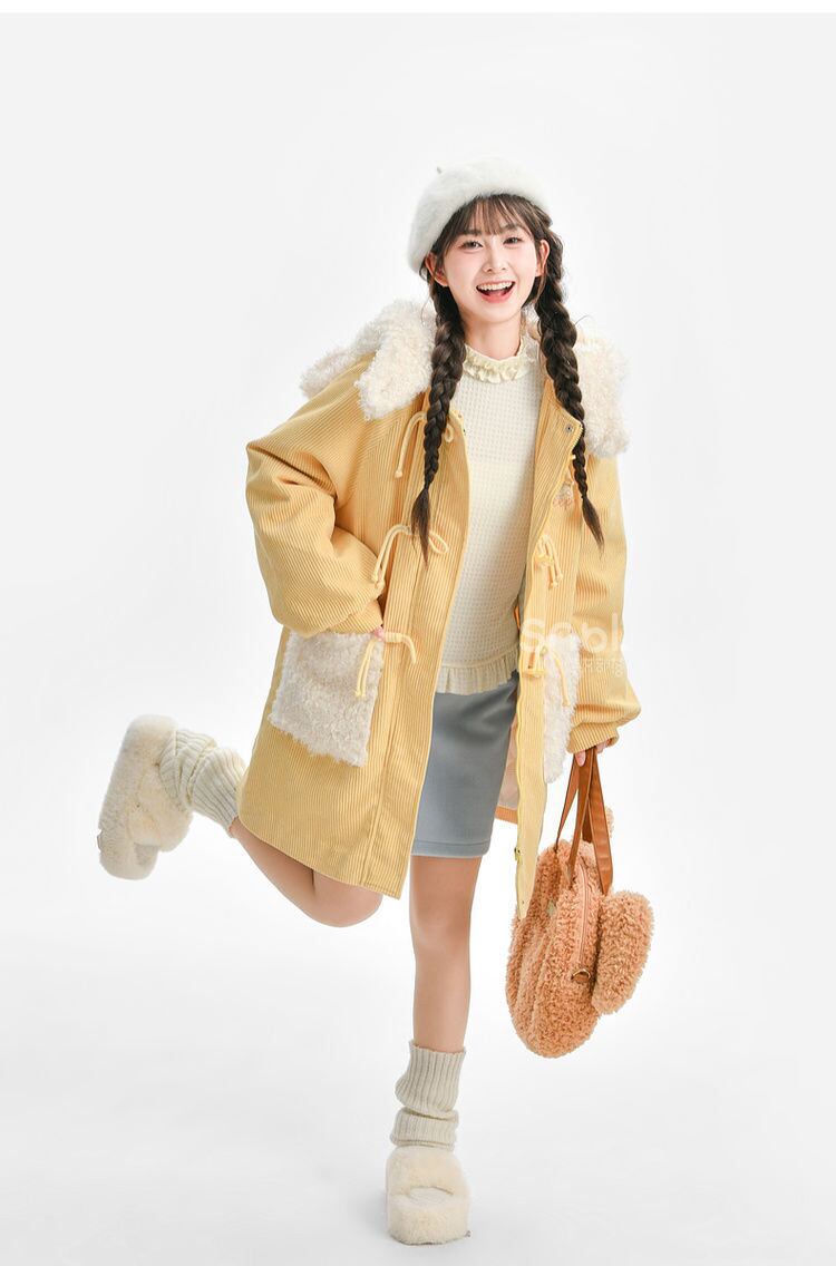 話題沸騰中 スウィート 主役級の存在感!大人可愛い 切り替え ミドル丈のコットンコート E-9846