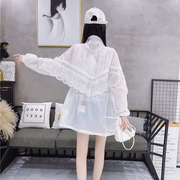 話題沸騰中 UVカット夏 長袖 薄手 透け感 日焼け止め ゆったり シャツ<ins-4999>