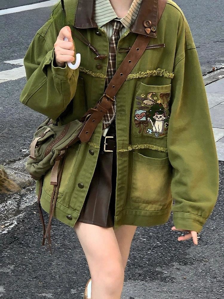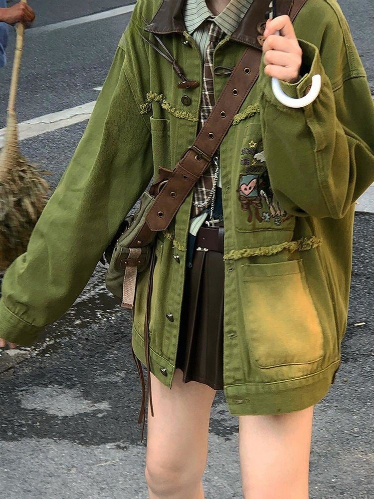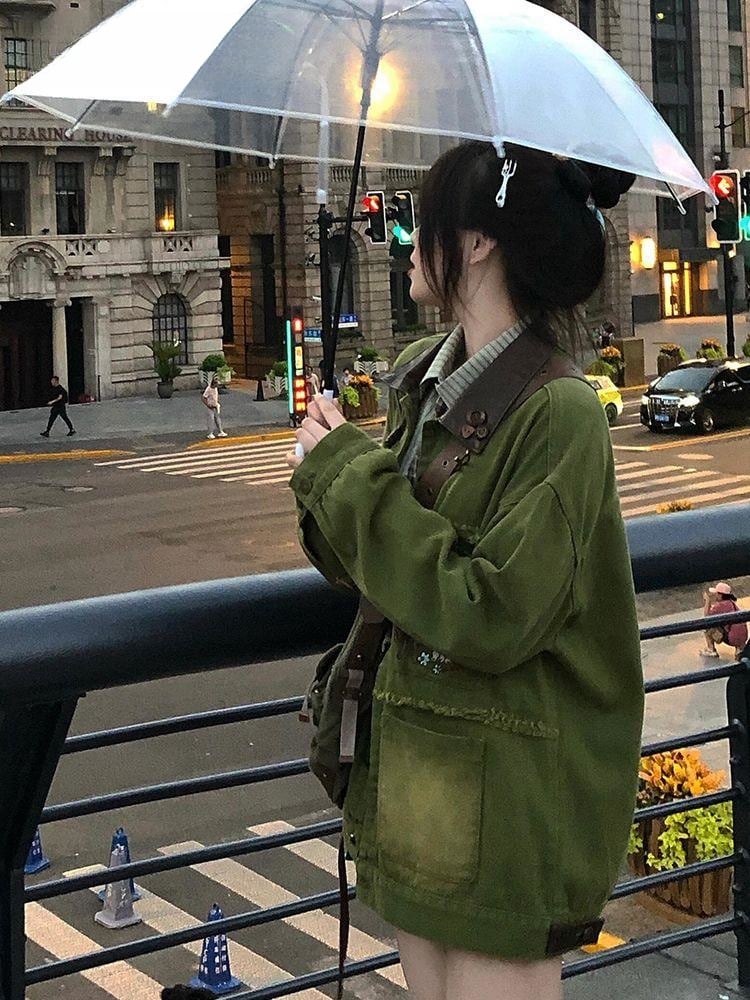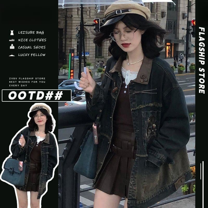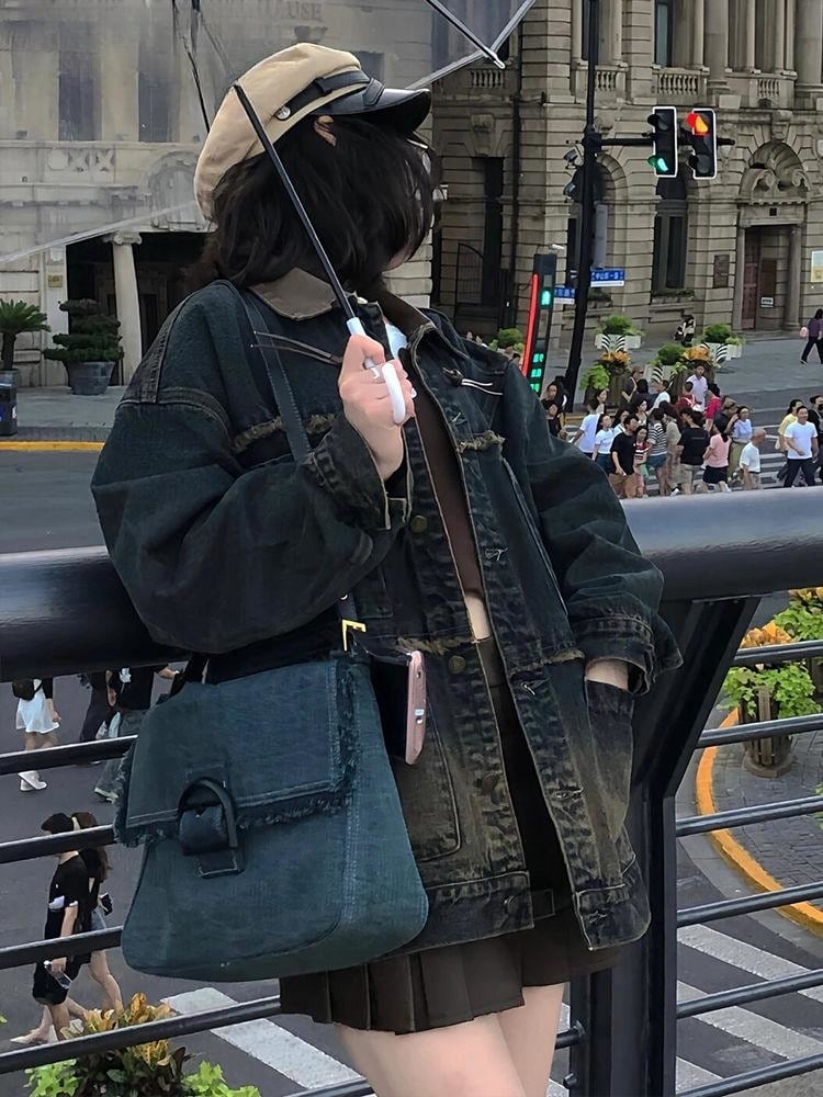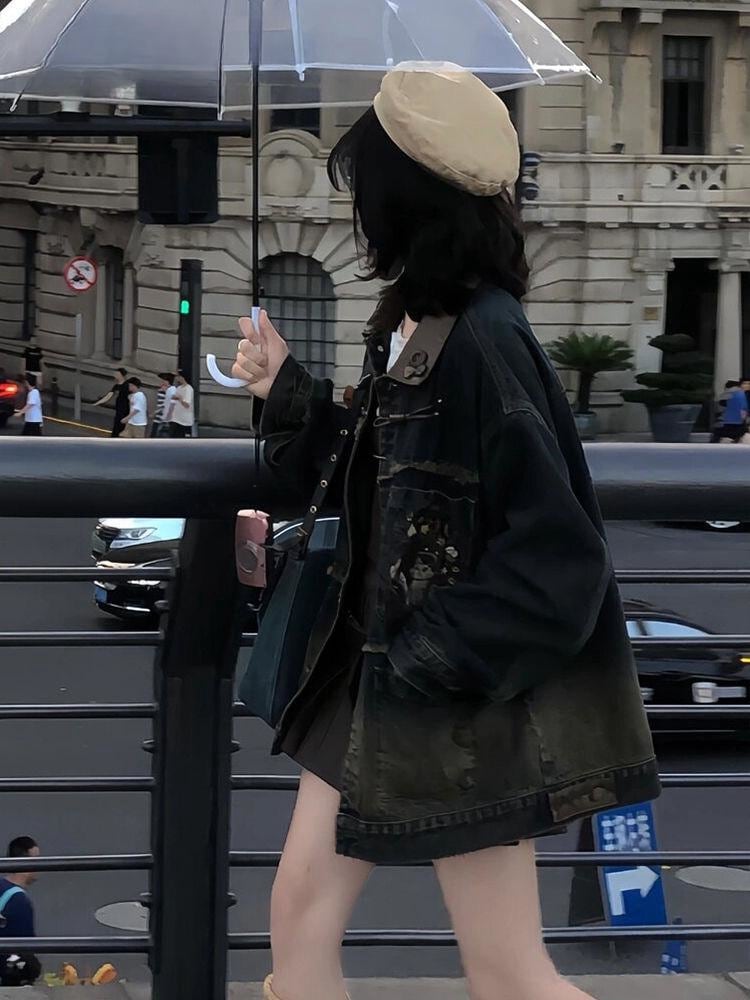 質感のいいヴィンテージ加工 デニムジャケット 全2色ゆったりコートins-4798