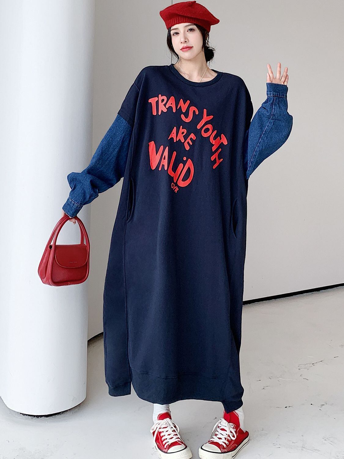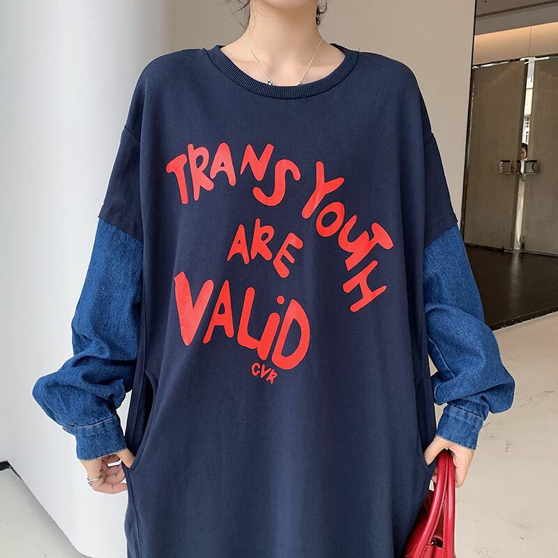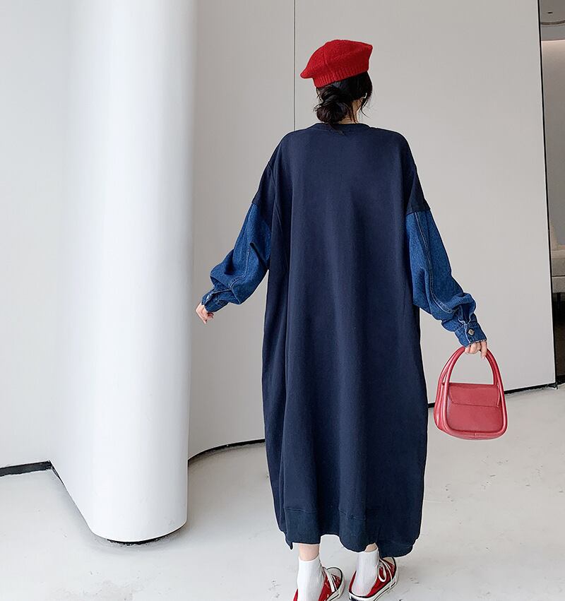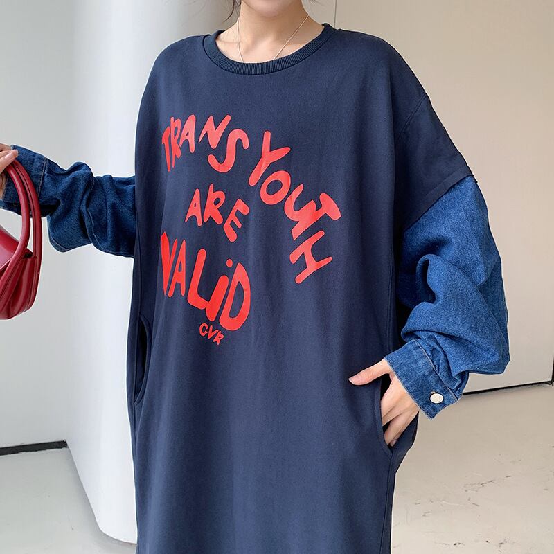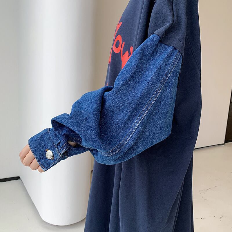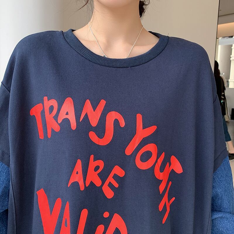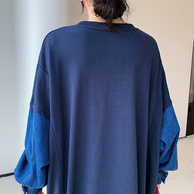 質感のいい デニム プラスベルベット長袖 ニット セーター E-10357