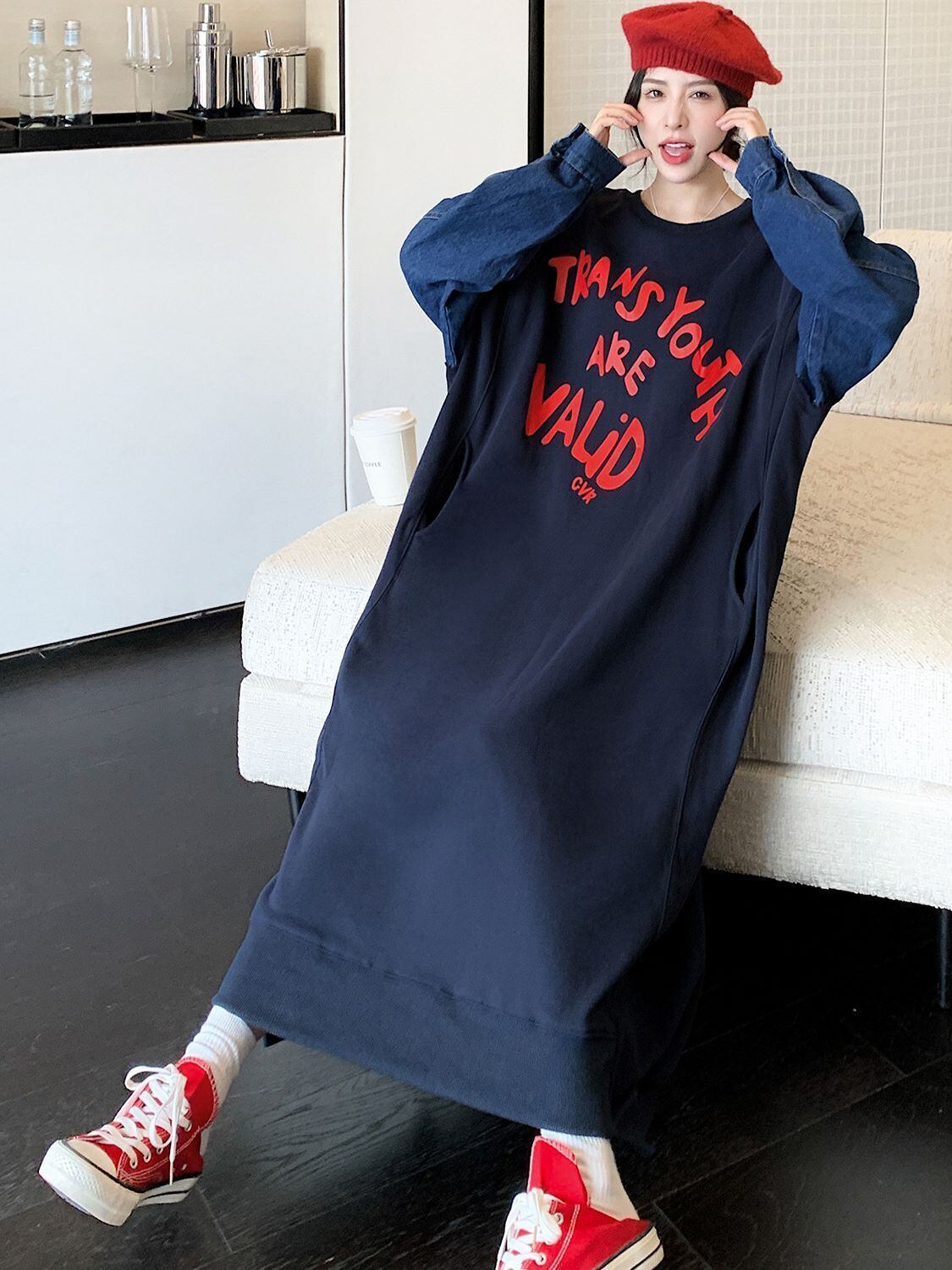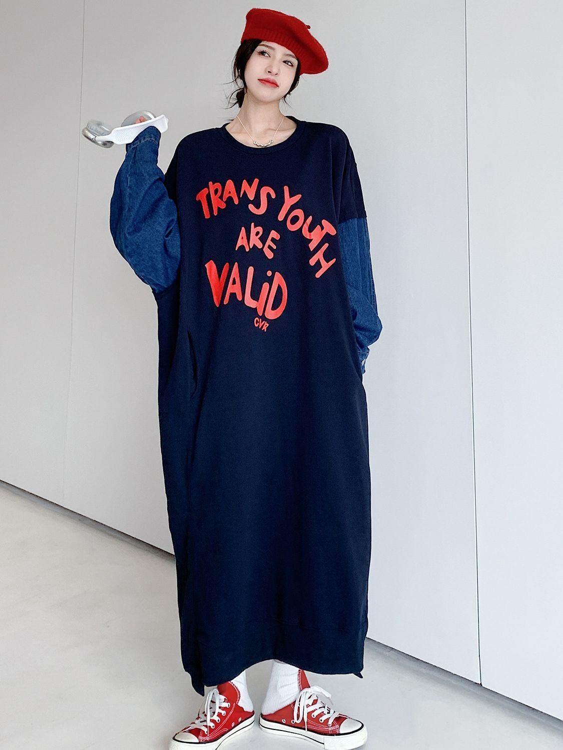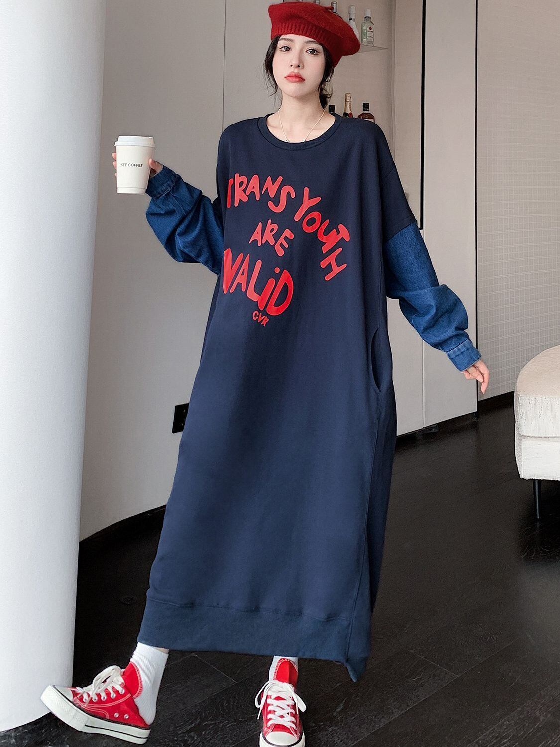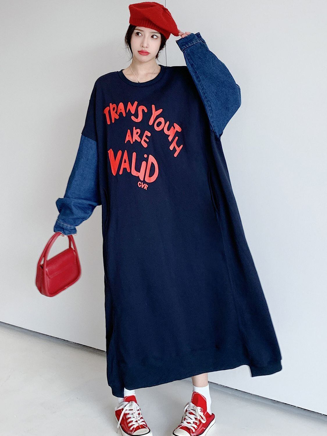 質感のいい デニム プラスベルベット長袖 ニット セーター E-10357
