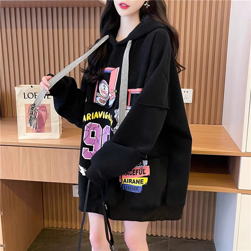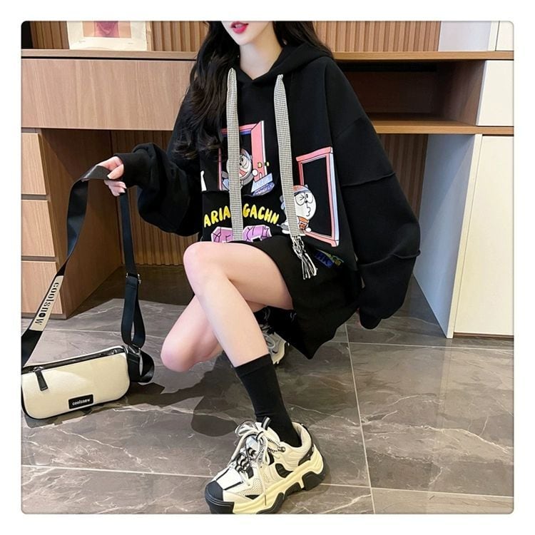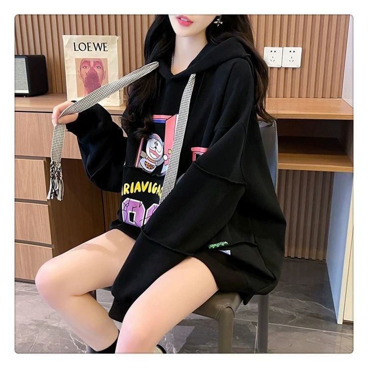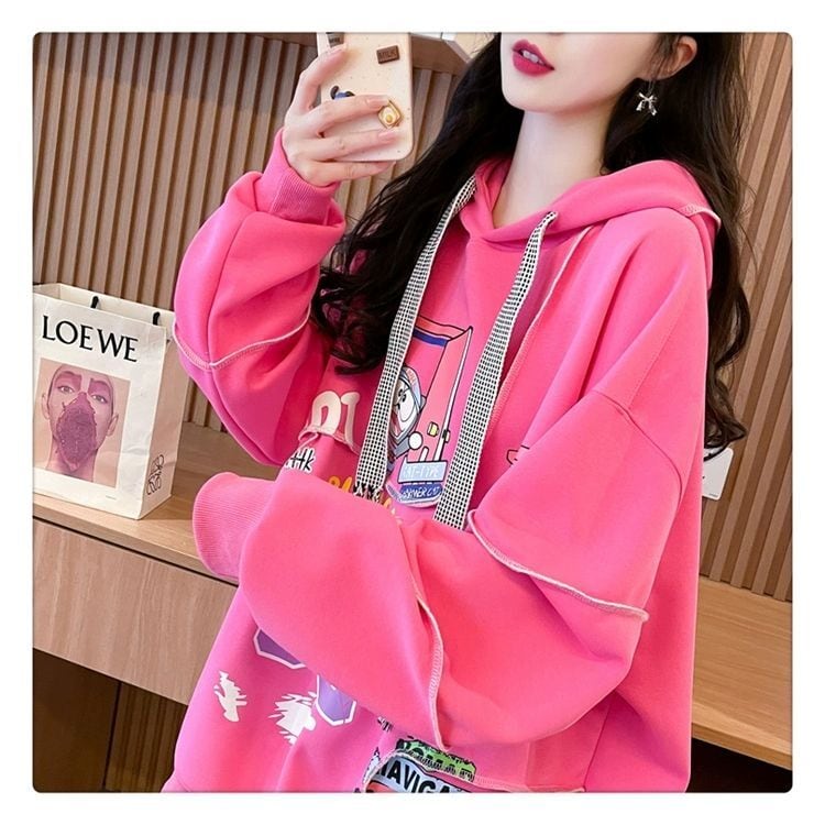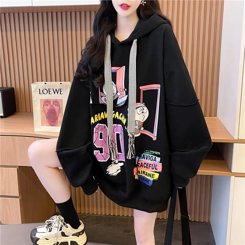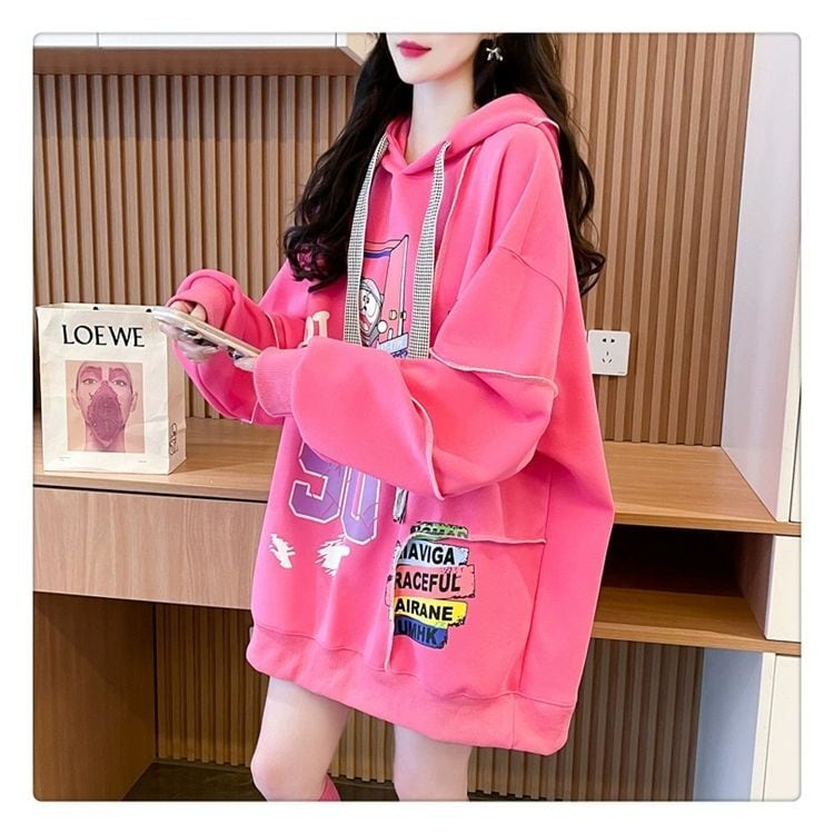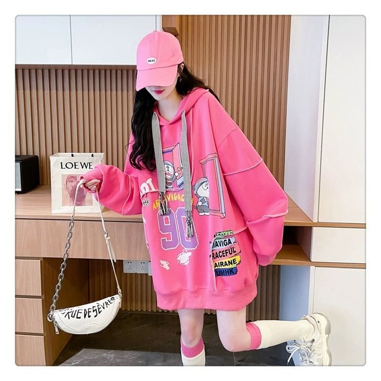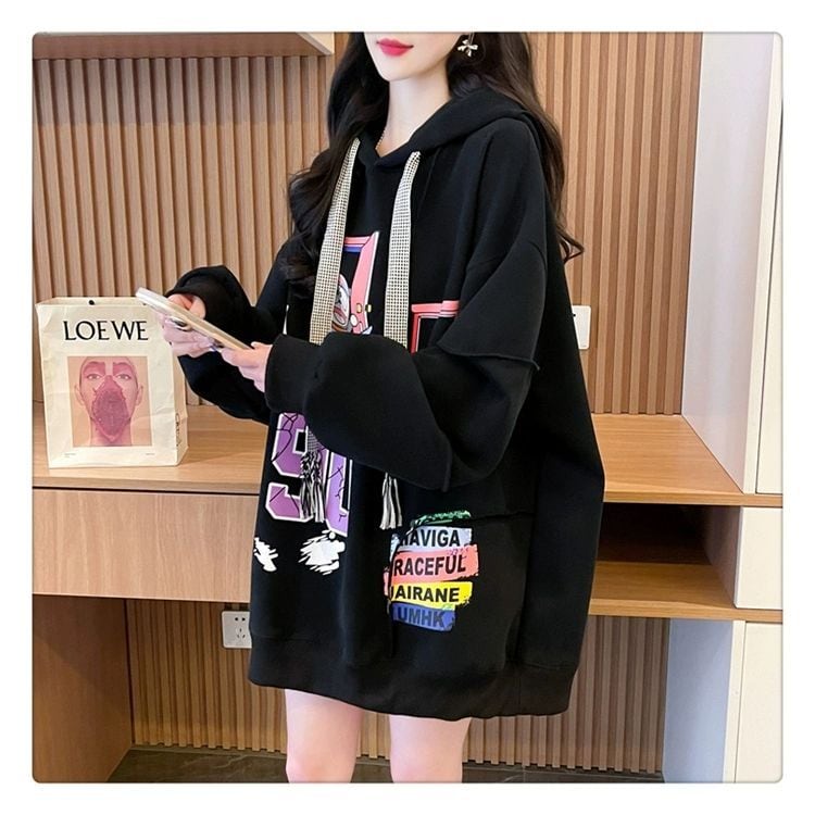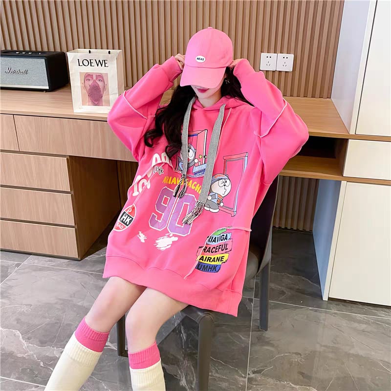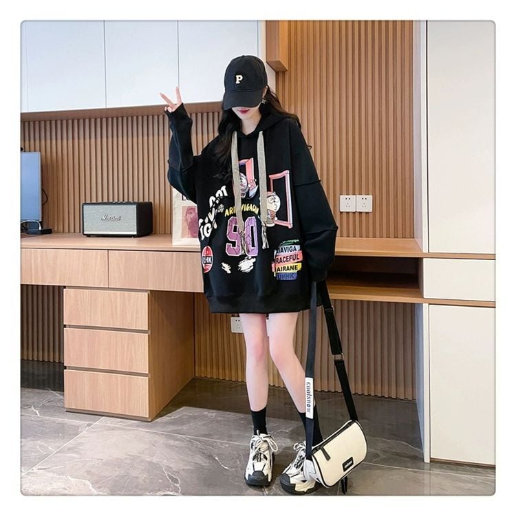 質感のいい ビッグロゴ オーバーサイズ フード付きパーカー全2色ins-4848