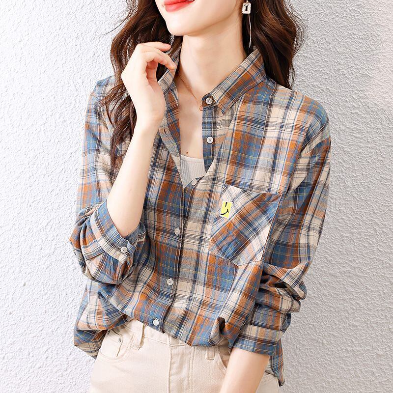 超人気 オシャレ 都市ファッショ デザイン チェック柄 切り替え Tシャツ E-9514
