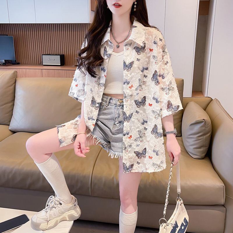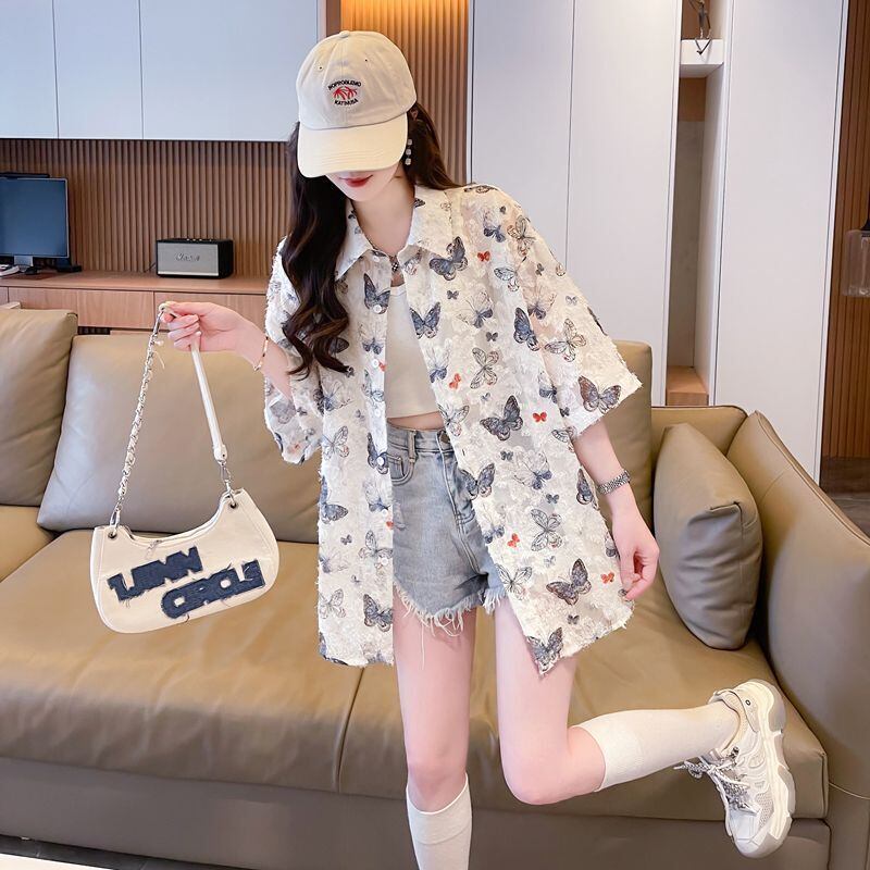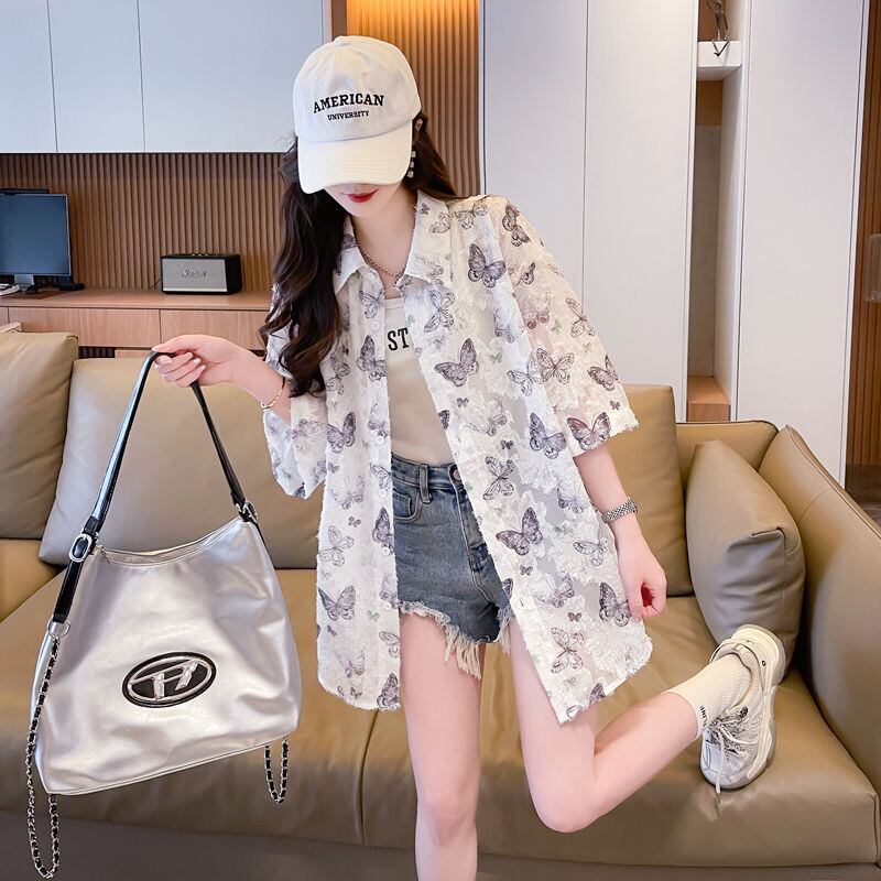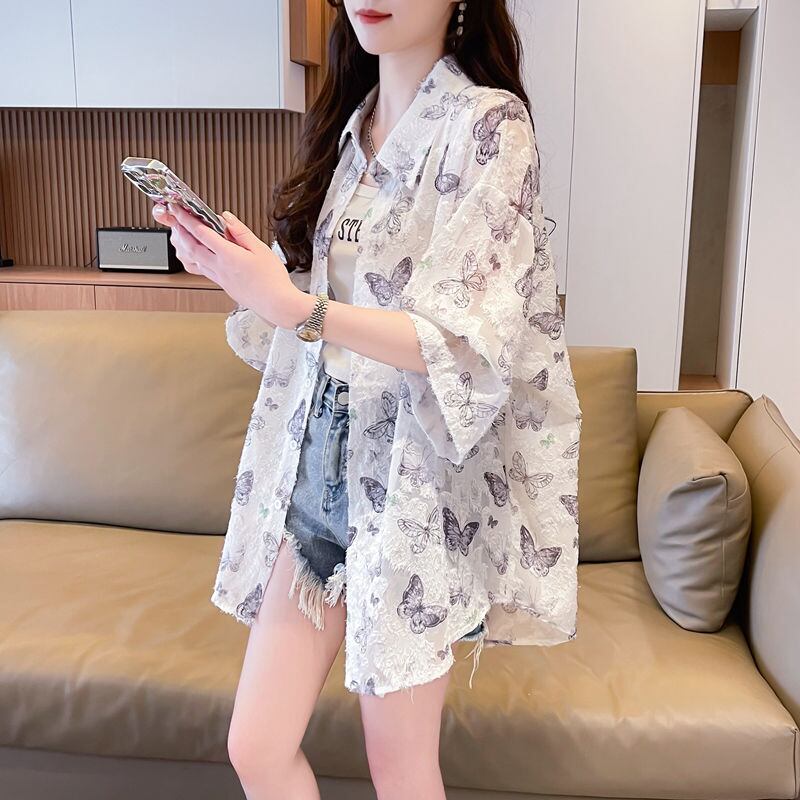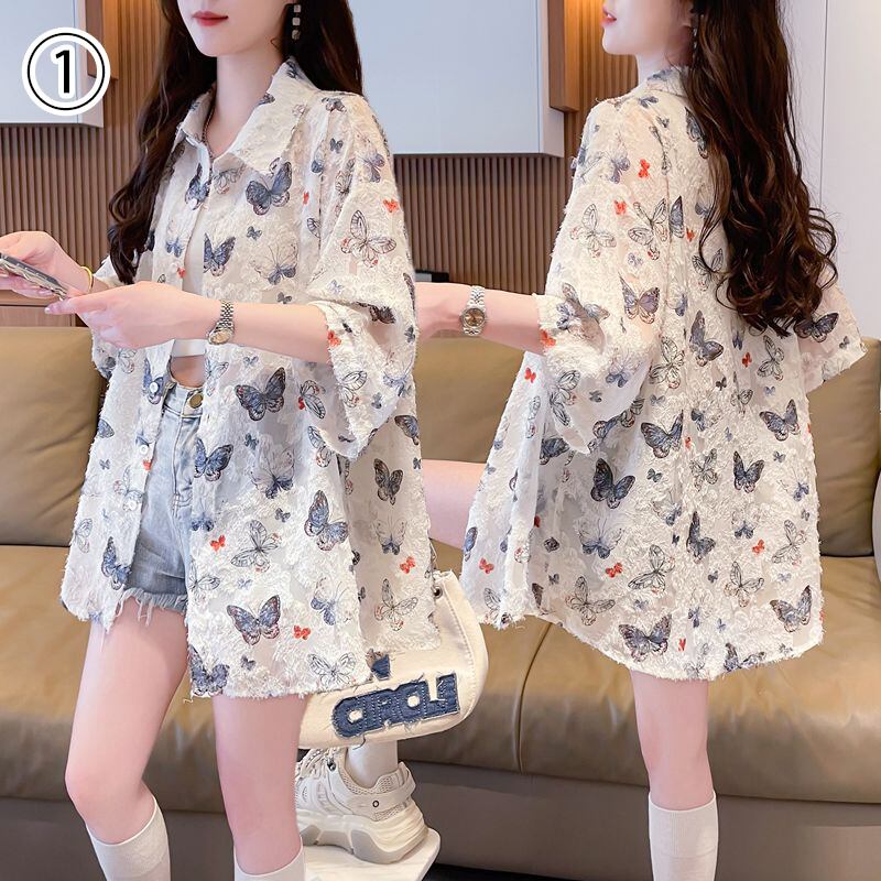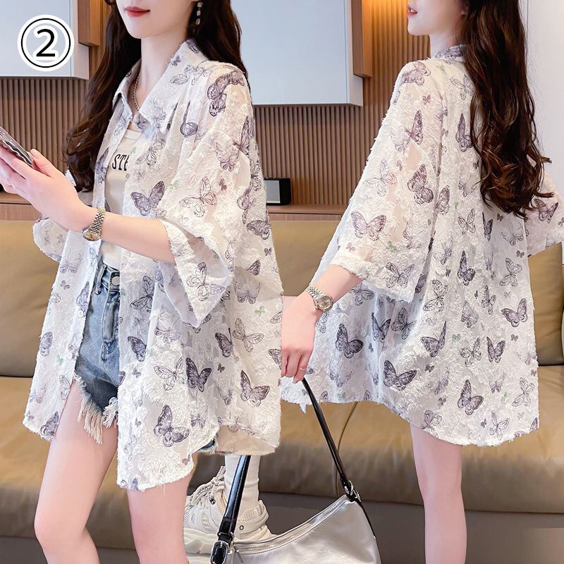 超人気 オシャレ 都市ファッショ デザイン 総柄 日焼け対策 全2色 シャツ E-9148