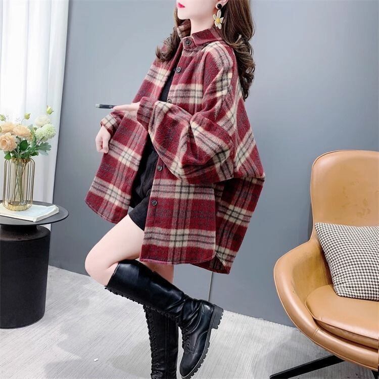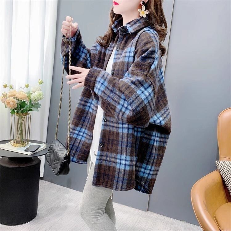 超人気 スタイルアップ 毎日着たい! チェック柄 2色選択 シャツ E-9648