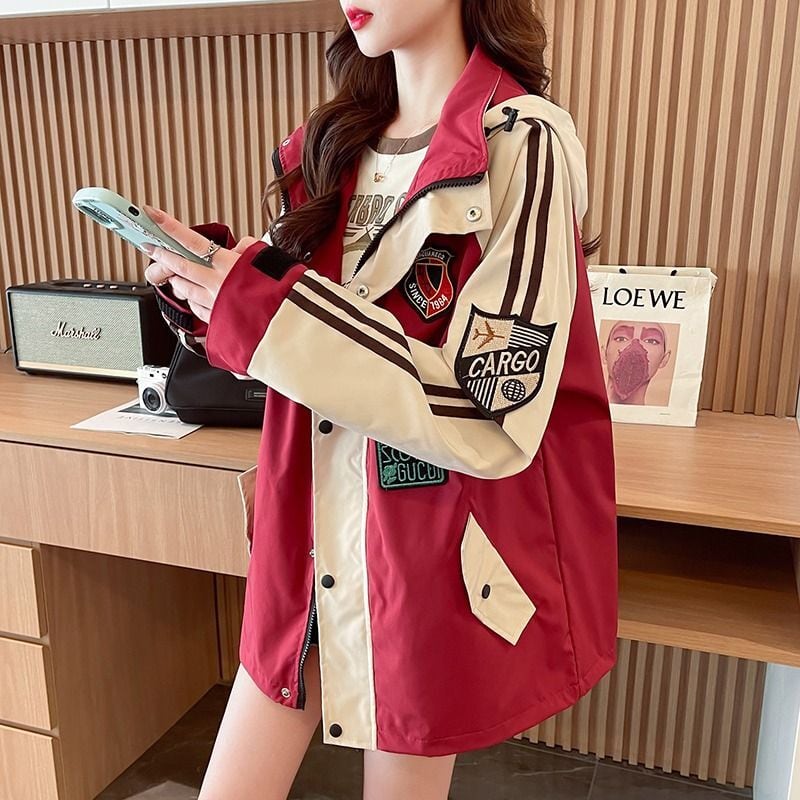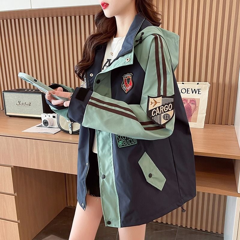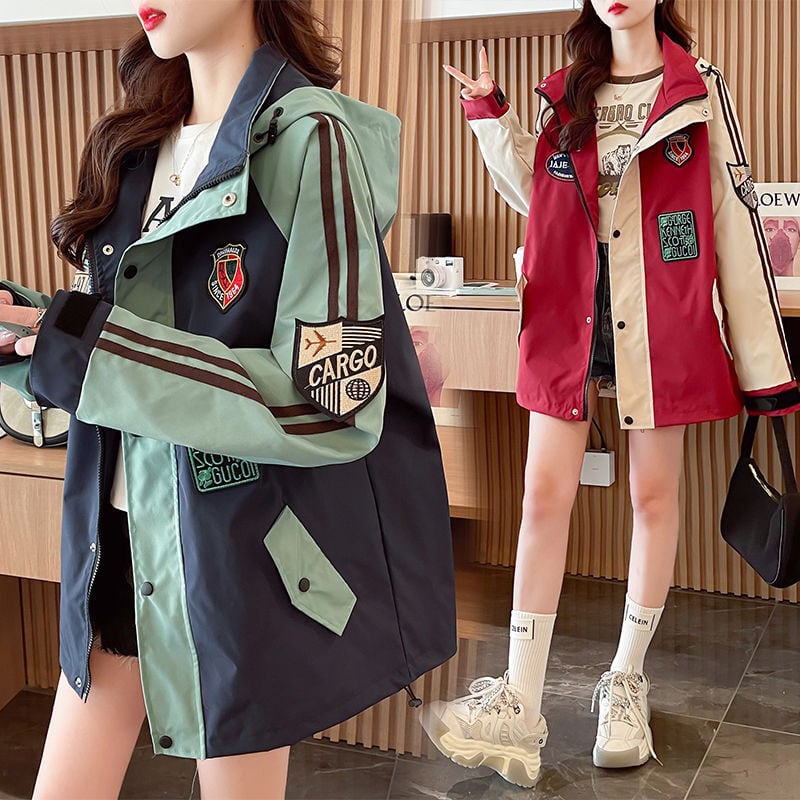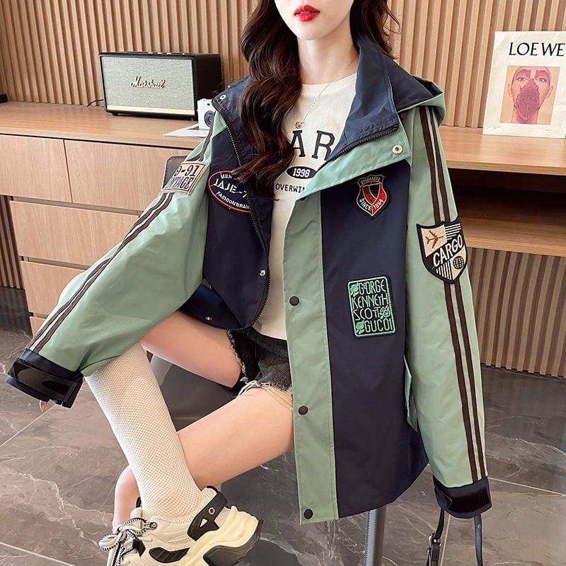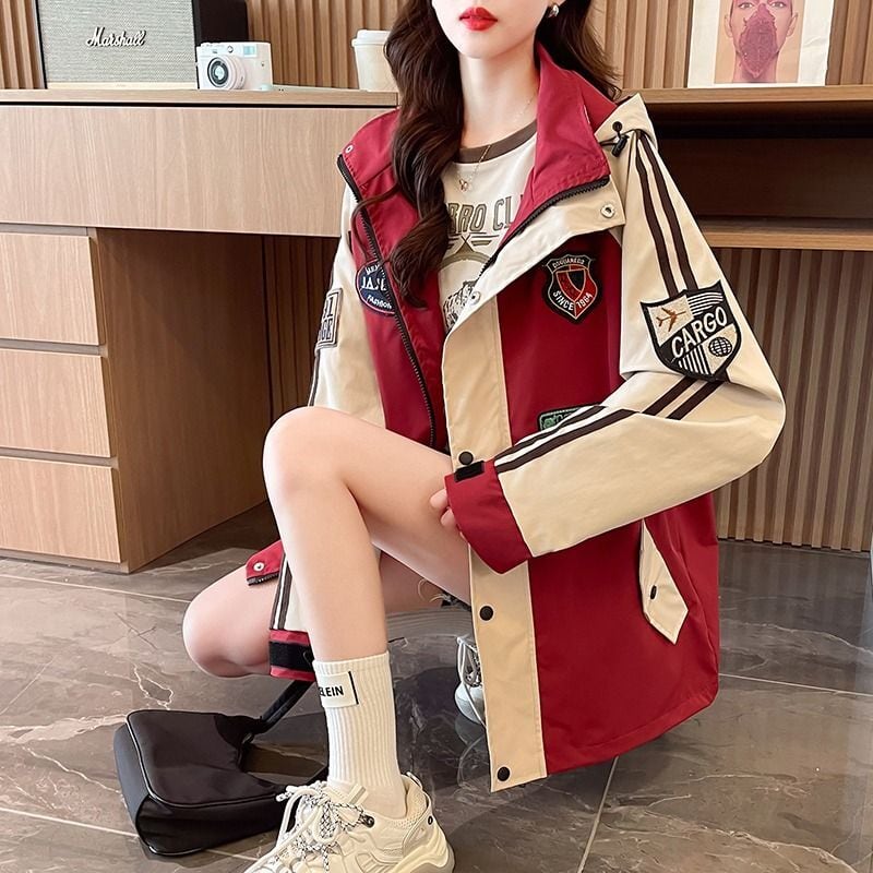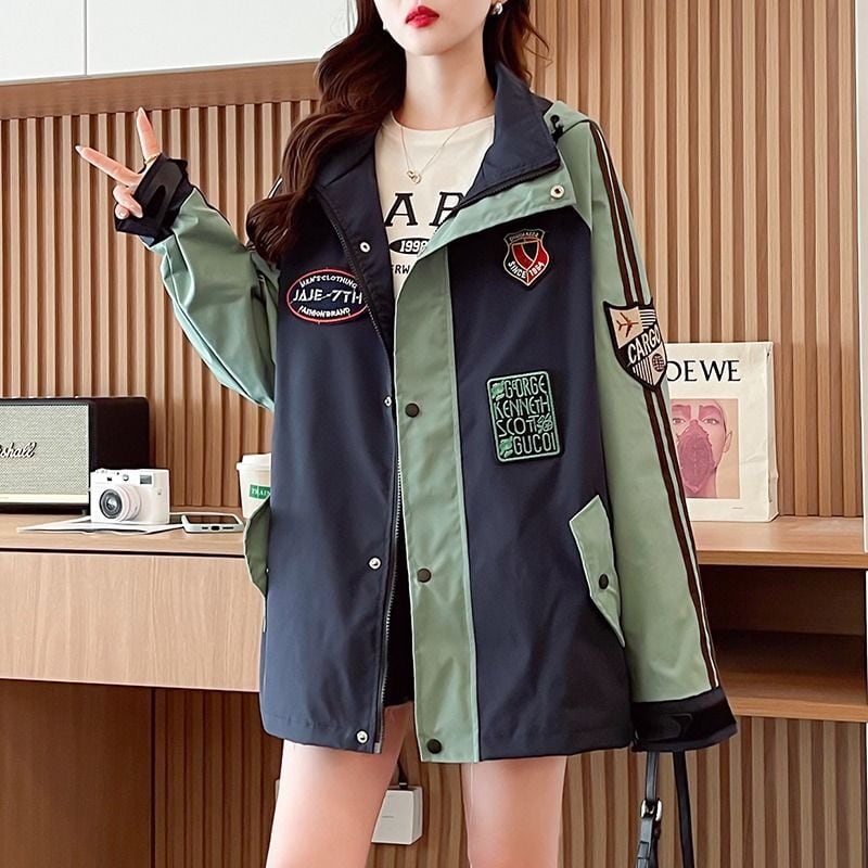 超人気 刺繡ロゴ 配色 ゆったりパーカー全3色コートins-4834