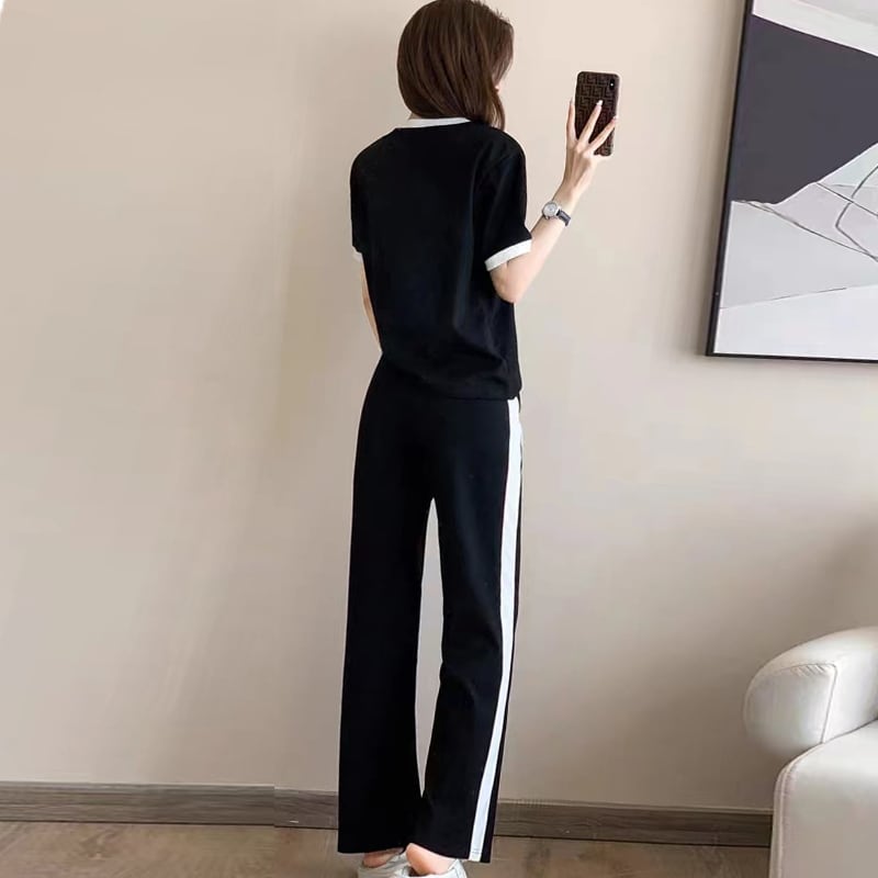 超人気 知的 カジュアル シンプル トップス+パンツ <ins-8460>