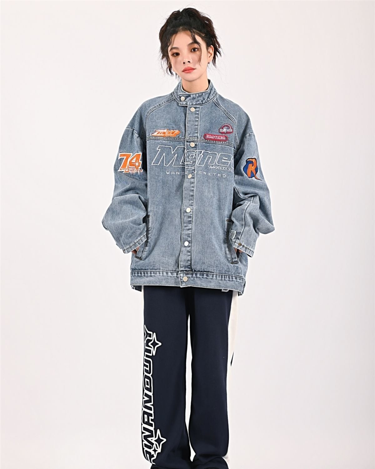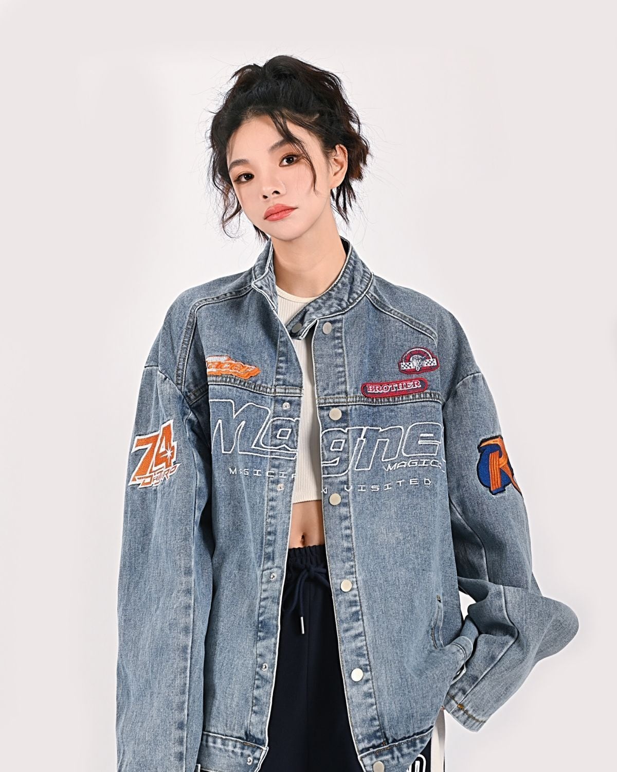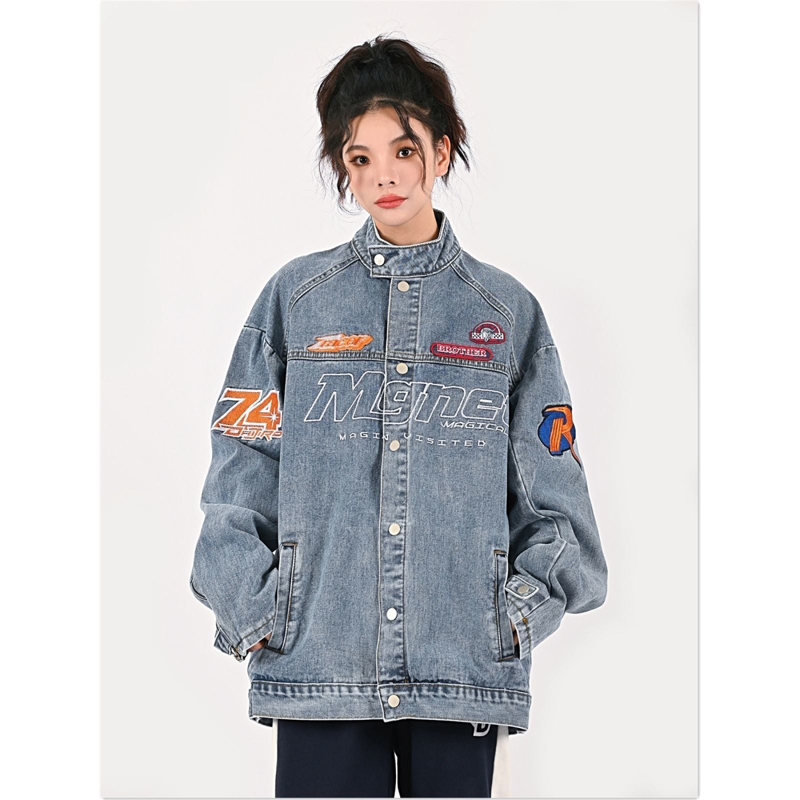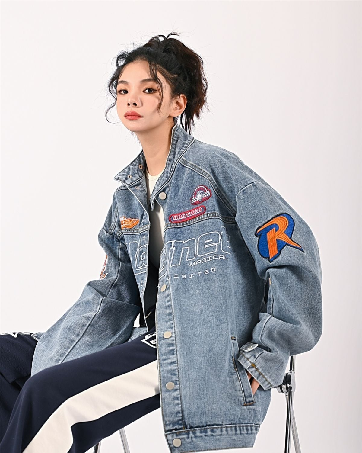 超人気 英字ロゴ ヴィンテージ加工 デニムジャケット 全2色ゆったりコートins-4799