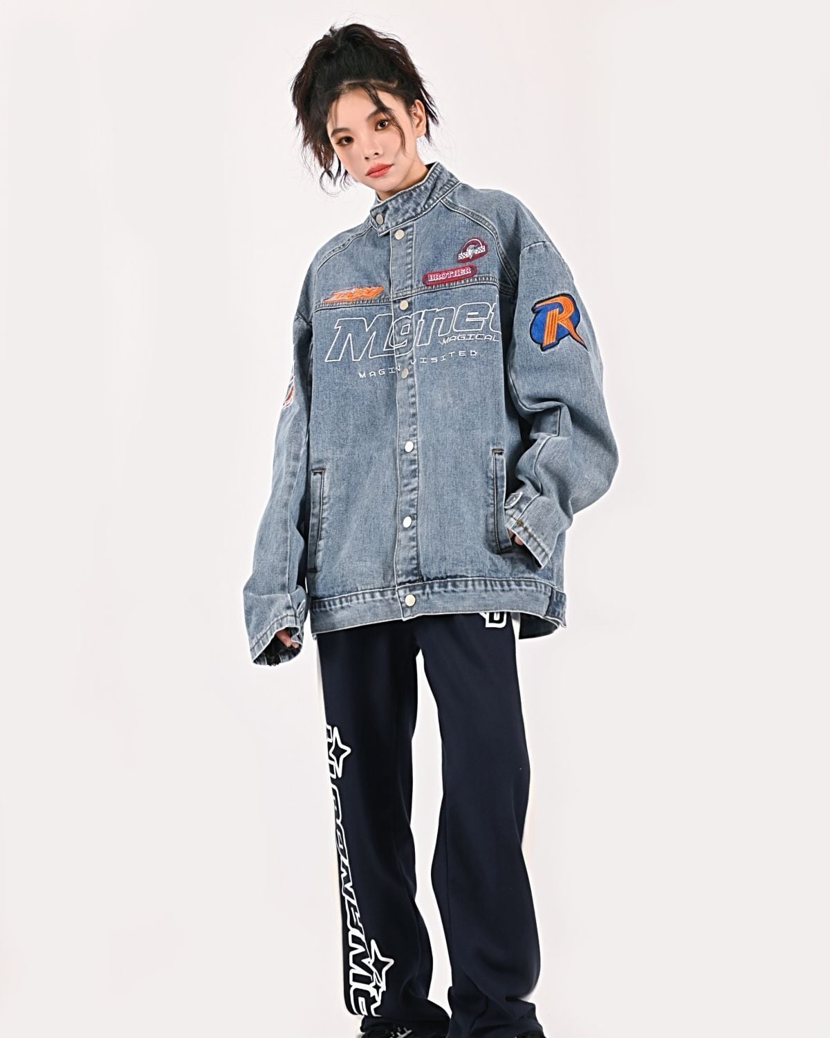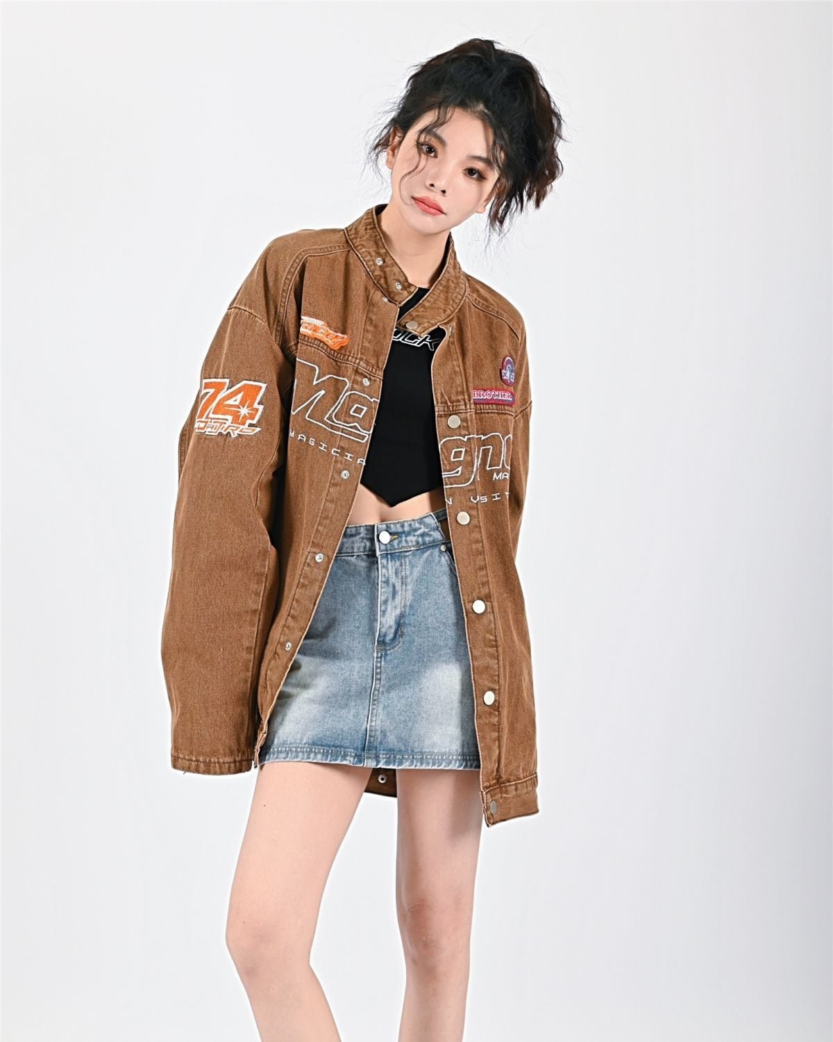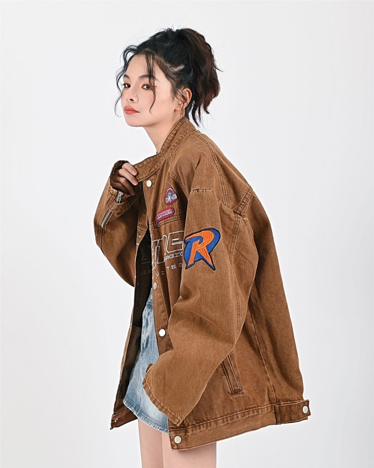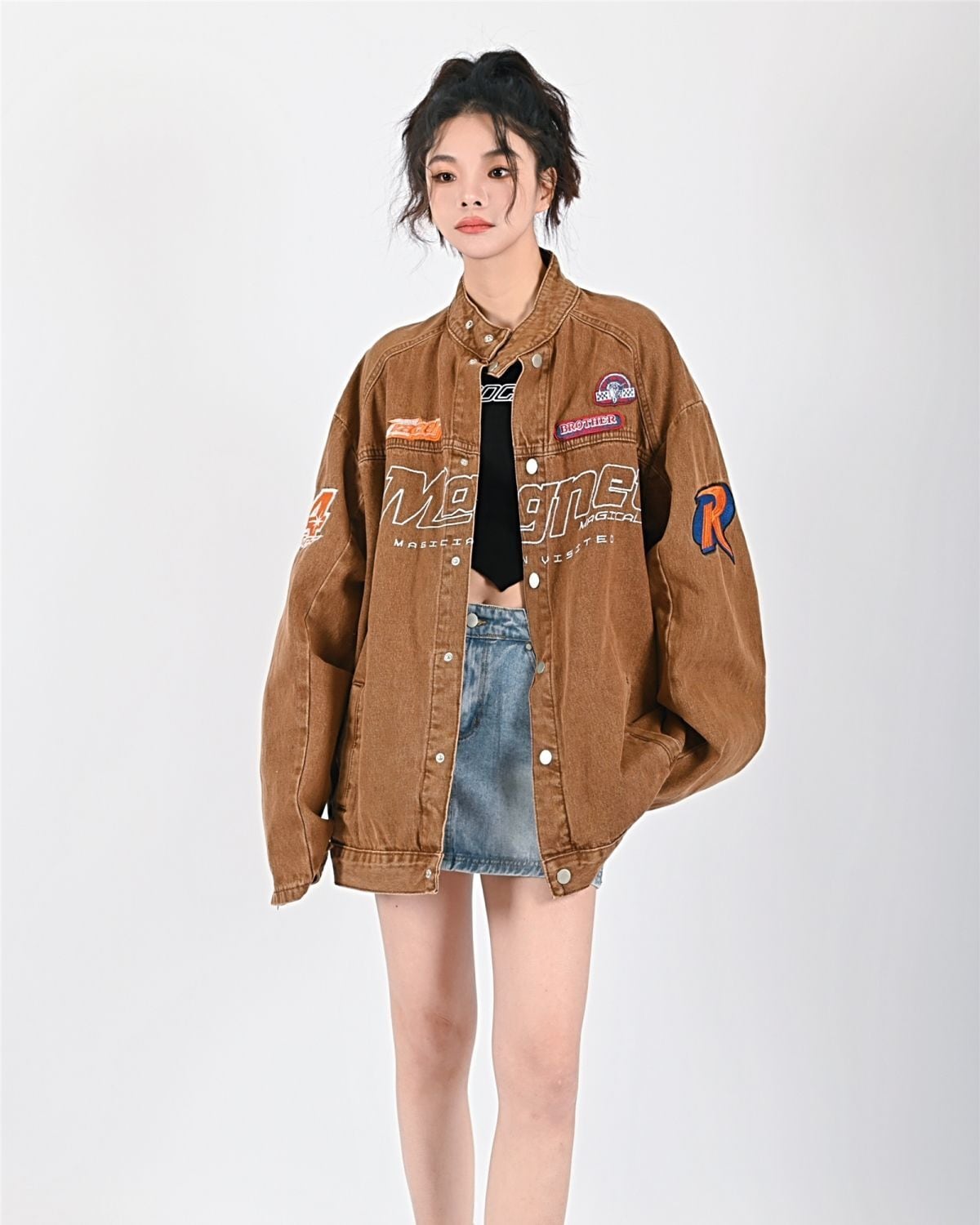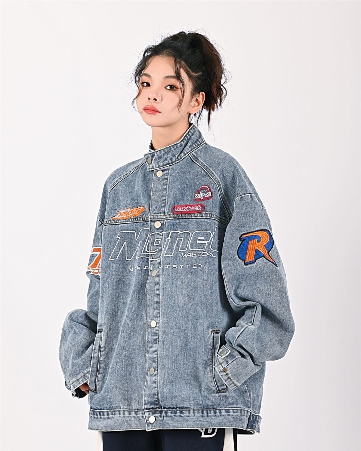 超人気 英字ロゴ ヴィンテージ加工 デニムジャケット 全2色ゆったりコートins-4799