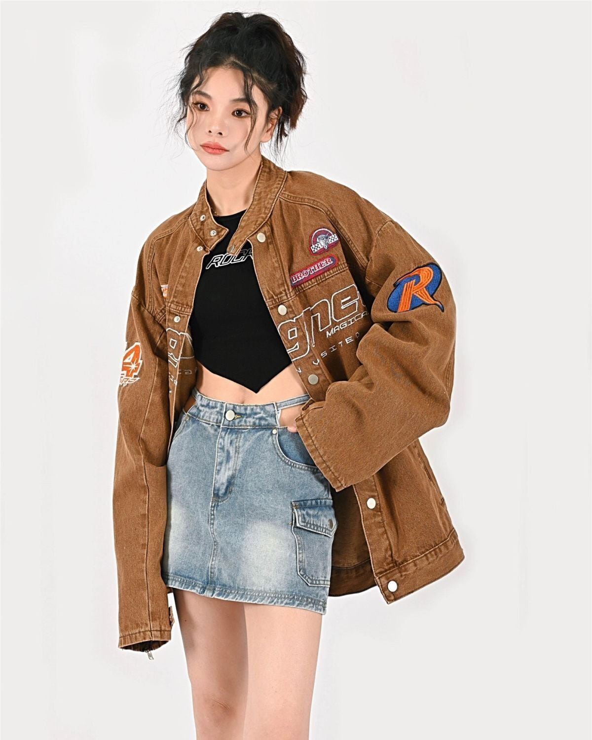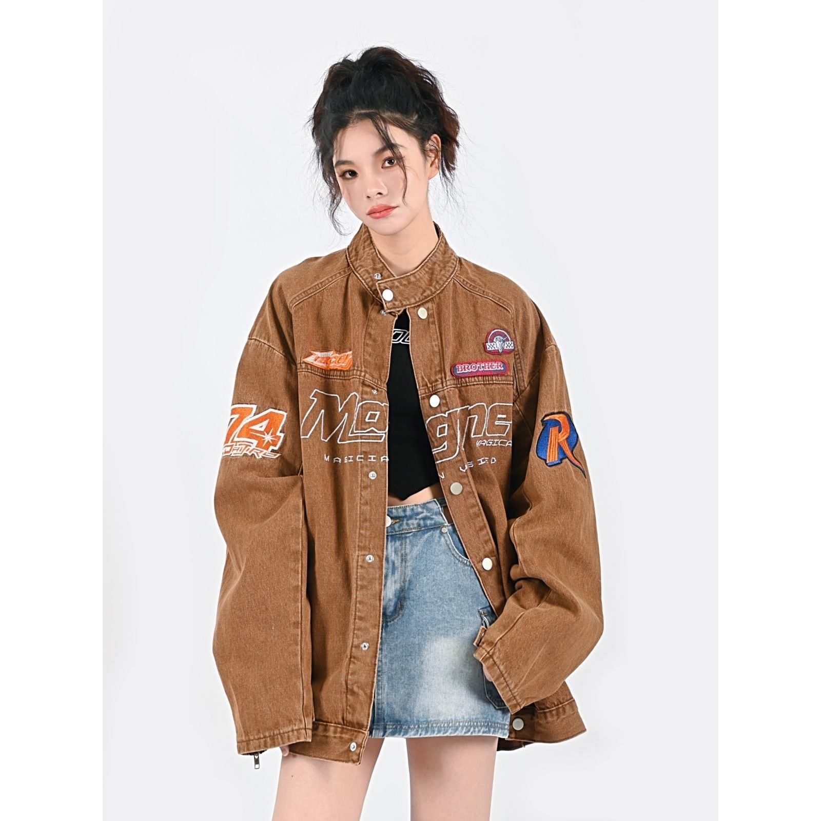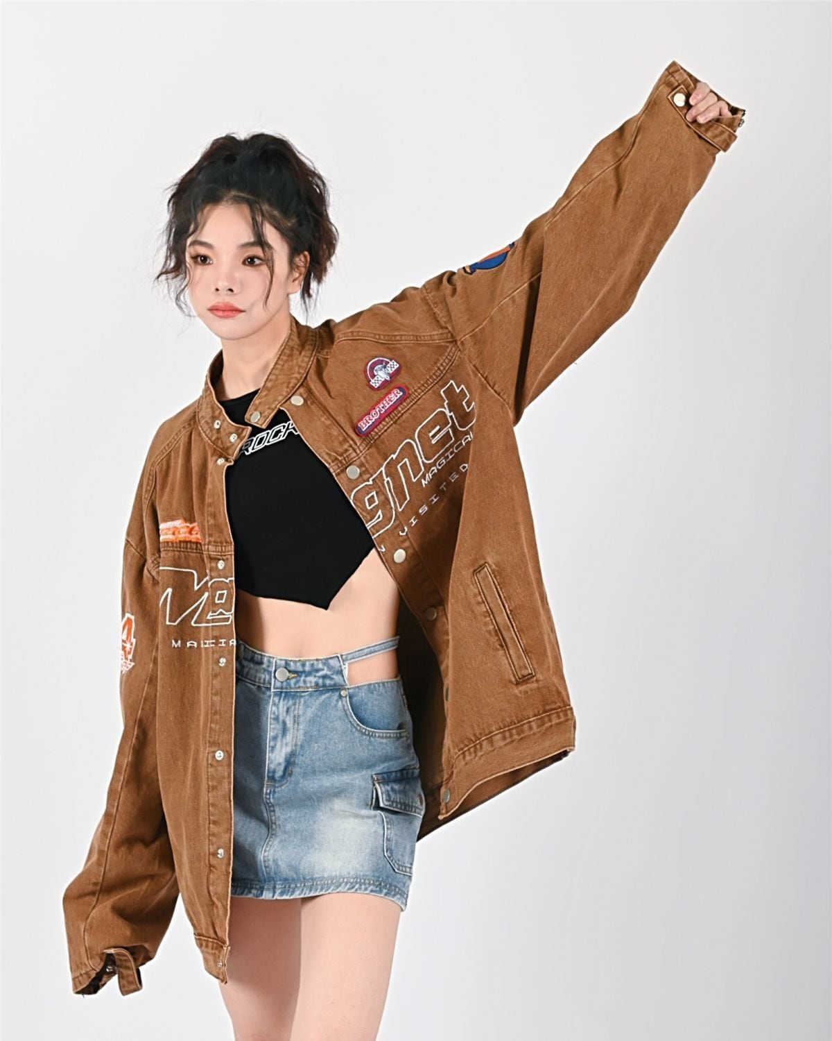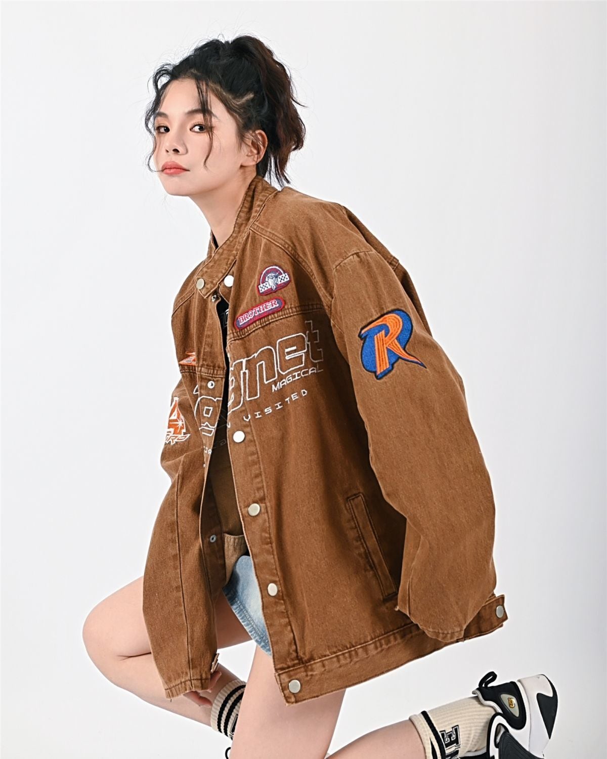 超人気 英字ロゴ ヴィンテージ加工 デニムジャケット 全2色ゆったりコートins-4799