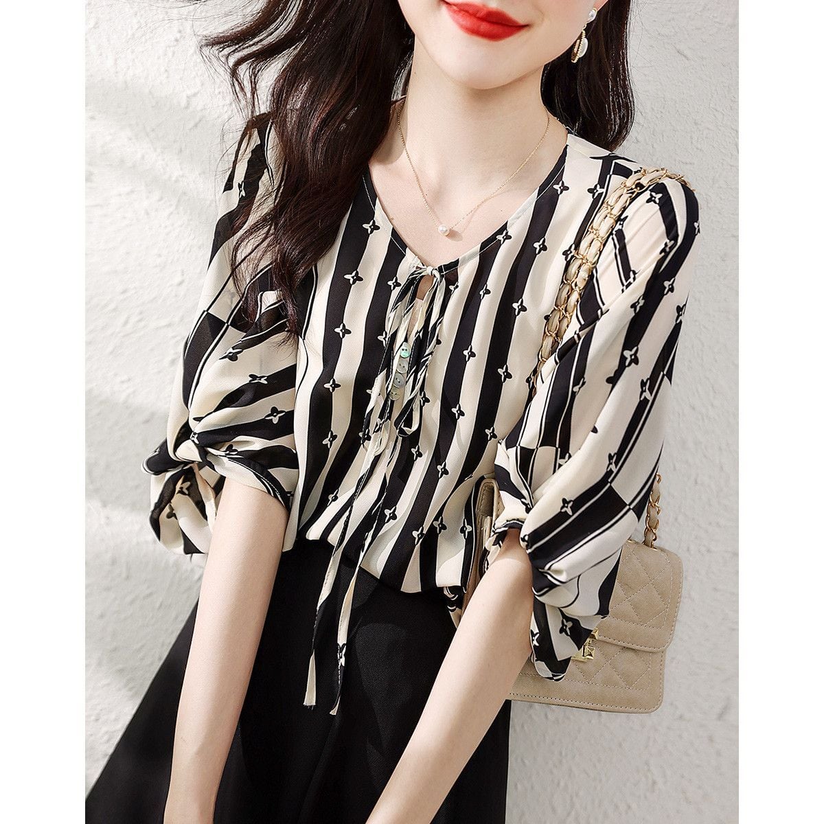 超人気 話題沸騰中 ファッション 知的 ストライプ柄 シャツ<ins-8408>