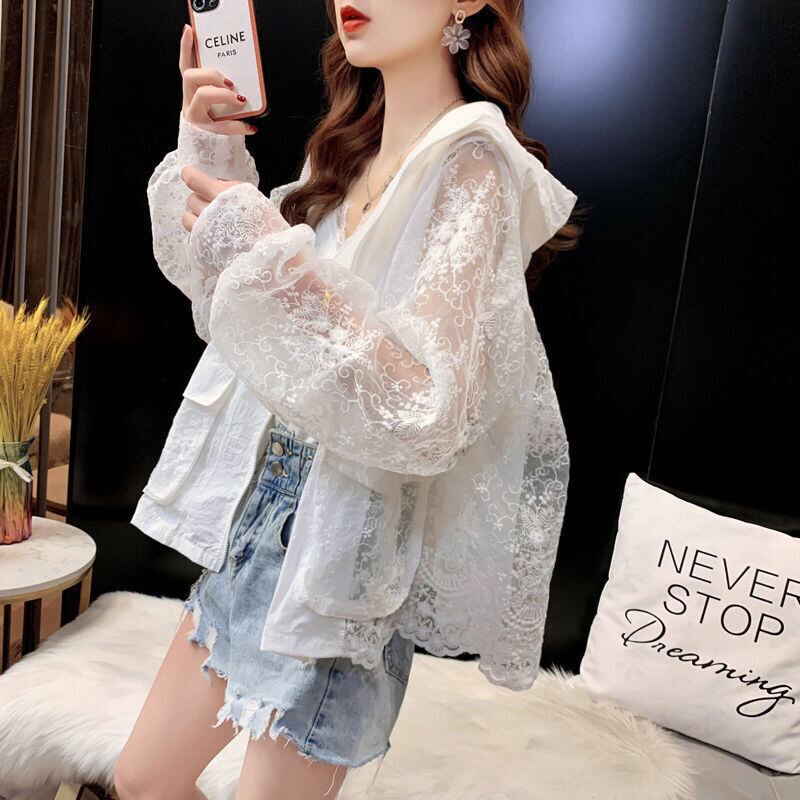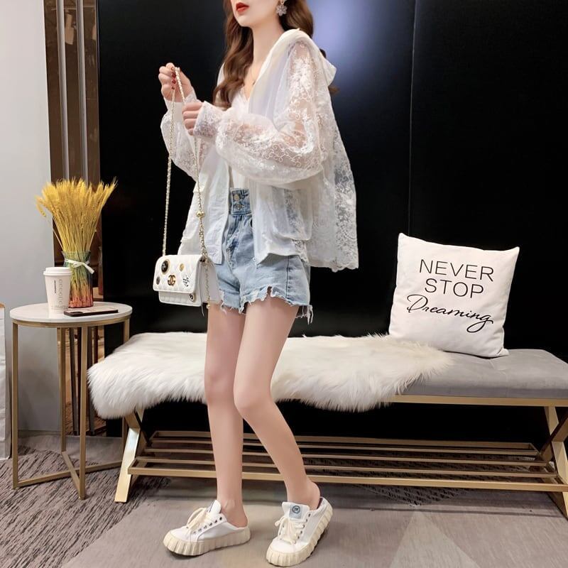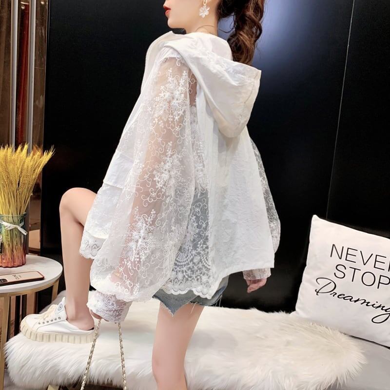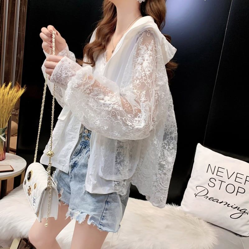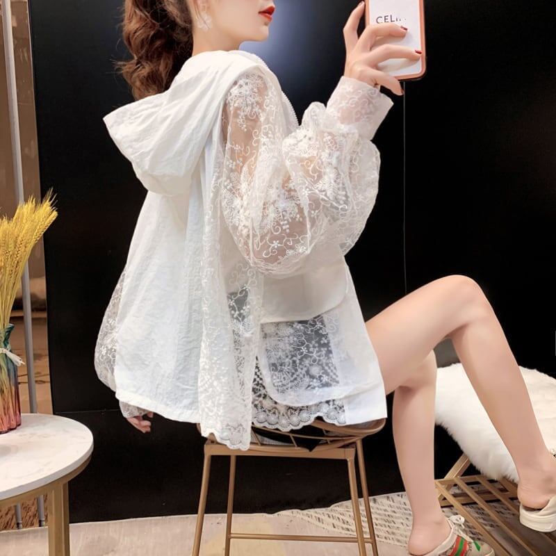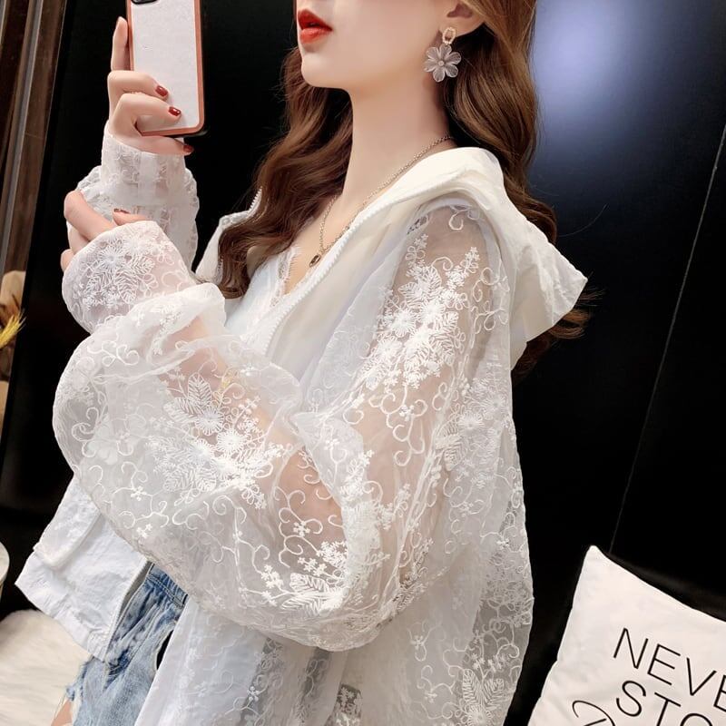 透け感 UVカット UV対策 長袖レース刺繍シャツ iEf-1716
