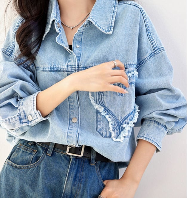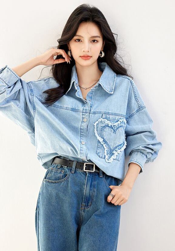 都市ファッショ デザイン オシャレ 上質 おしゃれ度高め アバンギャルド デニム シャツ E-9279
