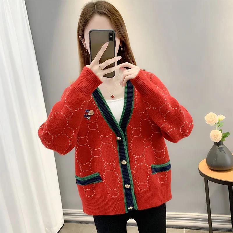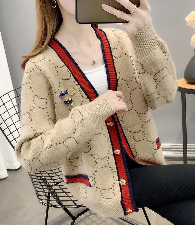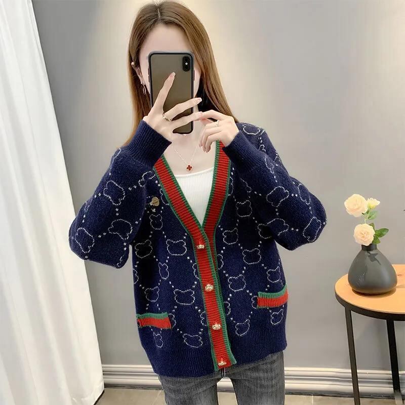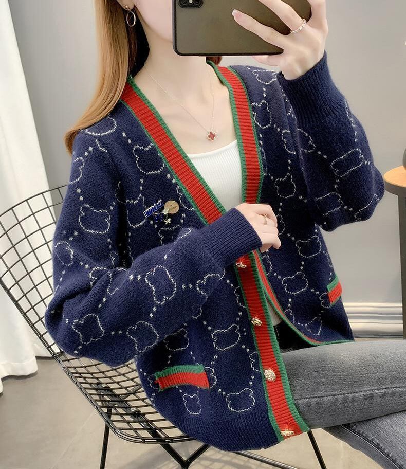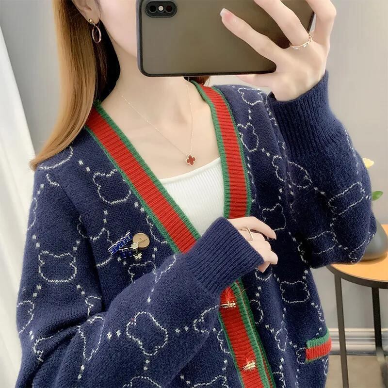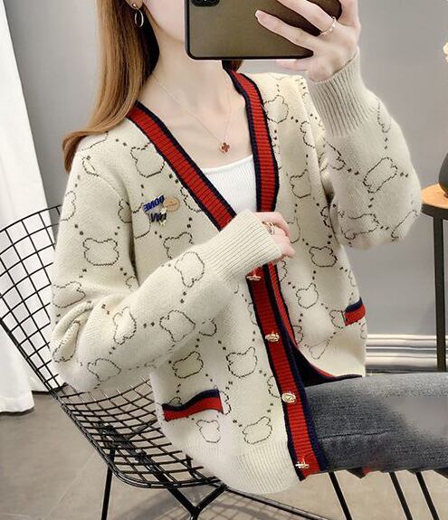 都市ファッショ デザイン オシャレ 上質 切り替え 4色選択 ニットトップスE-9666