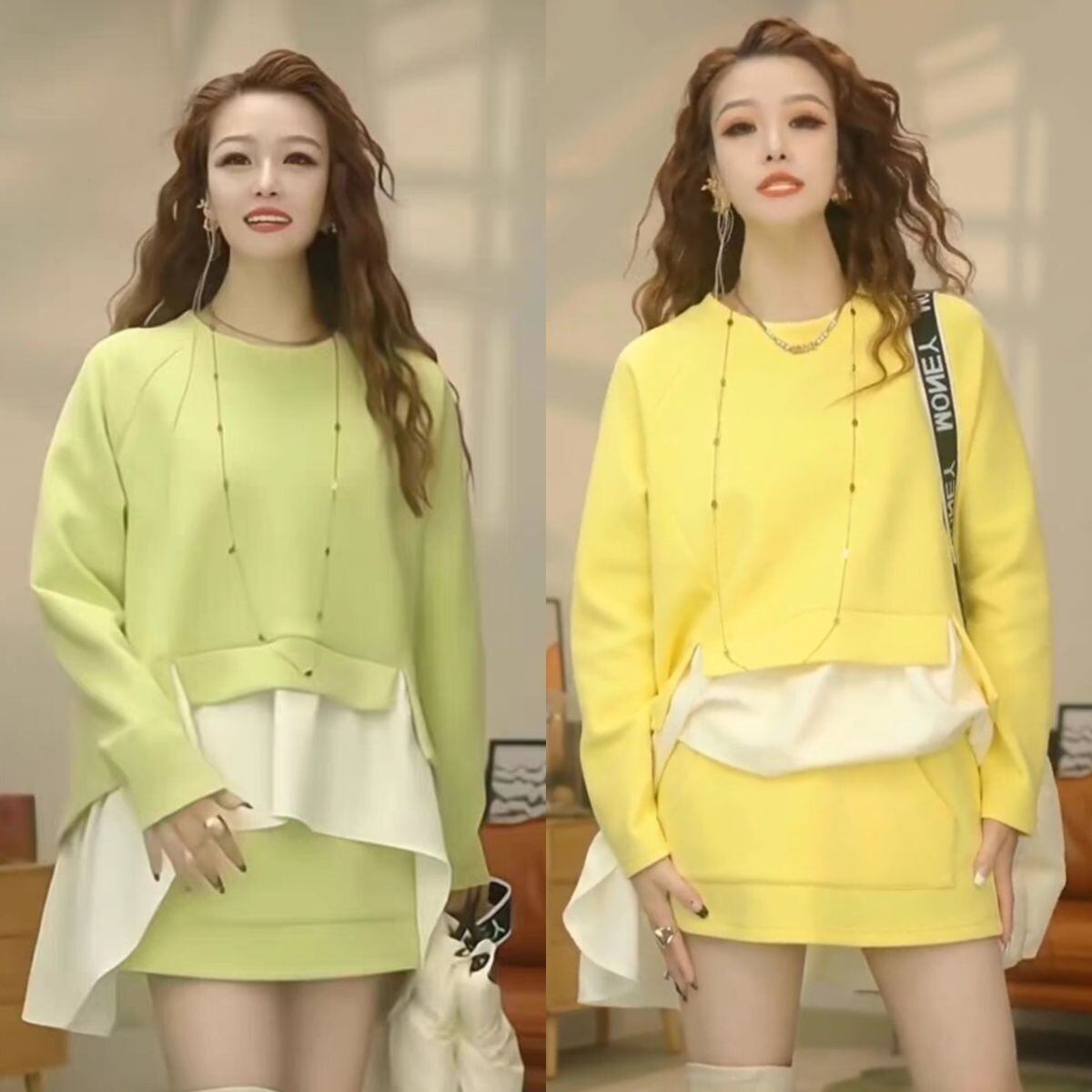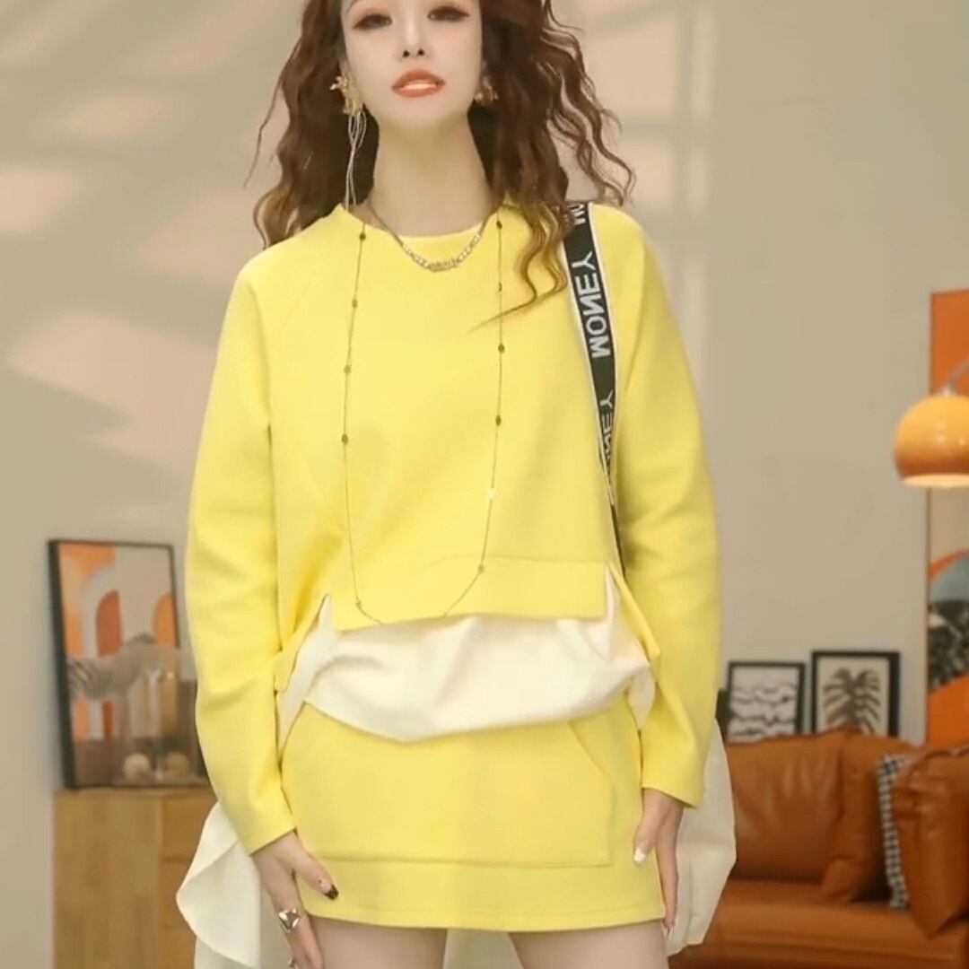 都市ファッショ デザイン オシャレ 切り替え 2色選択 セットアップE-10473