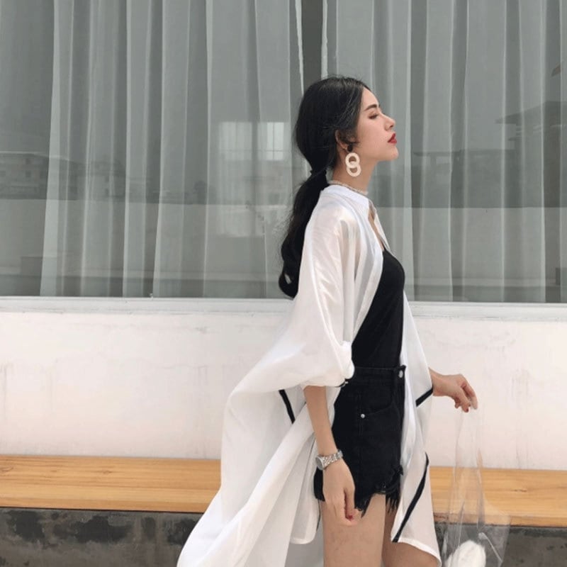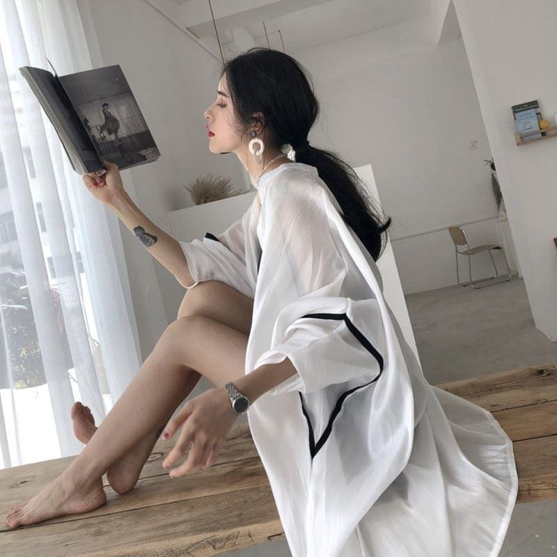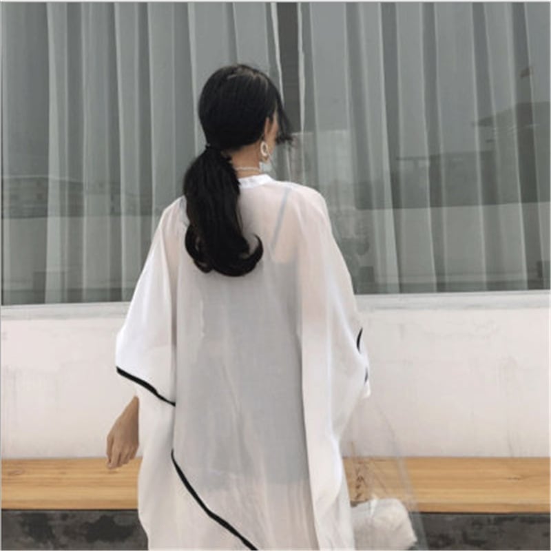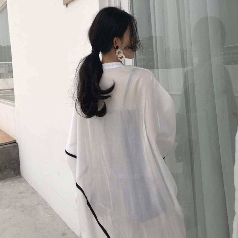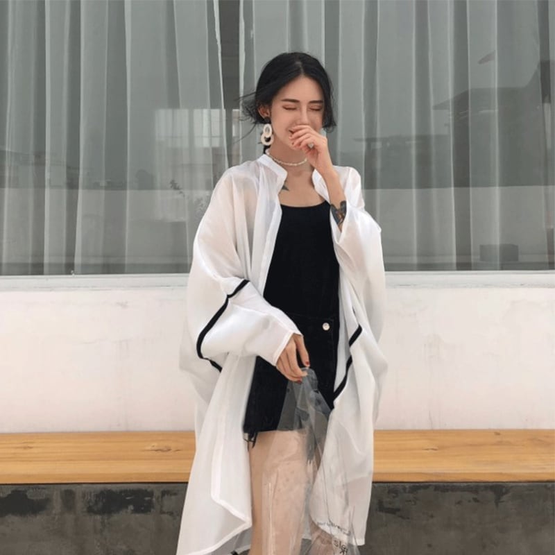 韓国系ゆったりUVカットロング丈薄手シャツ<ins-1714>